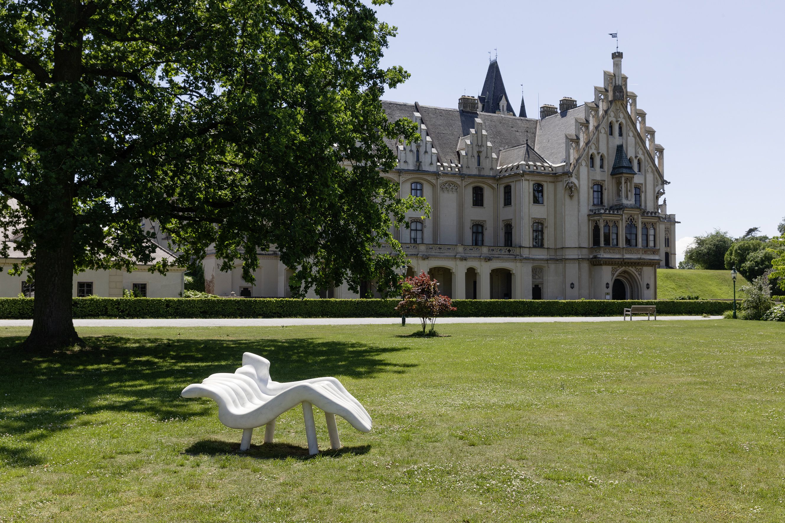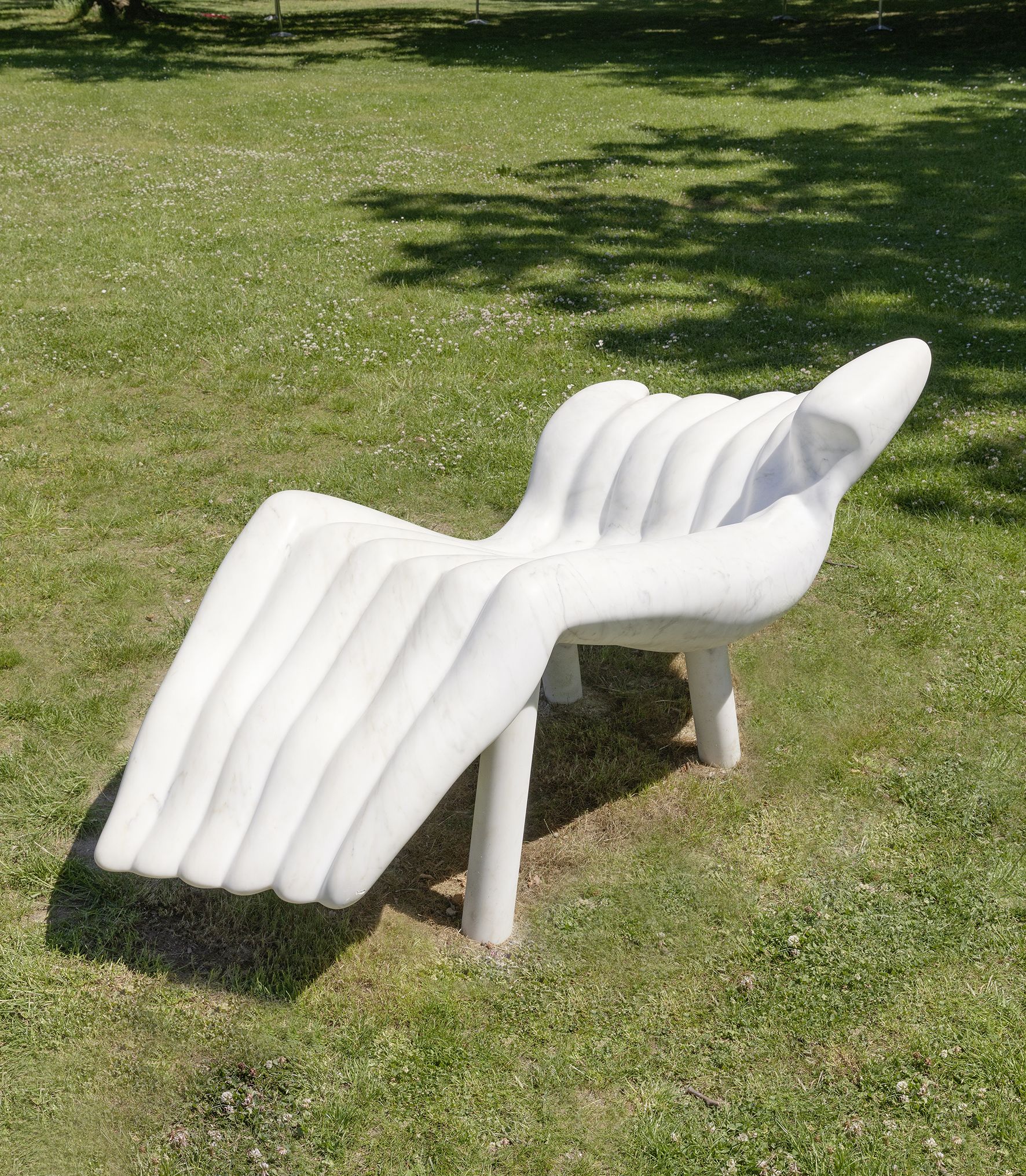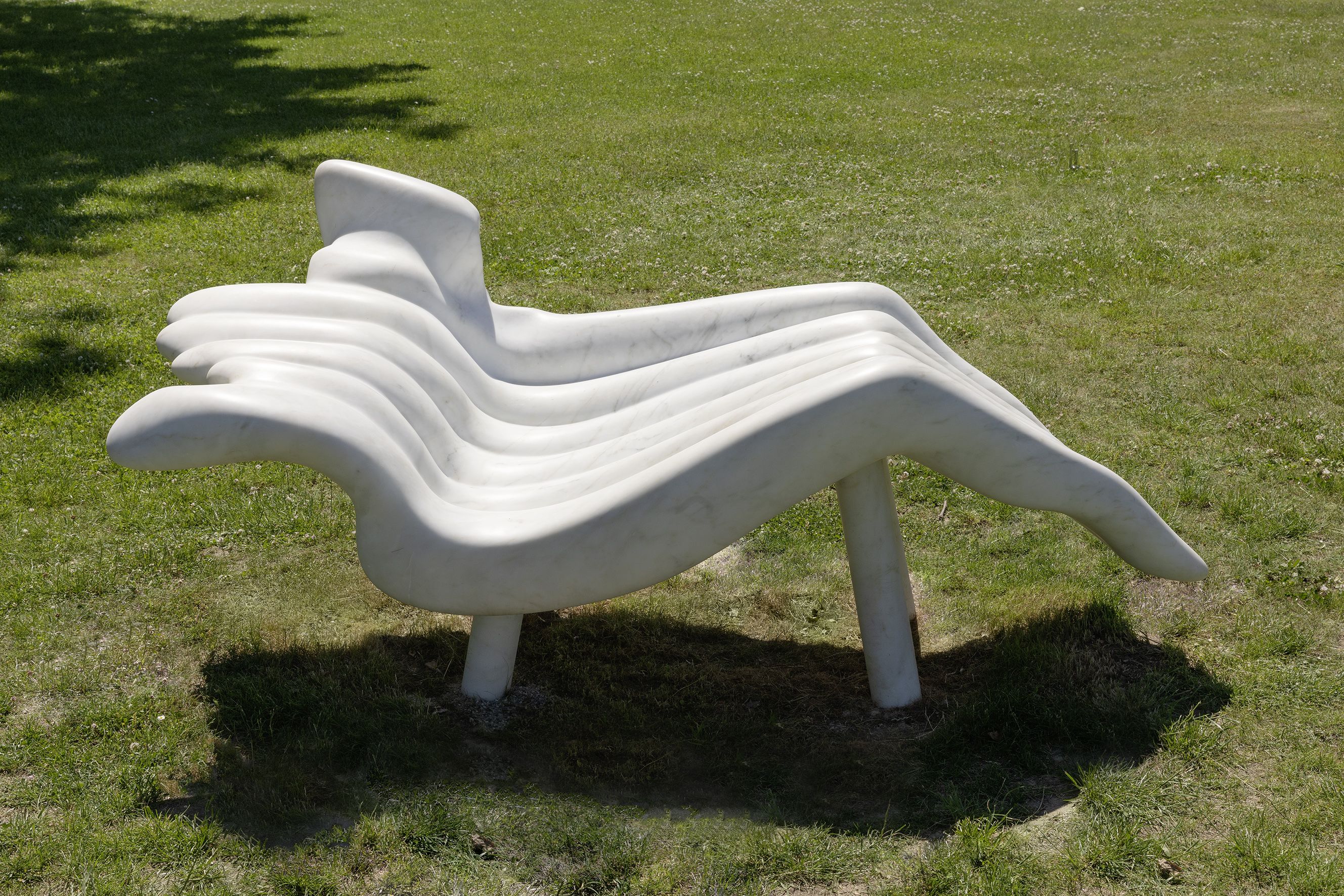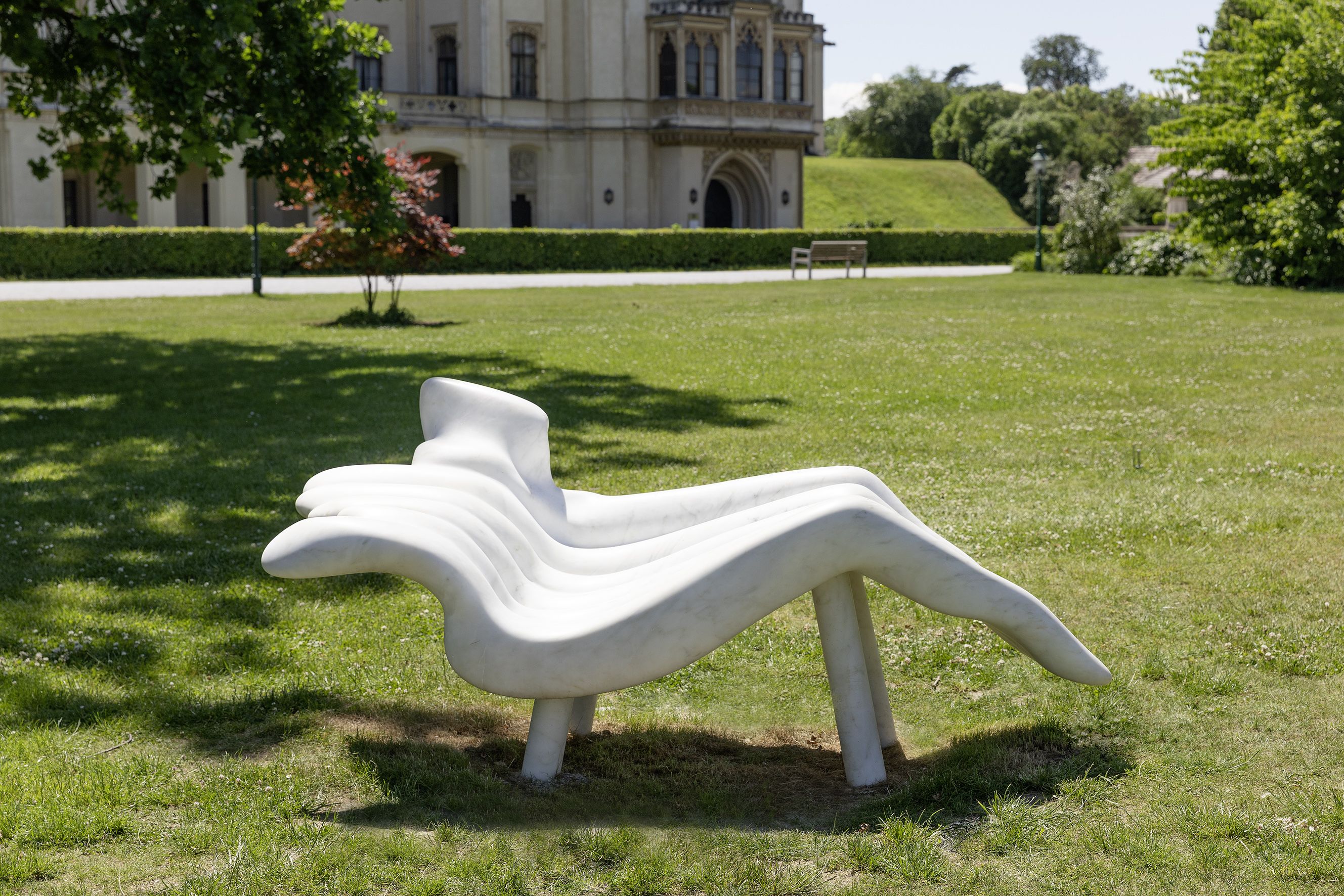 Die aus dem Kosovo stammende Künstlerin hat für den Schlosspark Grafenegg eine Skulptur aus Marmor in Form einer Liege realisiert, die an ein Möbel aus der Zeit der Schlosserweiterung im 19. Jahrhundert erinnert und gleichzeitig einen äußerst zeitgemäßen Blick auf Konventionen und Strukturen im Wandel der Zeit wirft.
