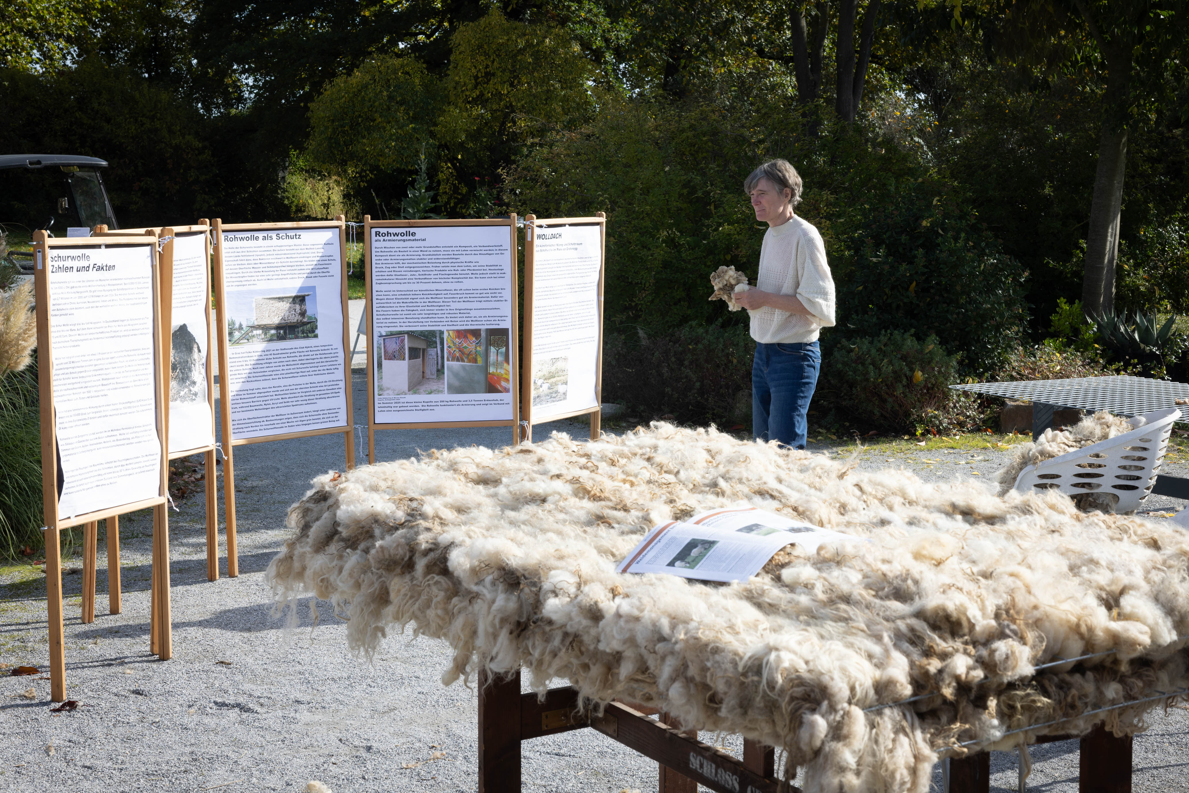 Einen Ausblick auf das Projekt gibt der bereits im Oktober stattfindende Workshop zur Verarbeitung von Schafwolle für architektonische Strukturen. Kinder wie Erwachsene können teilnehmen und so bei der Umsetzung des zukünftigen „Klang- und Schutzraums“ mithelfen.