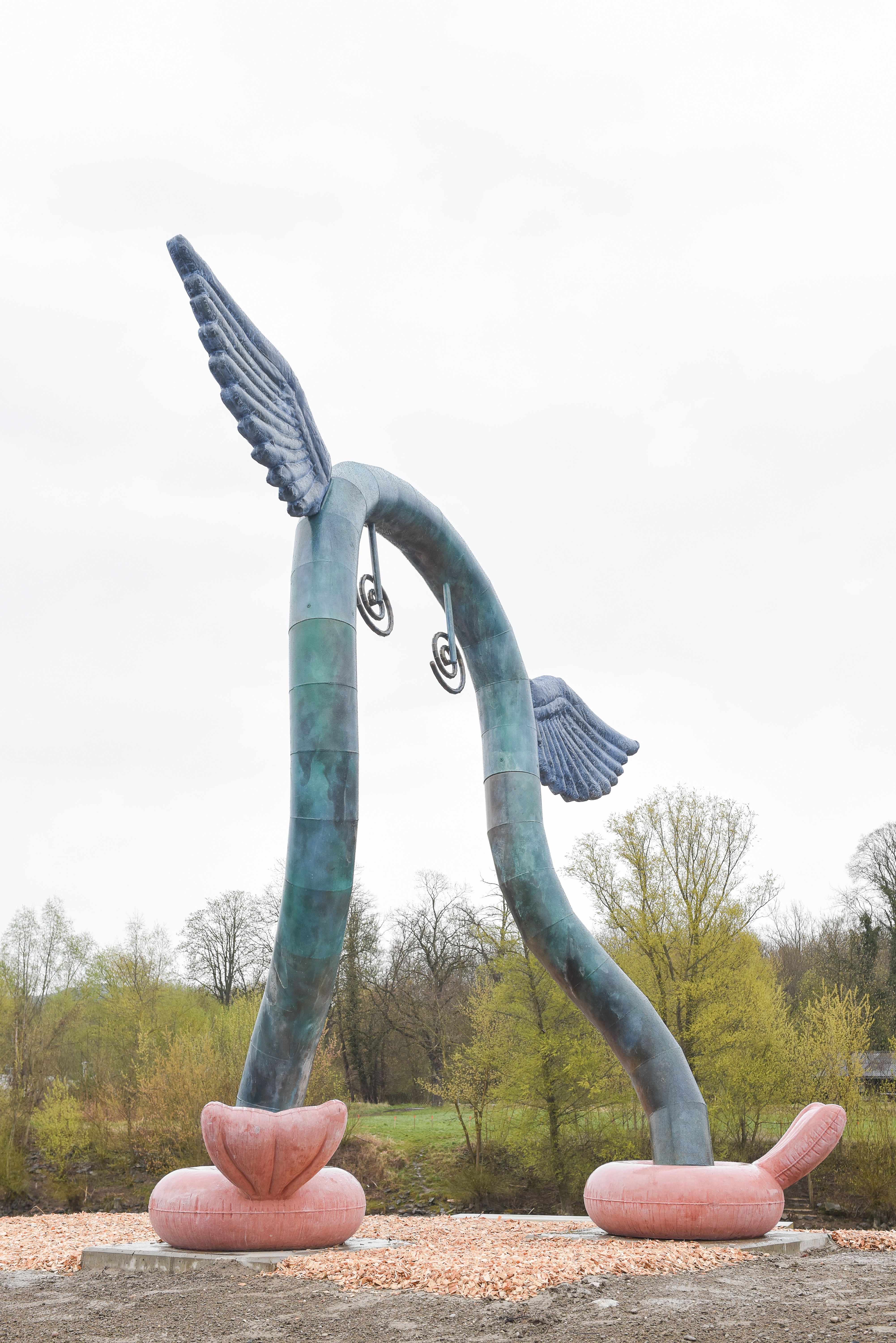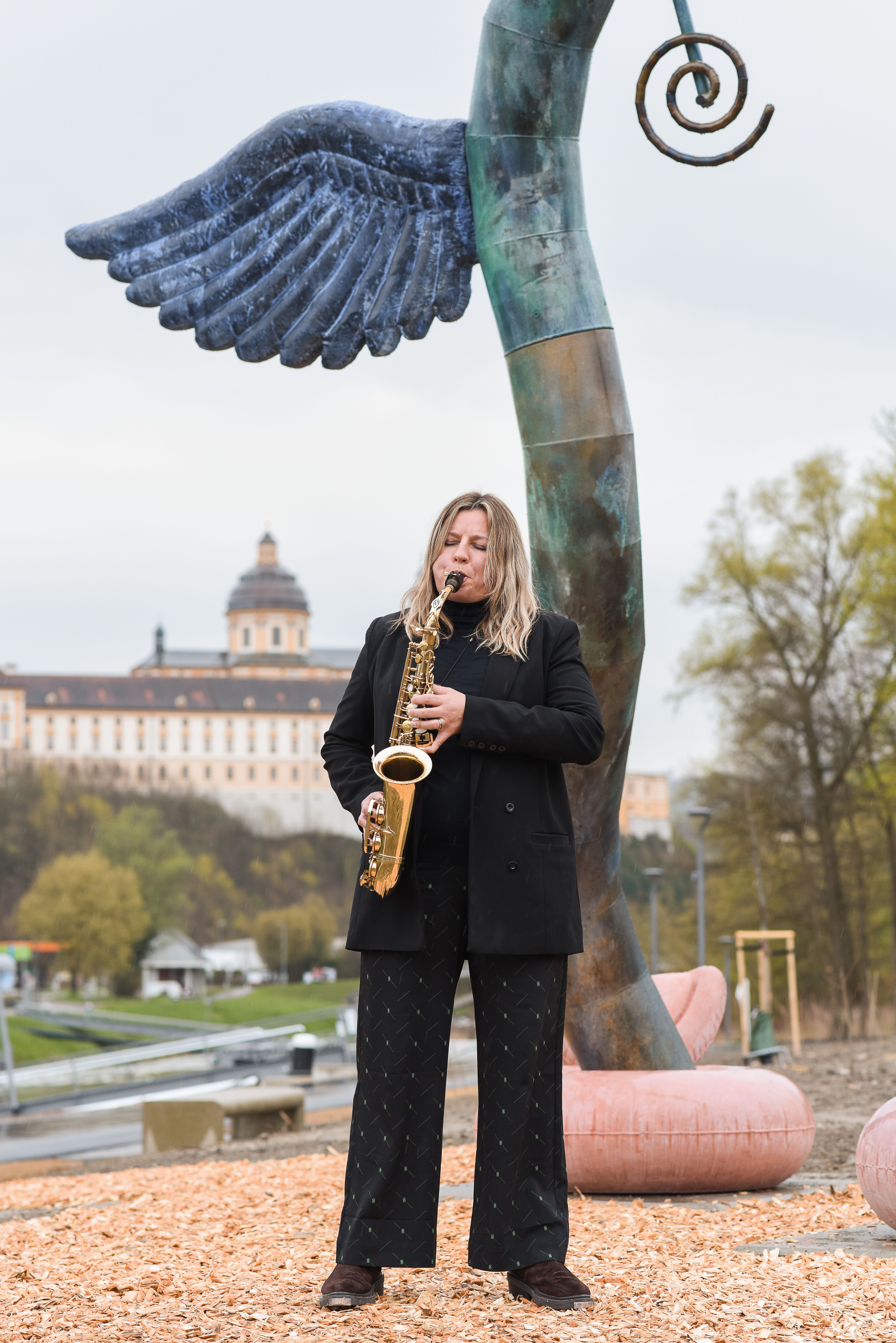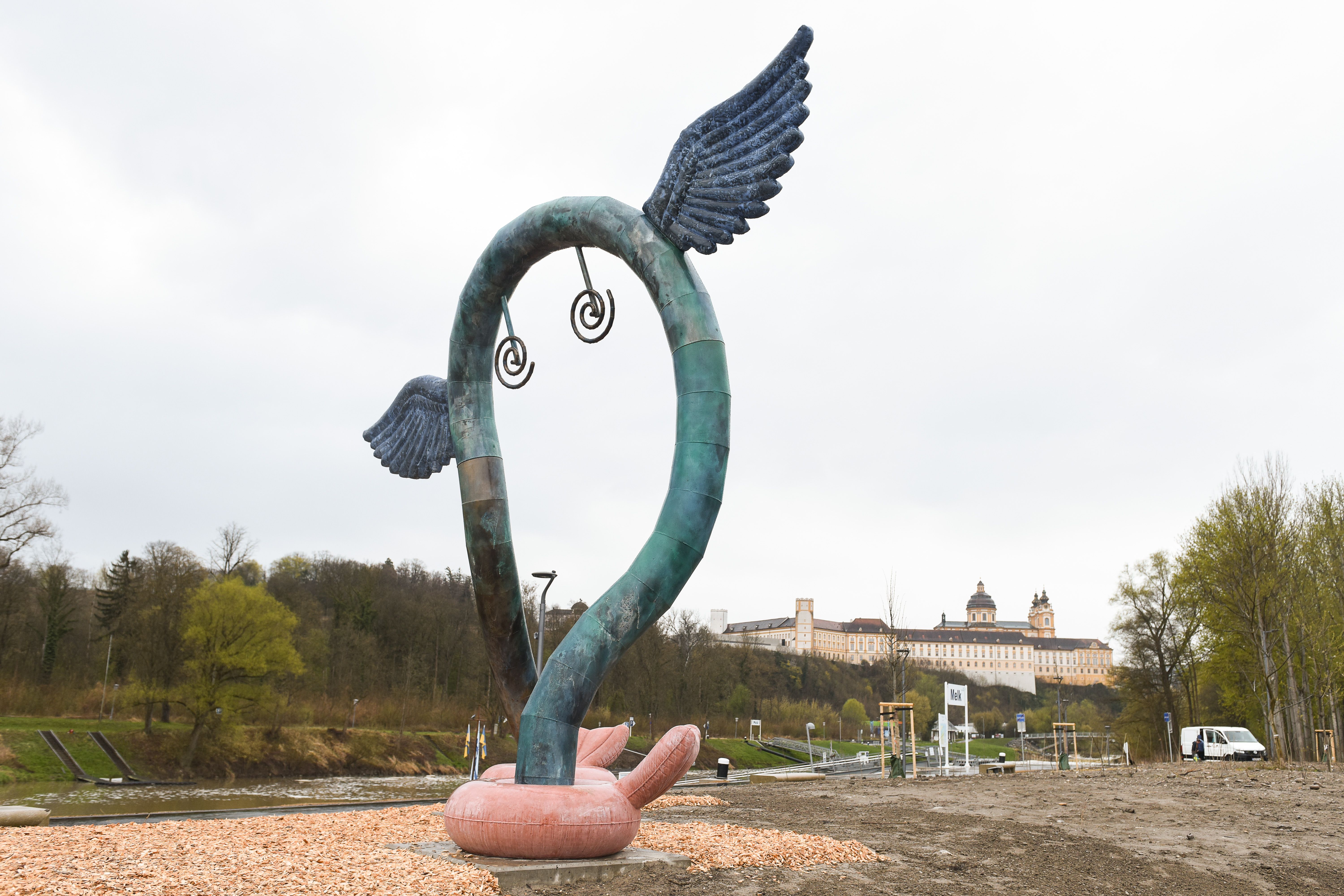 DOORA, ein geflügeltes Objekt, dessen Köper einem Tor ähnelt und Fischflossen an Schwimmreifen zu ihren Füßen trägt, vereint in Form und Materialität phantasievoll vielfältige Aspekte dieses Ortes: die Donau als Lebensraum für Mensch und Tier und ihre kulturverbindende Kraft, aber auch Melk als Tor zur Wachau, die täglich zahlreiche Menschen willkommen heißt.
