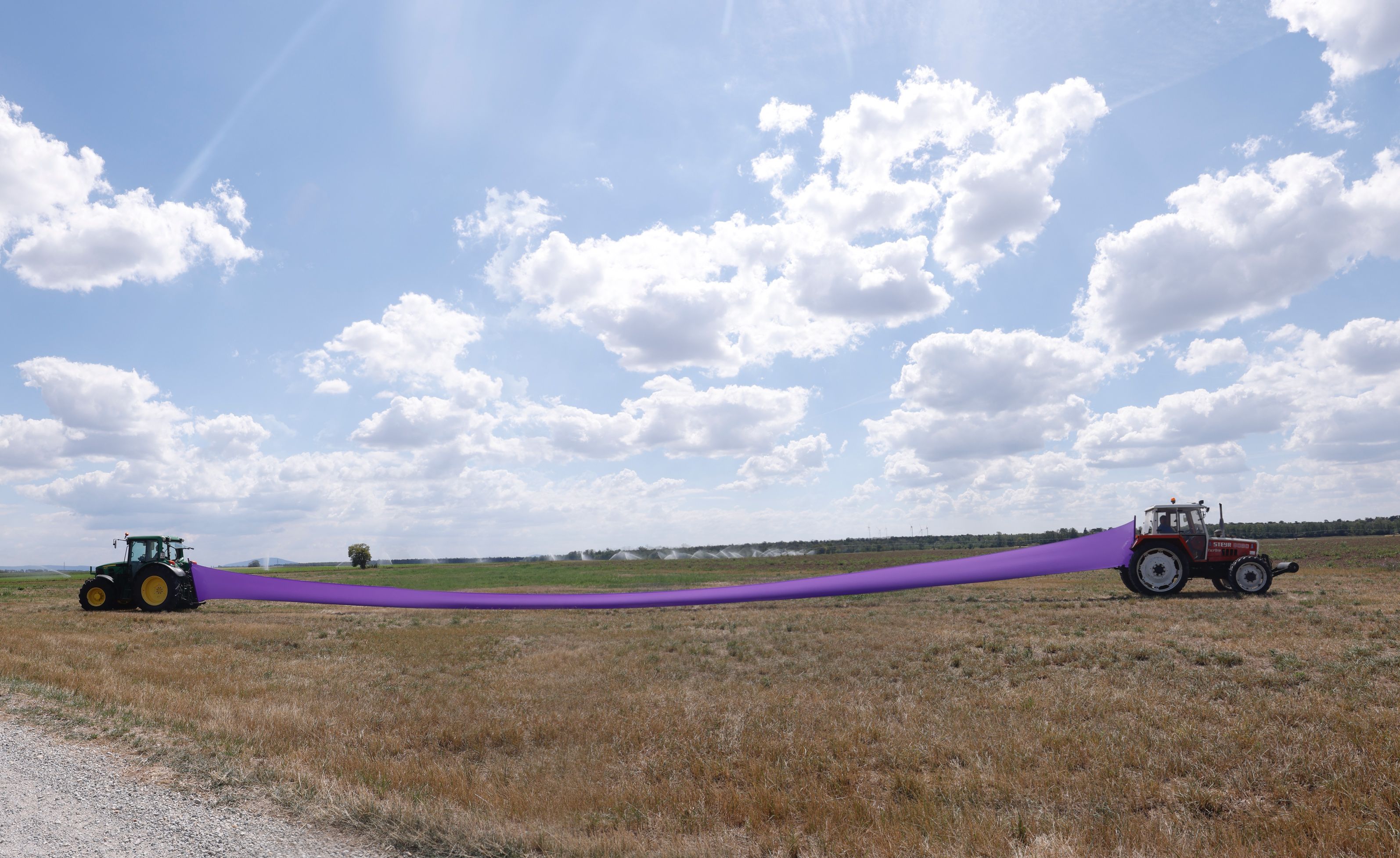 Mit der Foto-Installation peripheria hat Markus Guschelbauer spezifische Aspekte von Weikendorf und der Umgebung mit Hilfe der örtlichen Bevölkerung einer performativen Vermessung unterzogen. Daraus entstanden sind zwei inszenierte Panoramen mit einem poetischen Rundumblick an den Rand der Gemeinde, der subtil unser Verhältnis zur Natur befragt.