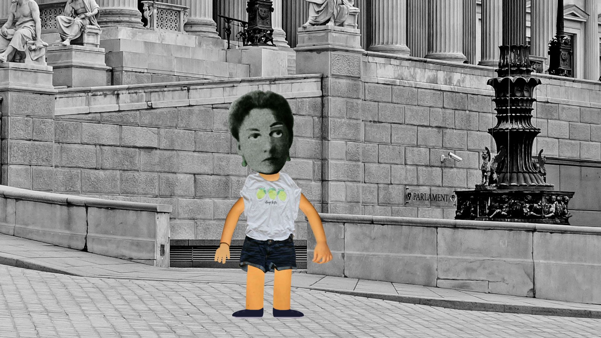 Susi Jirkuff hat drei Animationsfilme realisiert, die Schülerinnen und Schüler spielerisch an das Thema und die Geschichte des Frauenwahlrechts heranführen sollen. Angelehnt an die Ästhetik von YouTube-Videos, wie sie von Digital Natives gerne konsumiert oder selbst produziert werden, hat die Künstlerin 2D-Marionetten animiert. Diese tragen die Gesichter von österreichischen Wahlrechtsaktivistinnen, die um 1918 zur Einführung des Frauenstimmrechts beigetragen haben: Anna Boschek, Emmy Freundlich, Marianne Hainisch und Adelheid Popp waren unter den ersten von insgesamt acht Frauen, die in das österreichische Parlament gewählt wurden. Durch die Verwendung von Jugendporträts dieser Frauen in Verbindung mit Outfits, wie junge Menschen sie heute tragen, wird ästhetisch und inhaltlich ein Bogen zwischen der vermeintlich abgeschlossenen Geschichte und ihrer Aktualität für unsere Gegenwart geschlagen. Umfassende Archivmaterialien und historische Abbildungen oder Fotografien liefern den Hintergrund für die Figuren und verdichten sich mit den historischen Fakten zu einem interessanten und lehrreichen Erzählstrang, der vor allem junge Menschen adressiert.