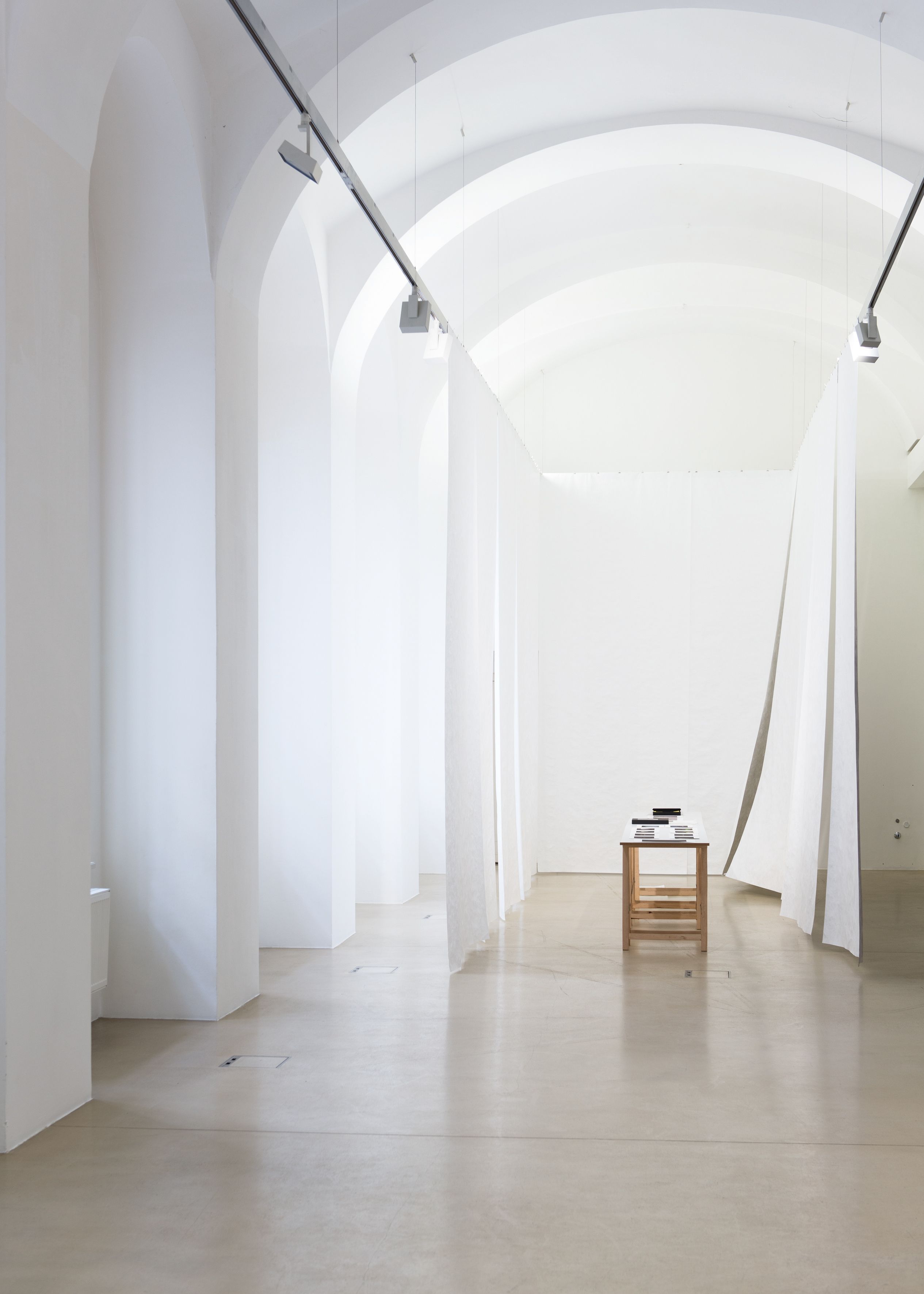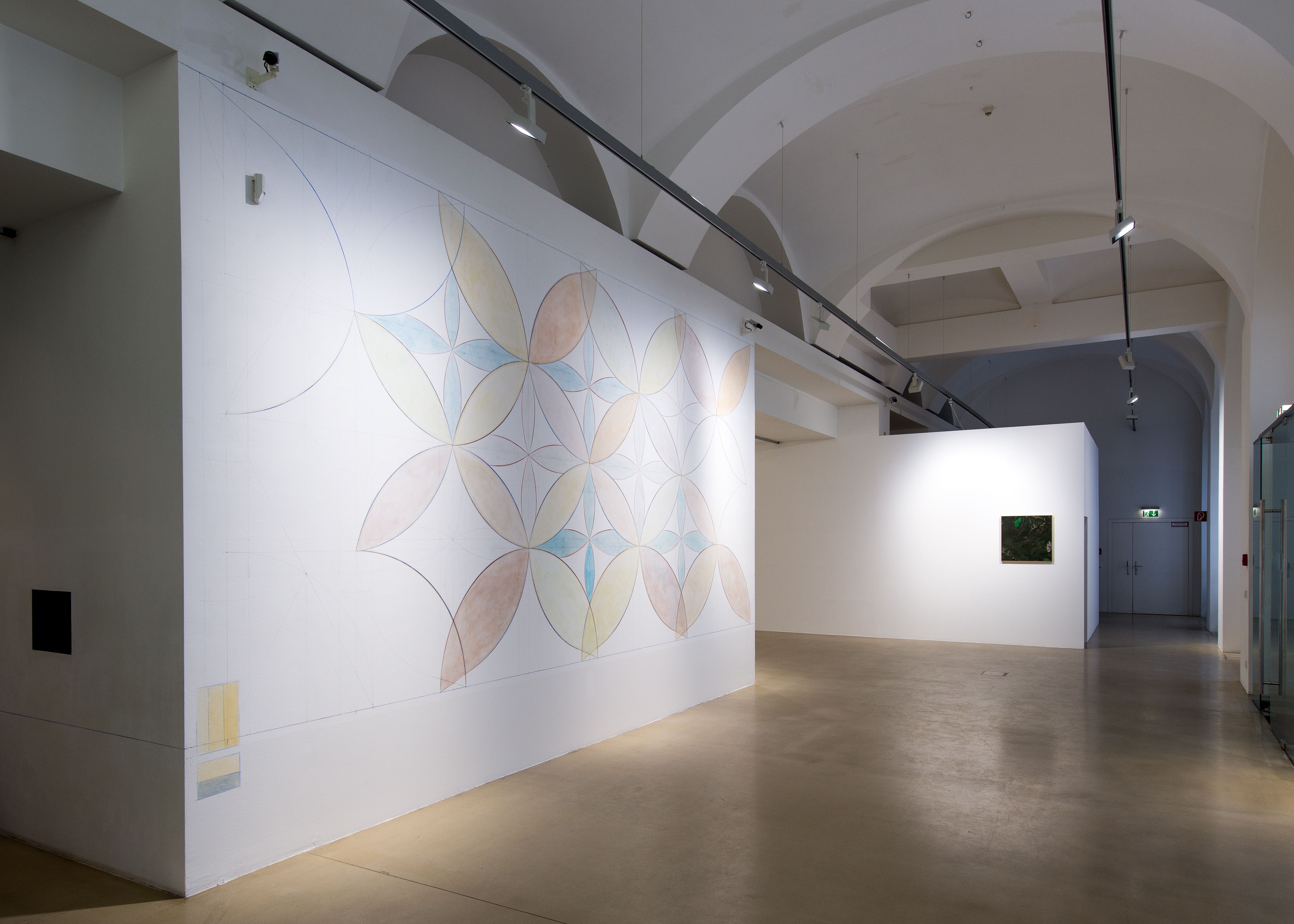 Thomas Gronegger schafft für die Ausstellung ein Wandgemälde, das sich auf die historischen Schlingrippengewölbe der ehemaligen Torhalle, jetzt Landhauskappelle, und den vierstrahligem Schlingenstern im heute verlorenen Kurvaturengewölbe bezieht. Eine Zeichnung im Kupferstichkabinett der Akademie bildet die Basis für die Wandgestaltung im Kunstraum. Theoretische Projekte, zeichnerische Analysen, Fotodokumentationen und konkrete Objekt- und Wandarbeiten oszillieren zwischen morphologischer Forschung und künstlerischer Suche nach neuen Ausdrucksformen im Räumlich-plastischen. Dabei analysiert Gronegger sein gewähltes Thema immer zuerst zeichnerisch, um grundlegende Strukturen und Elemente freizulegen und fotografiert sie dann um räumlichen Sequenzen und inhaltliche Querverbindungen zu dokumentieren.