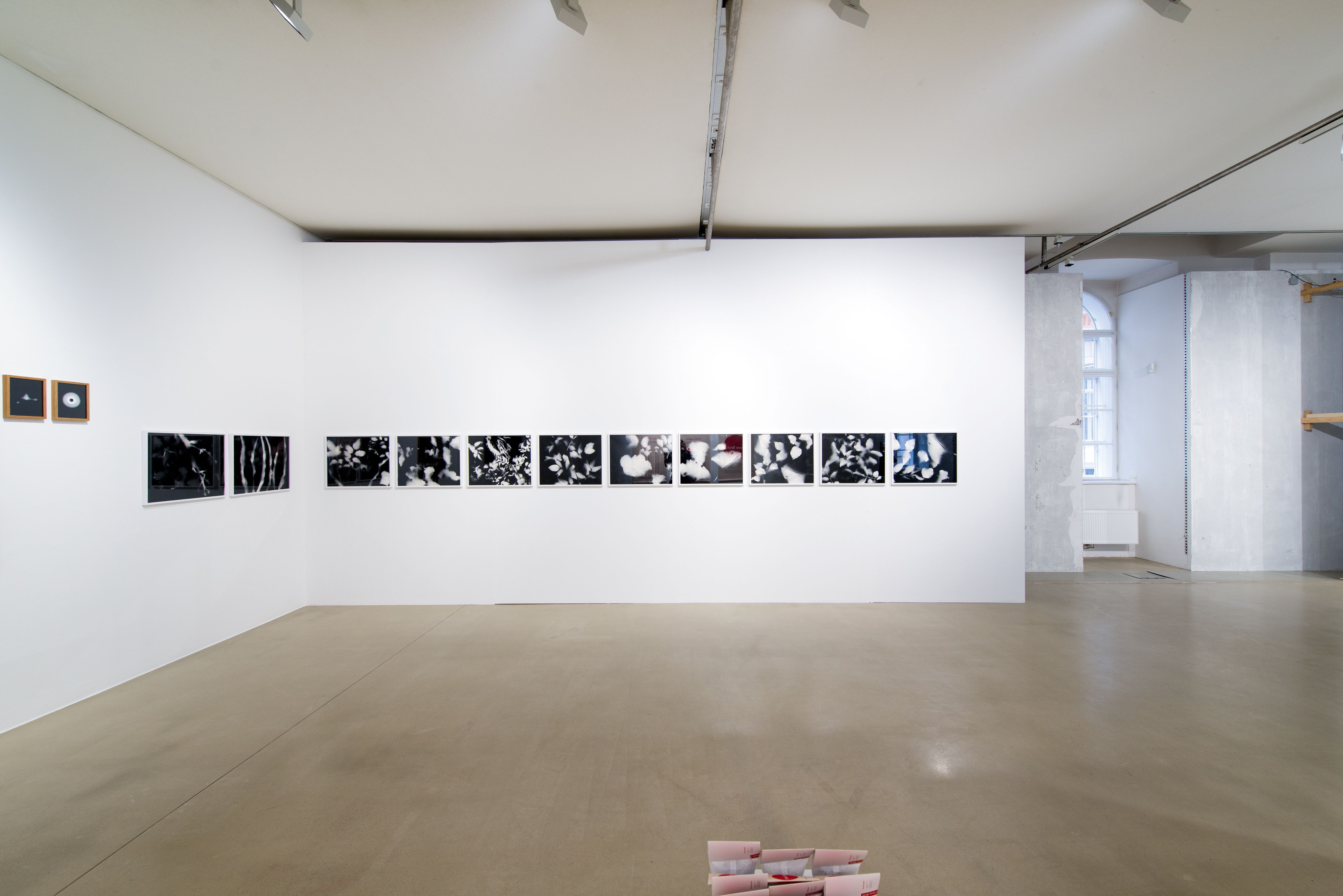 Beatrix Bakondy präsentiert Bildwelten mit dem Titel Aerosole und Galaxien . Die Arbeiten scheinen beim ersten Blick Fotografien zu sein. Doch sie sind de facto Skulpturen. Geschaffen wurden sie mittels technischer Aoerosole, also einem Gemisch aus festen und flüssigen Schwebeteilchen und einem Gas. Es sind Sprayarbeiten, die mittels Auftrag von Farbströmen auf reale dreidimensionale Objekte räumliche Schatten auf das Papier werfen. Der Raum, den ein Objekt einnimmt, wird sichtbar gemacht. Die beiden Werkgruppen handeln von Objekten unterschiedlicher Welten.