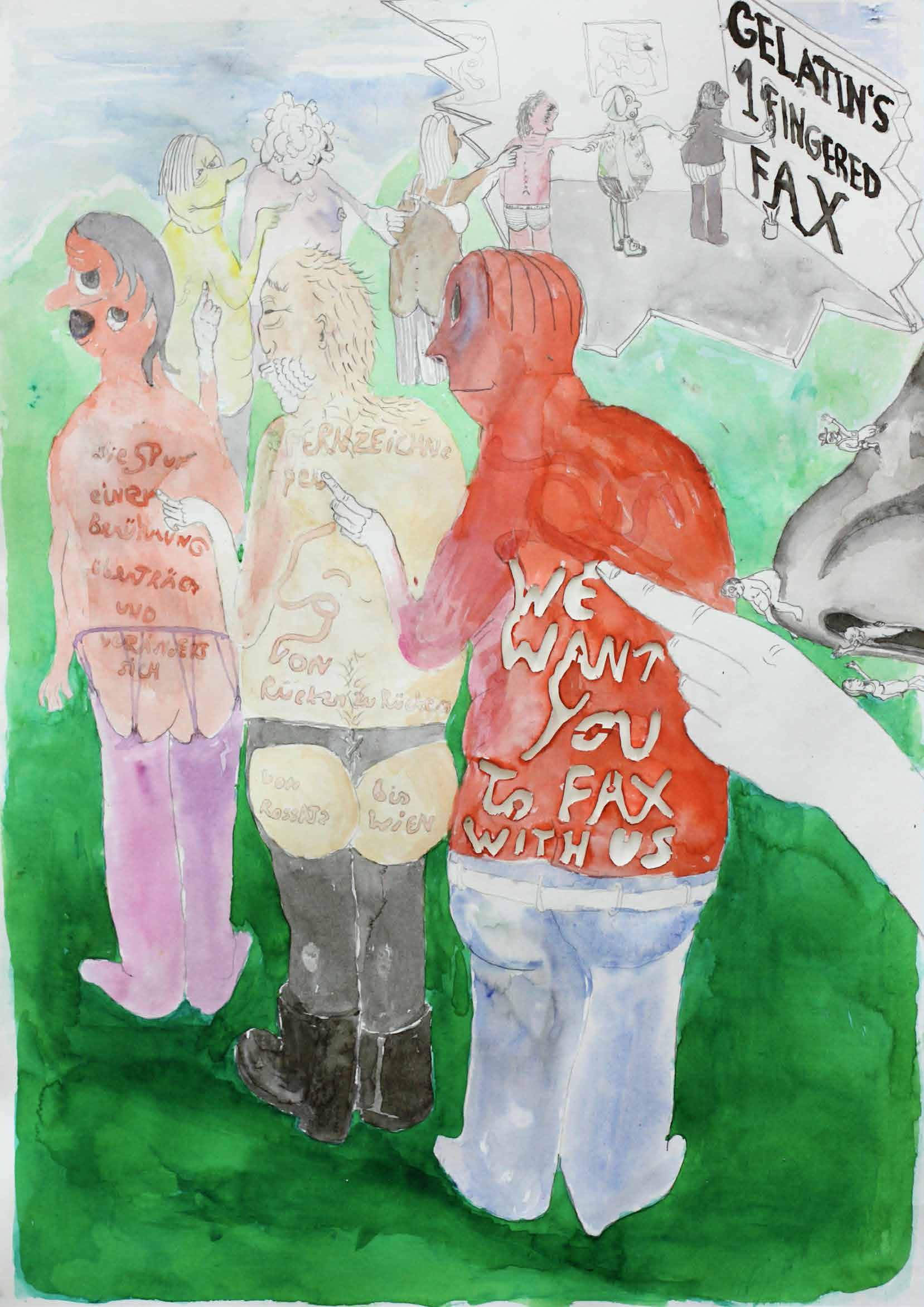 Bei der "Wachauer Nase" starten Gelatin ein "1 fingered fax" – von Rücken zu Rücken – und schauen sich an, welche Spur die Berührung auf ihrem Weg nach Wien hinterlässt und wie sie sich verändert.