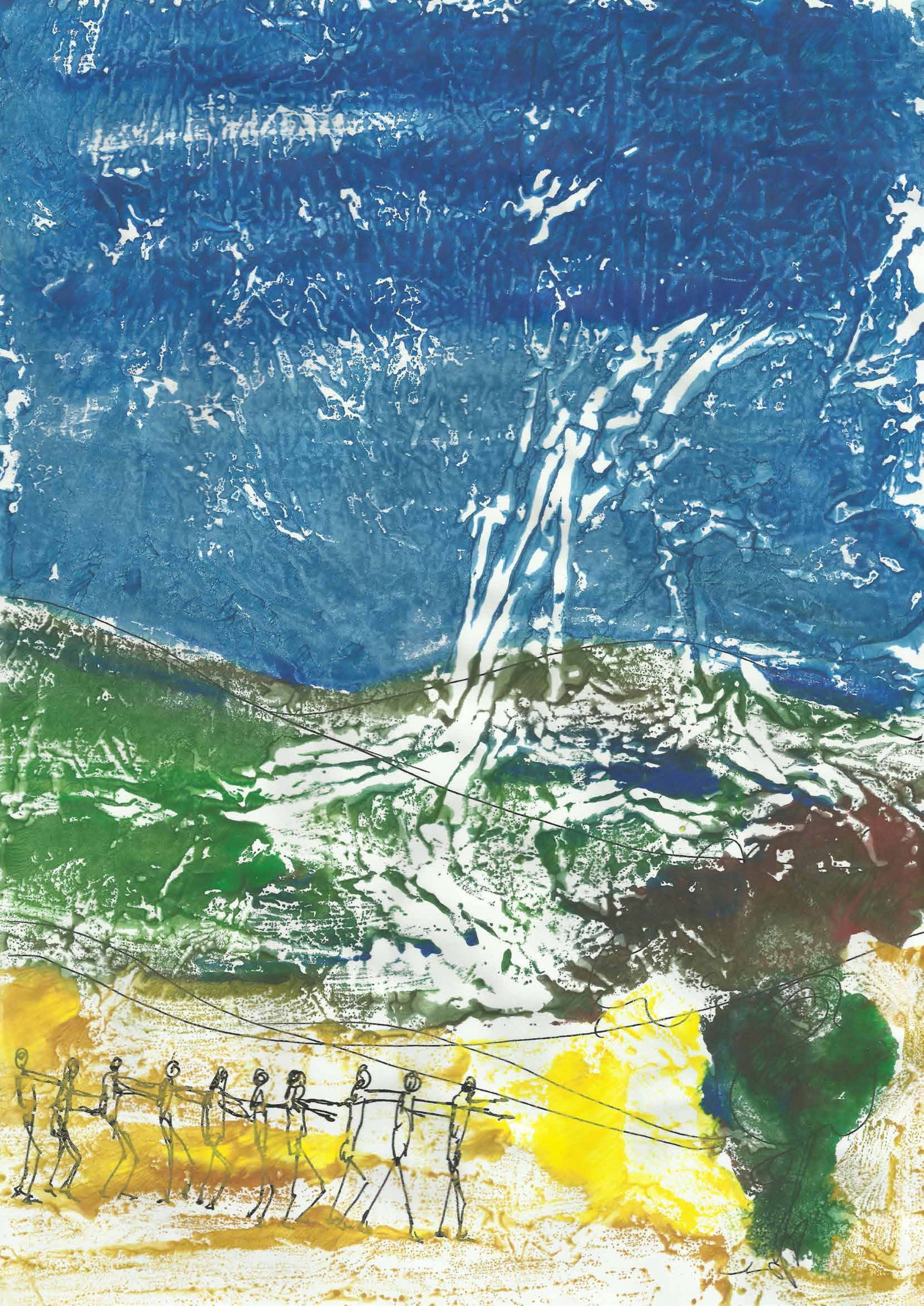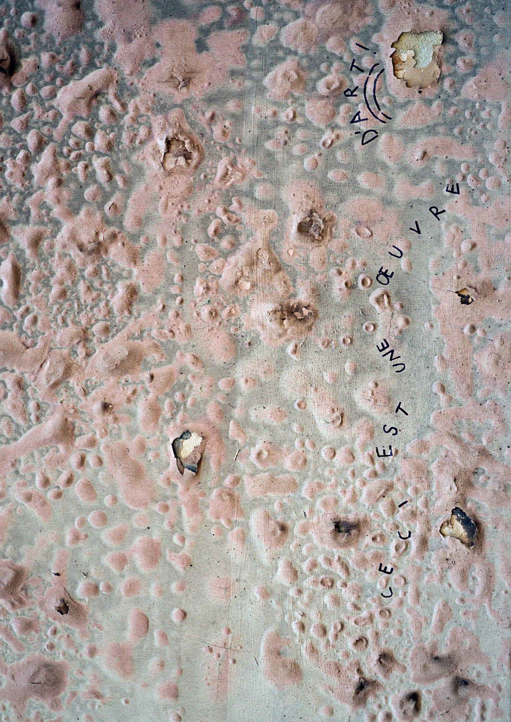 Doch ich erlebe Dimensionen / im ungeheueren Zustand des Wachsens und Vergehens im Unbehausten und Verlassenen. Sich in Gebieten bewegen / an denen man weder von Beginnen oder Enden / noch von Stillstand sprechen kann. Orte / an denen wir ausgeklammert scheinen – vorher und nachher ist ident – Werden und Verschwinden. Bewegte Orte – oder der Versuch Zeit zu konstruieren – und dies hat doch mit Arbeit zu tun / das Zelebrieren der dem Anschein nach unbedeutenden Handlungen.