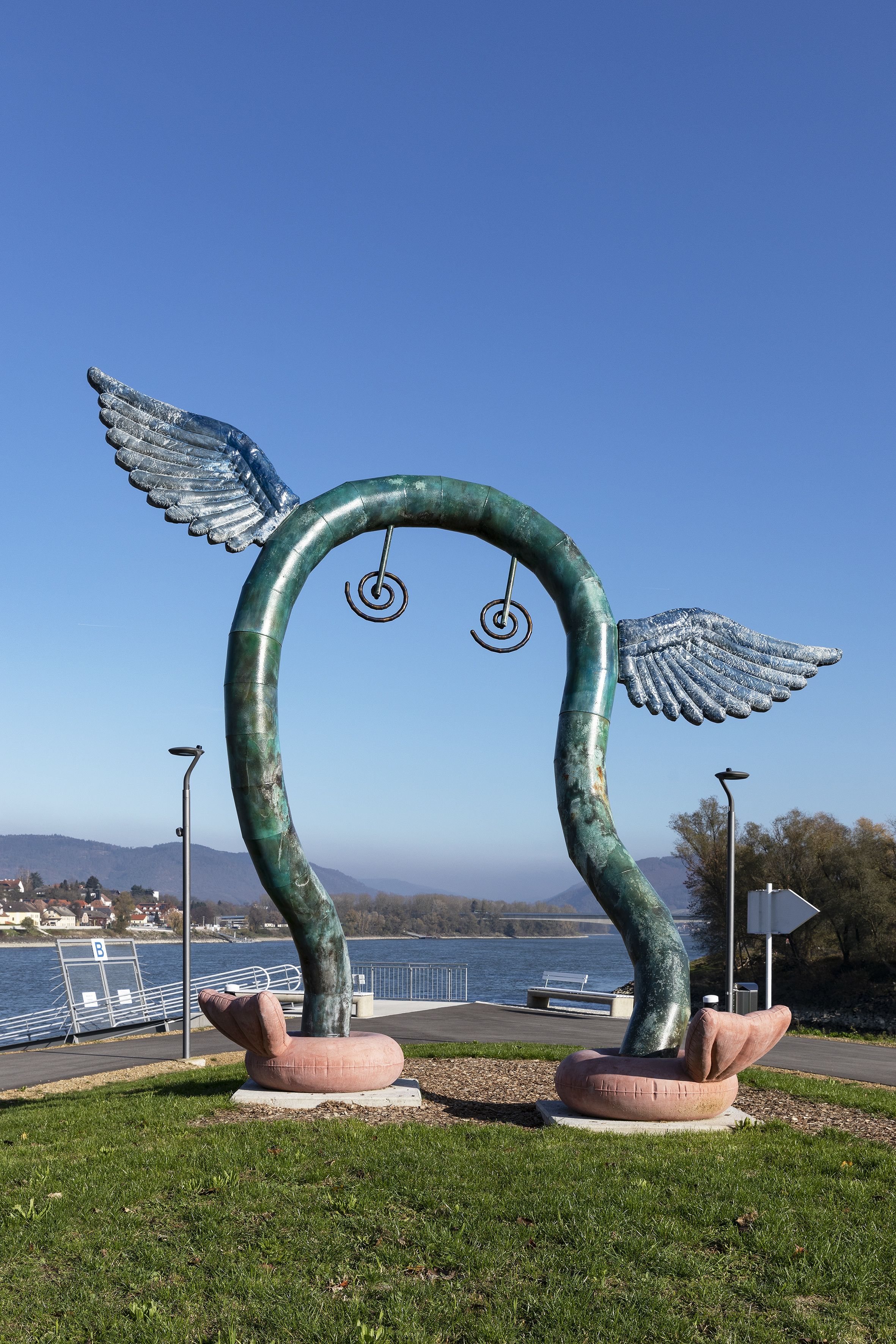 Die Töne, das Motiv der Spirale und die performative Drehung der Skulptur nehmen die Bewegung und die Ambivalenz des Flusses auf. Die Donau mündet nach der Stadt Wylkowe in der Ukraine durch das Delta ins Schwarze Meer. Die Skulptur ist ein Zeichen.
