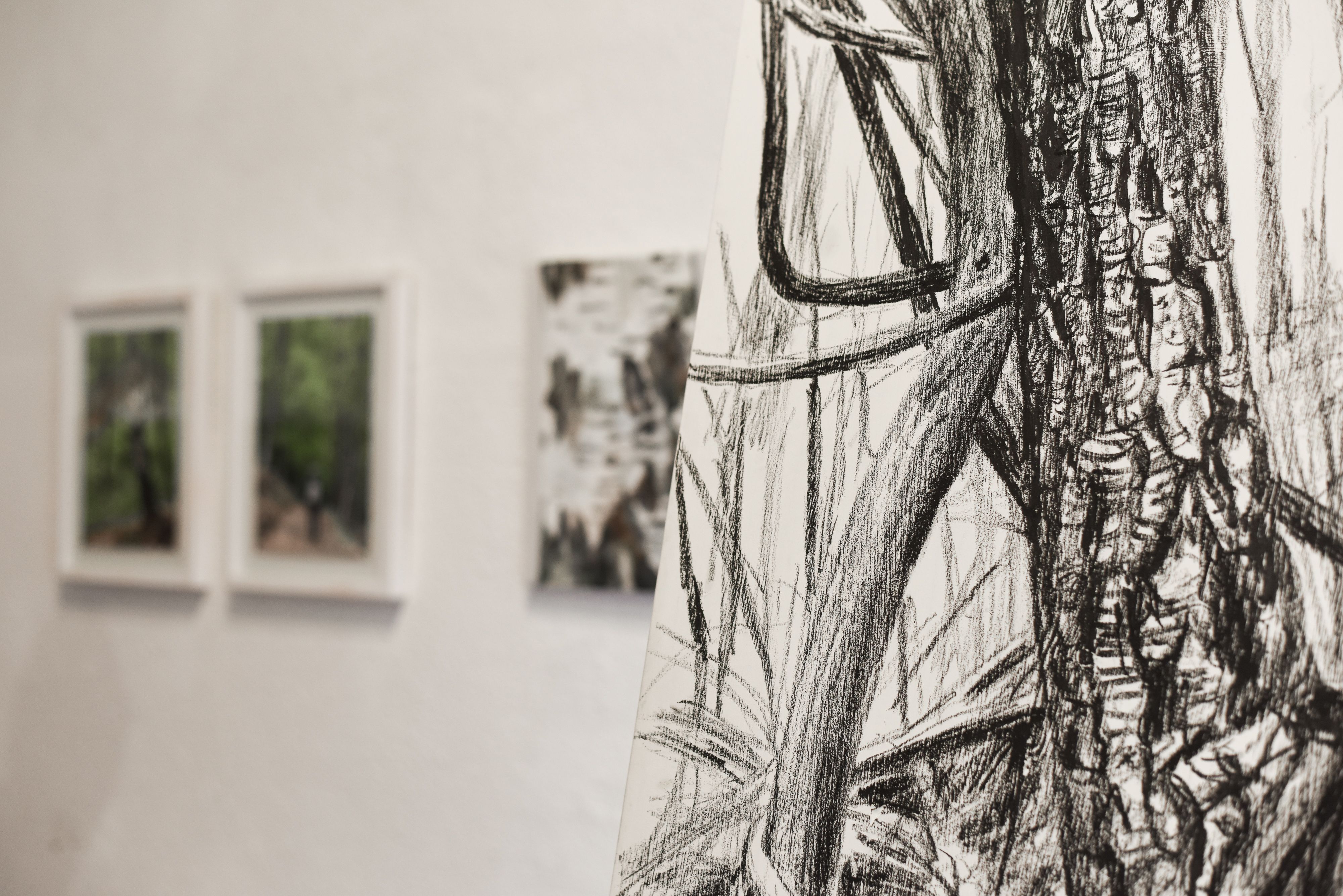 Für Alois Mosbacher ist der Wald seit vielen Jahren ein zentraler künstlerischer Gegenstand. Dieser ist historische Projektionsfläche für Mythen und Utopien genauso wie für die individuelle Gefühlswelt, die sich – von Freiheitsempfindung bis hin zu Bedrohung – darin wiederzufinden scheint. Darüber hinaus begegnet man hier einem visuellen Paradoxon, da Bäume zwar einen Raum definieren, ihn aber gleichzeitig – quasi strukturbedingt – zu verstellen scheinen, der Blick kann also nicht frei schweifen. Für Alois Mosbacher machen all diese Bedingungen den Reiz des Motivs Wald aus.