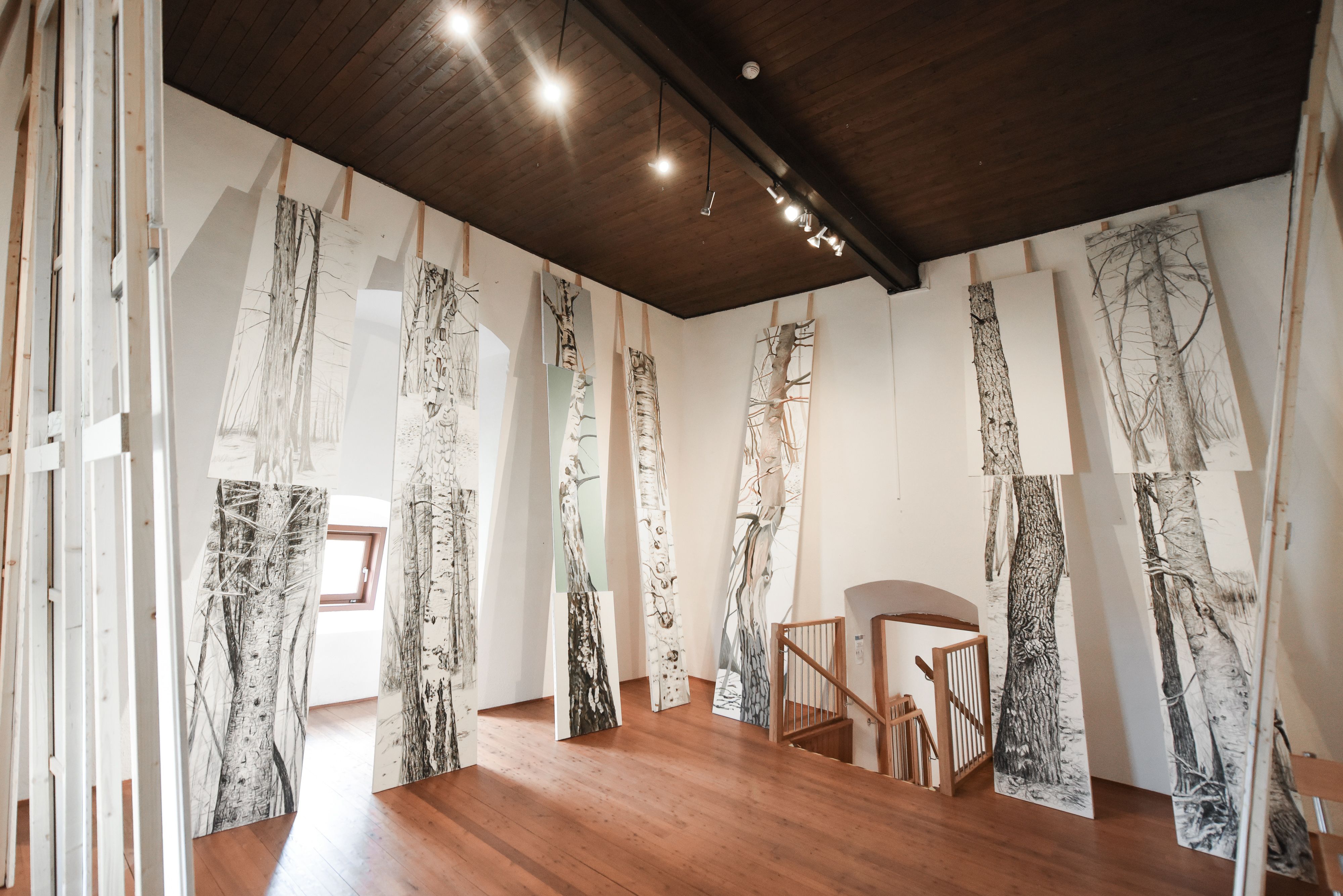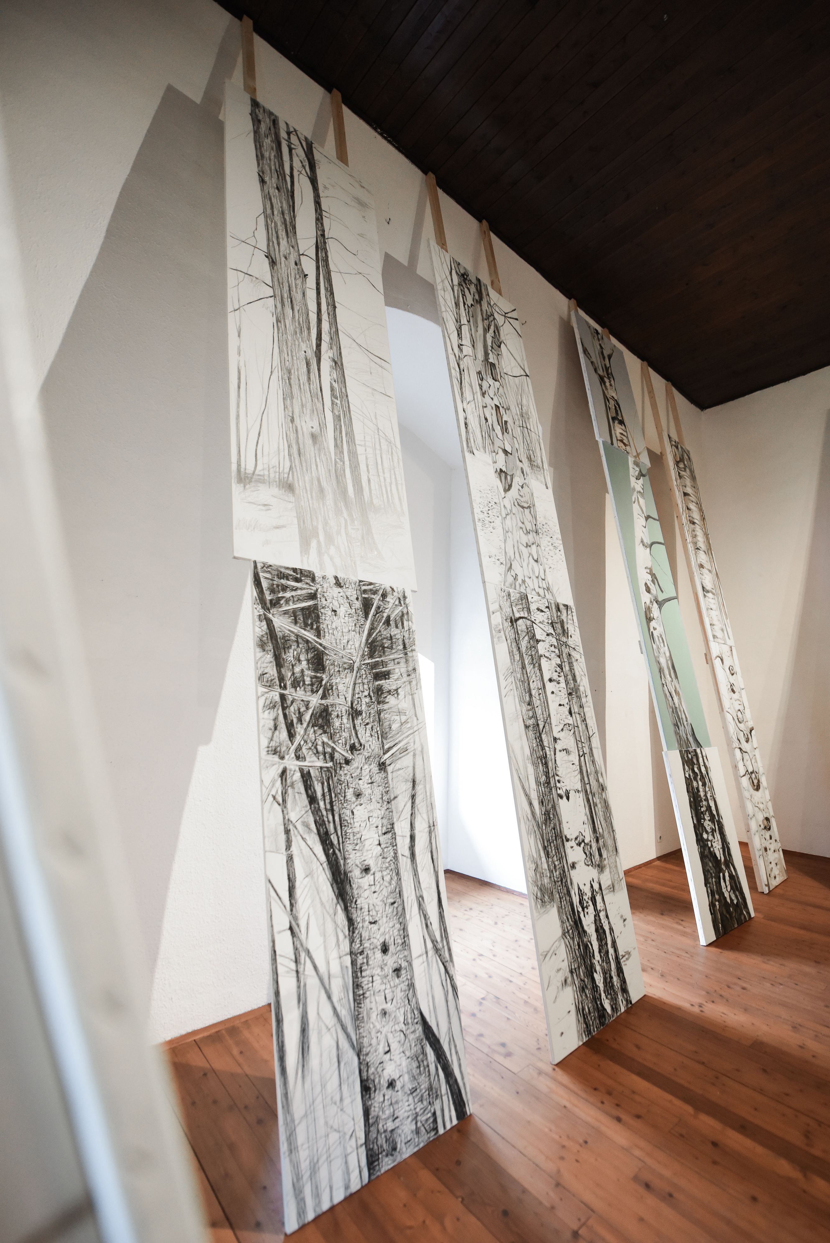 Der Maler Alois Mosbacher wirft seinen künstlerischen Blick seit Jahren auf den Wald. Mit dessen Anziehungskraft wie erzählerischer Vielgestaltigkeit beschäftigt er sich auch in seiner aktuellen Ausstellung und Intervention auf Schloss Orth, das von Auwald umgeben ist.