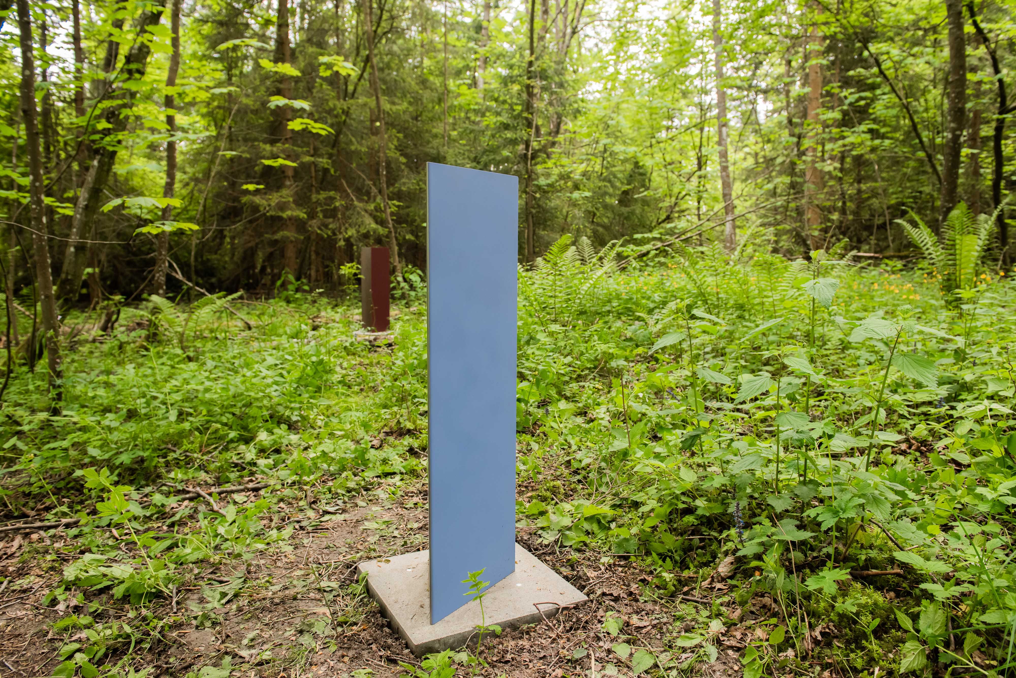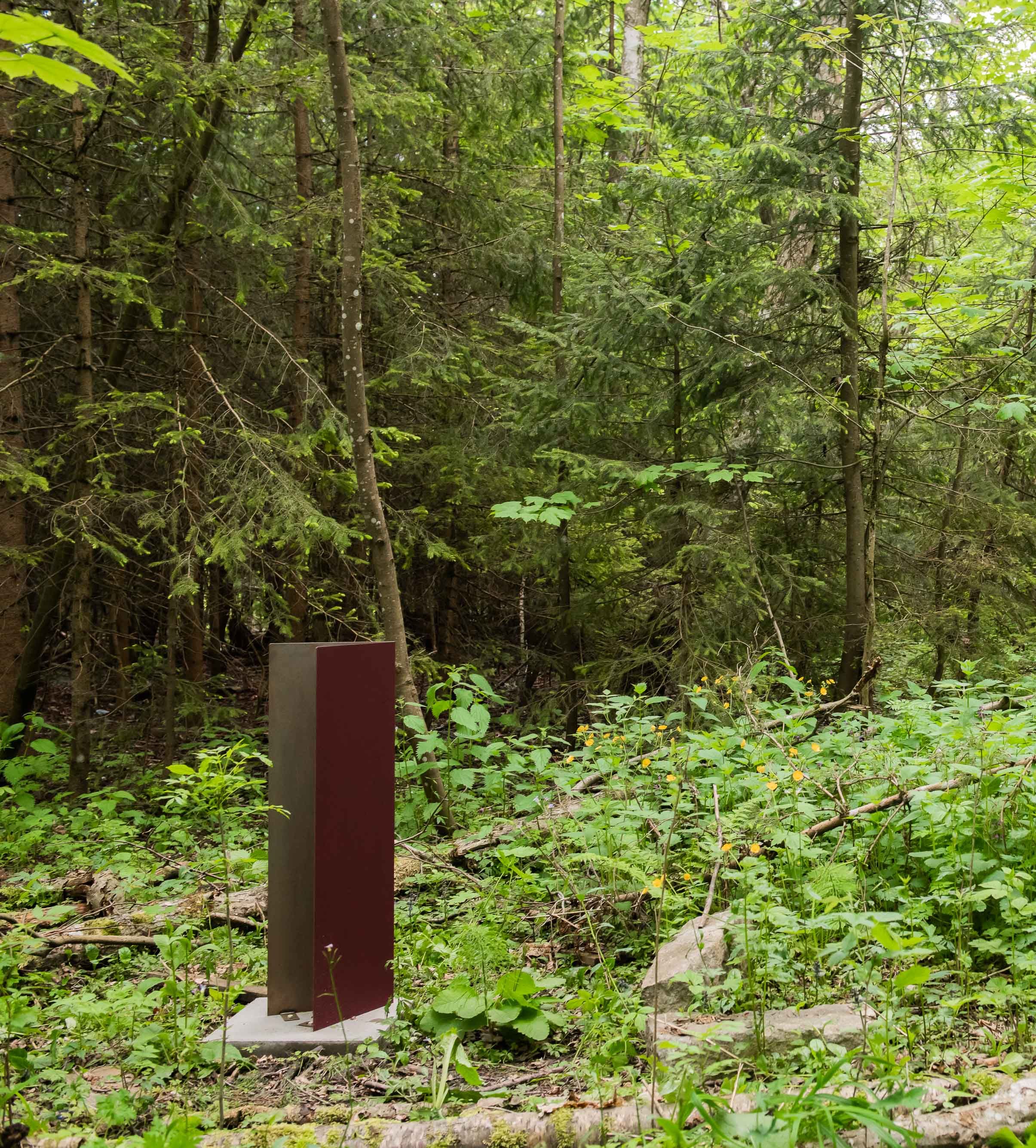 Der Kulturmontag ist eine dieser Geschichten. Elegante Farbelemente stehen wie beiläufig nahe dem Waldwanderweg Richtung Pinkenkogel. Im Ensemble abgestellt, entsteht ein wohlkomponierter Farb-Resonanz-Raum im Wechselspiel mit dem umliegenden Naturraum.