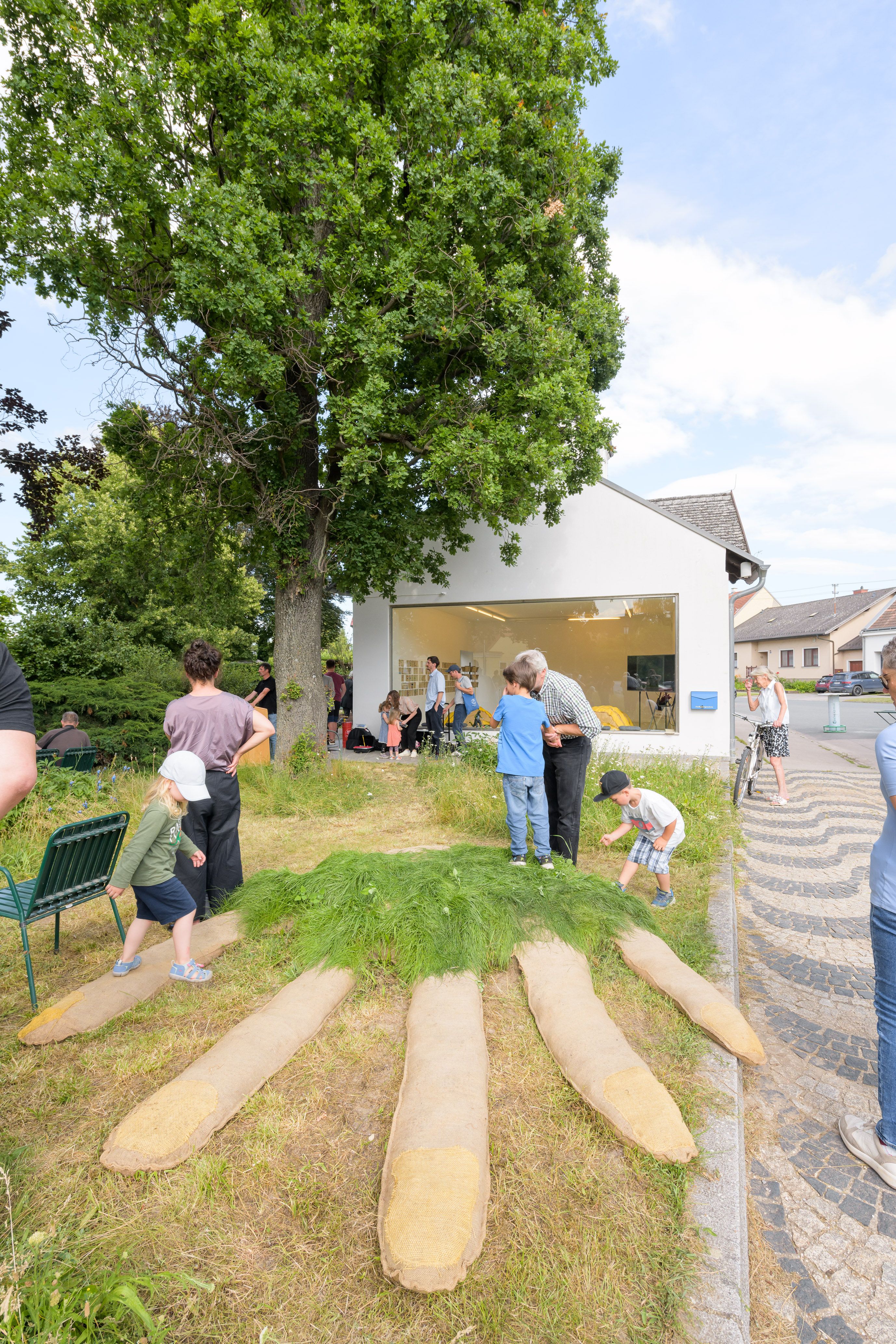 Öffentliche Räume sind vieles. Pragmatisch betrachtet, sind sie Orte, an denen sich Menschen aufhalten, sich (un)absichtlich mit anderen treffen oder durch die sie sich hindurchbewegen. Wie sie gestaltet sind, hat auf das Verhalten der Menschen und wie sie den Ort kategorisieren, einen sehr großen Einfluss. Ideell gesehen, sind öffentliche Räume Spiegel und Bühnen unserer Gesellschaft und des gemeinsamen Lebens. Sie erzählen Geschichte(n), sie sind das Fundament gemeinschaftlicher Werte, demokratischer Teilhabe und Zeugnis gelebter Baukultur. Doch was passiert, wenn diese Räume veröden und sie ihre Rolle als Herzstück des alltäglichen Lebens verlieren? Wie kann eine Gegenentwicklung aussehen in ländlichen Gemeinden? Genau hier setzt die künstlerische und partizipative Intervention Dorfkorrespondenz im und rund um den Kunstraum Weikendorf an.