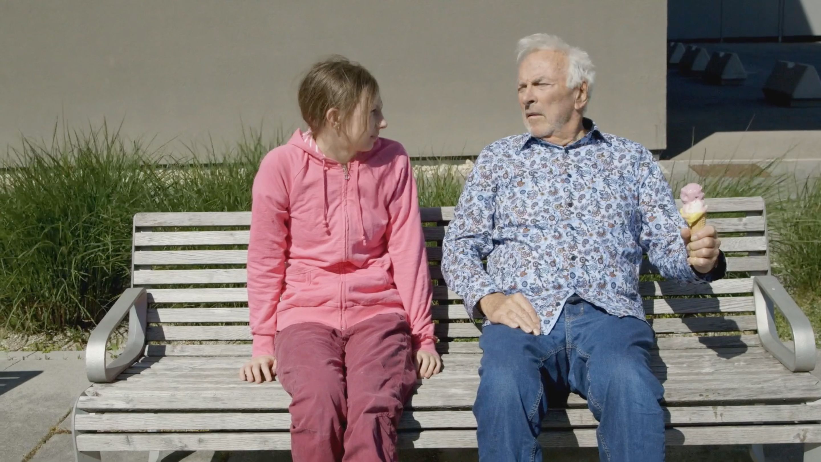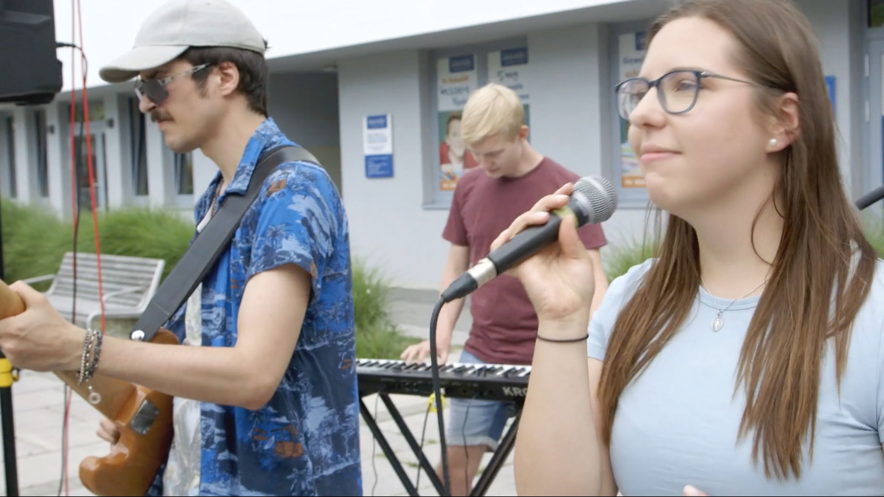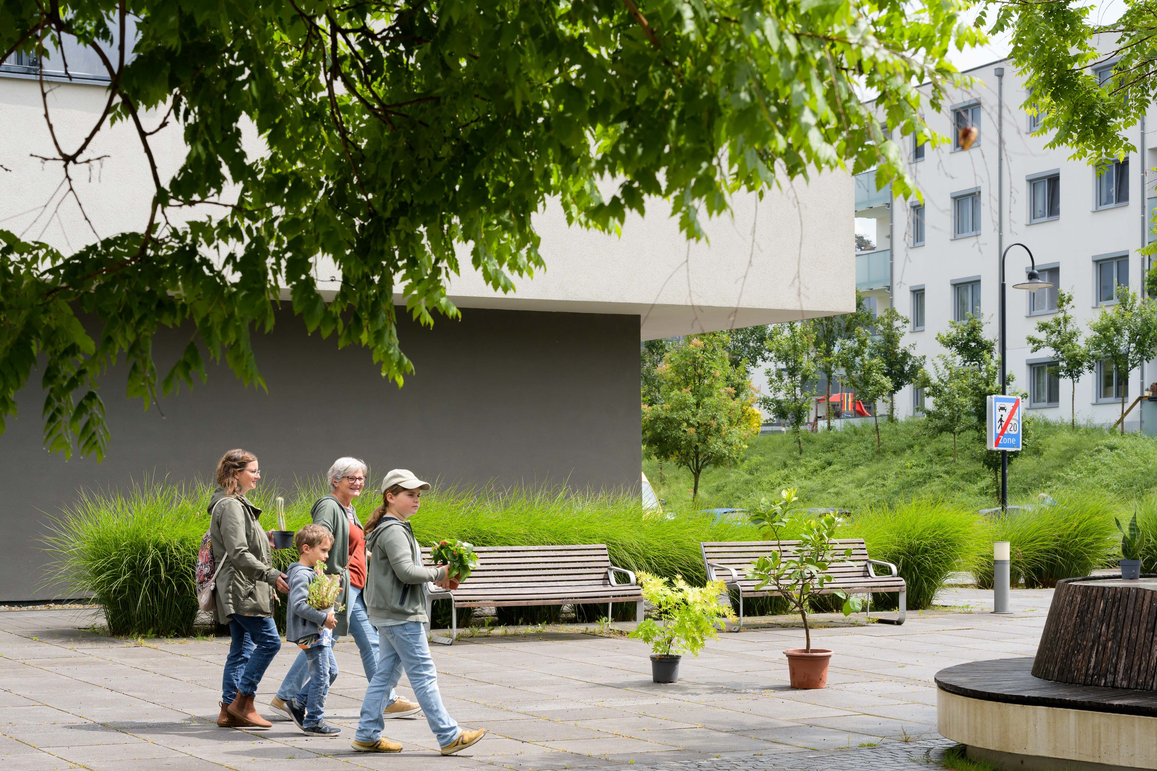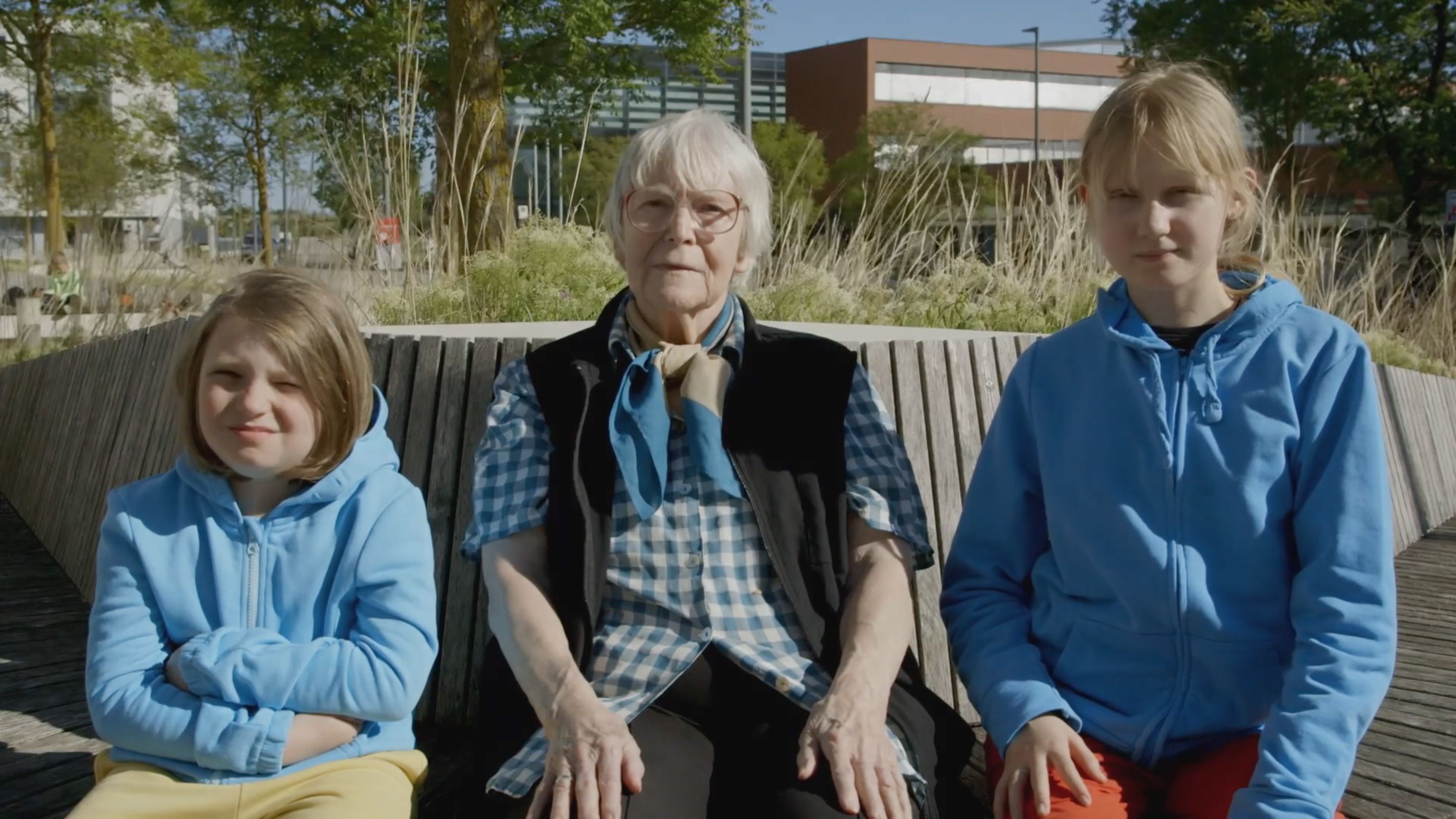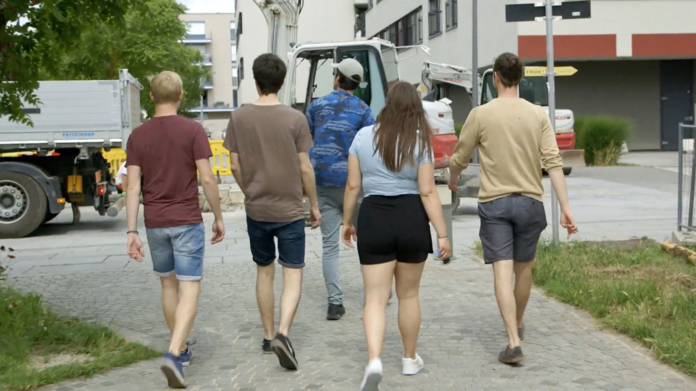 Der Kurzfilm, den Filmemacherin und Filmkuratorin Lotte Schreiber mit dem Jugendzentrum Outback, den Jugendlichen aus Wolkersdorf und Umgebung entwickelte, fokussiert auf den dortigen vor einigen Jahren neu geschaffenen Platz der Generationen. Die Adresse bildet eine örtliche Klammer und verweist gleichzeitig auf die mit Gymnasium, Landespflegeheim und angrenzenden Wohnbauten generationenübergreifenden Nutzerinnen und Nutzer dieser Begegnungszone. Der Kurzfilm, den die Künstlerin gemeinsam mit den beteiligten Kindern, Jugendlichen und jungen Erwachsenen konzipierte und umsetzte, nähert sich diesem Platz in drei Kapiteln. Er beginnt mit einer körperlichen Aneignung durch mehrere Protagonistinnen und Protagonisten, die den Ort auf ungewöhnliche Weise nutzen bzw. die Möblierungen im öffentlichen Raum auf eigentümliche Weise befragen und damit gleichzeitig auch die unterschiedlichen Bedürfnisse eines solchen Ortes bildlich in den Raum stellen. Das zweite Kapitel bringt das Private in Form von Zimmerpflanzen in den Außenraum und erzeugt damit eine subtile Verschiebung und Verzahnung von individuellen und gesellschaftlichen Bedürfnissen. Dazwischengeschnitten sind kurze Dialoge mit Bewohnerinnen des Pensionistenheims bzw. zwischen den Jugendlichen. Es werden Zukunftsthemen angesprochen und dabei auch Unsicherheiten und Fragen hinsichtlich Politik, Klima, Gesellschaft in den Raum gestellt. Das letzte Kapitel schließt den Kreis: Die während des gesamten Kurzfilms aus dem Off wiederkehrenden Bass-Sequenzen und gesprochenen Sätze sind Teil des Songs Gemeinsam der Wolkersdorfer Band Tonado, der für den Film geschrieben und am letzten Drehtag am Platz aufgeführt wurde. Im Rahmen des Jugendtages des Wolkersdorfer Sommerkinos konnte Ich bin die Stadt als Vorfilm vor großem Publikum präsentiert werden.