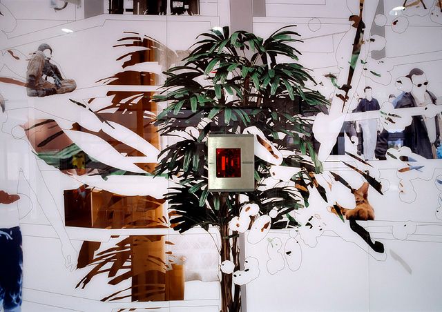 Die Künstler griffen das zentrale Thema der Handelsschule auf und installierten Wandbilder, die Situationen eines Supermarktes wiedergeben. Führt man den Barcode beliebiger Waren über den integrierten Supermarkt-Scanner, werden die Ziffernfolgen in jeweils anders klingende Tonfolgen übersetzt.