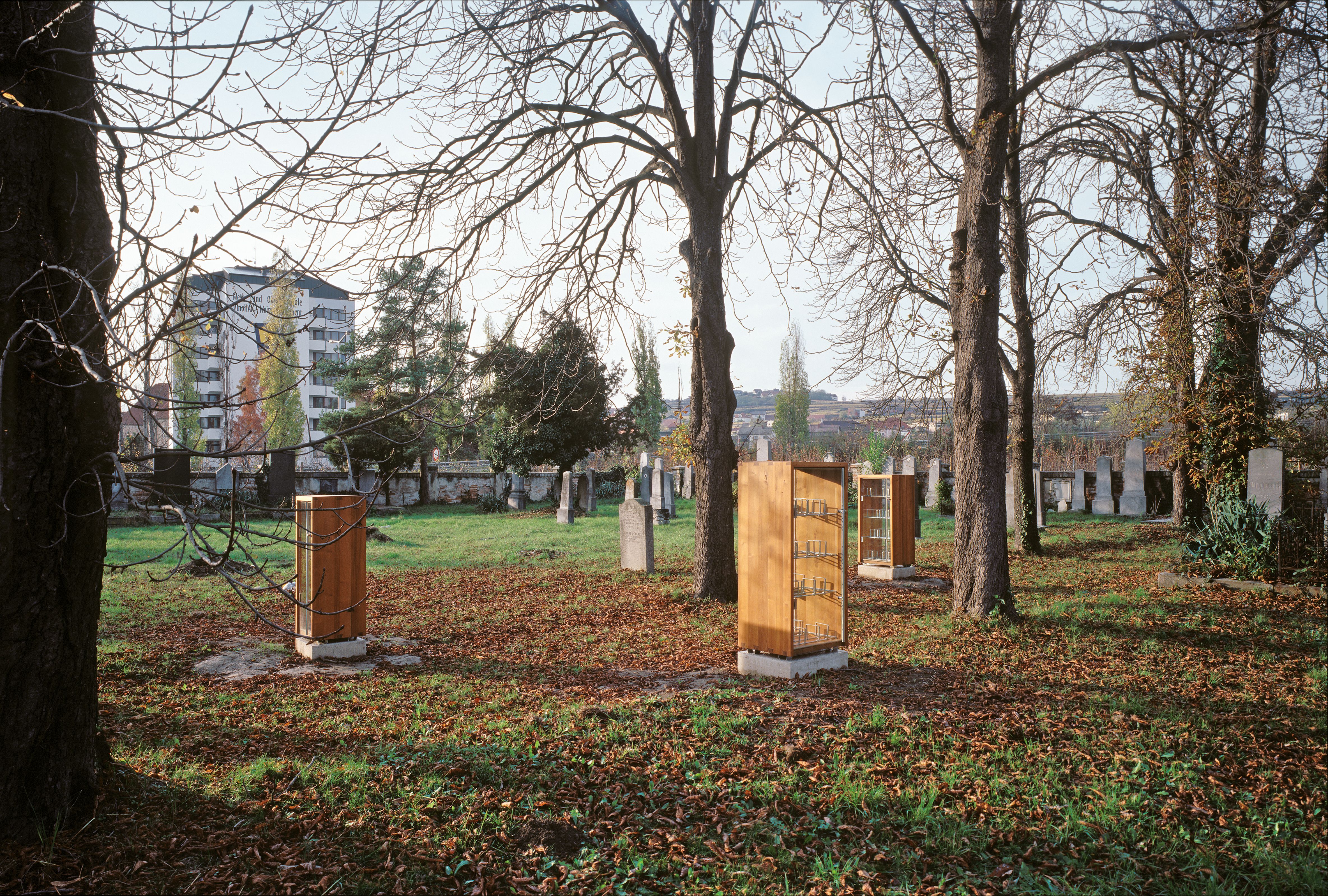 Die "Öffentliche Bibliothek" auf dem jüdischen Friedhof versammelt in drei Schränken Bücher über den Tod im jüdischen Gesetz, im Ritual und in der Philosophie. Besucher können Bücher ausleihen oder hinzufügen. Seit 1991 hat das Künstlerduo in mehreren Städten ihr Projekt der "Offenen Bibliothek" verwirklicht.