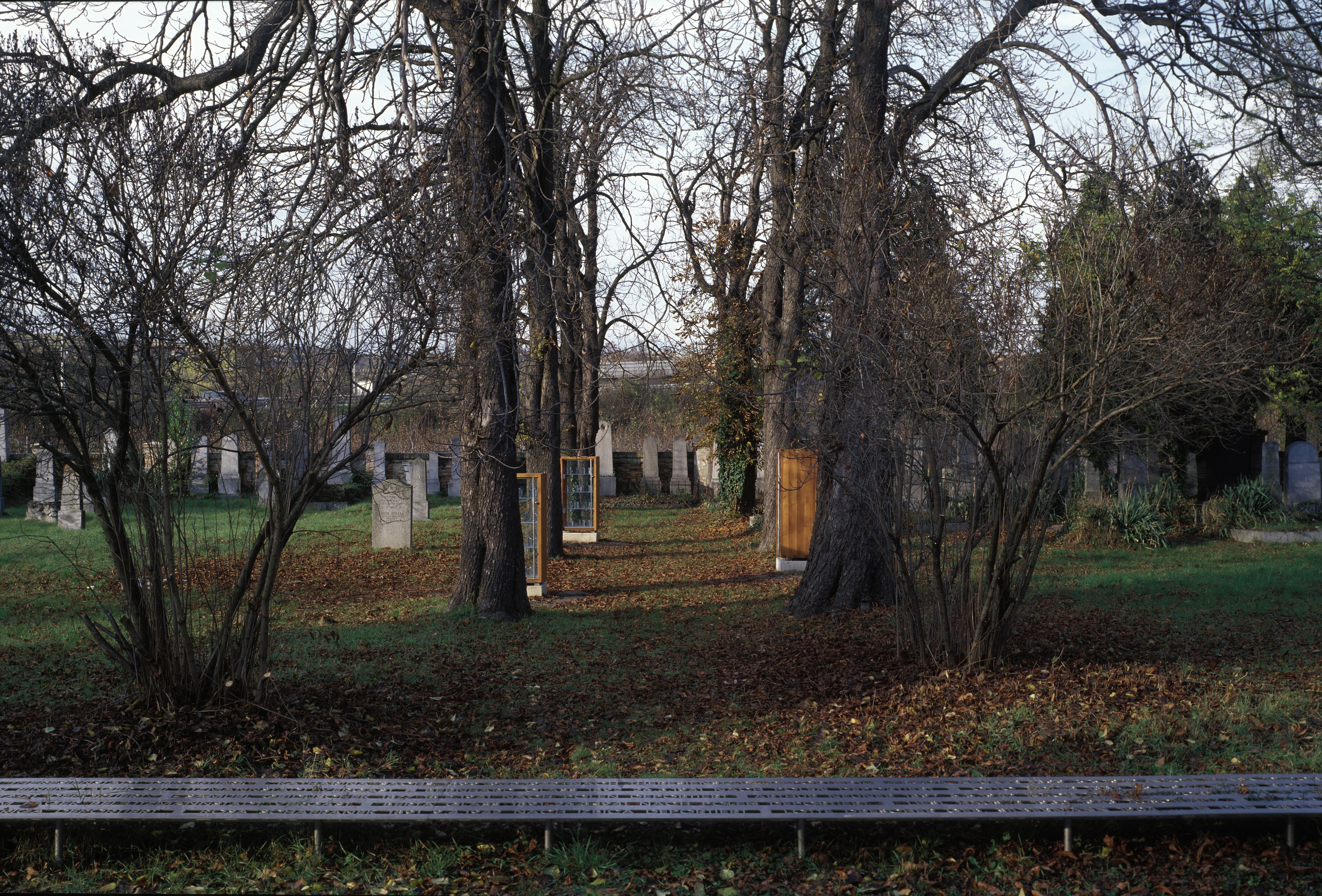 Michael Clegg und Martin Guttmann beschäftigen sich mit der Darstellung von kollektiven Gefügen und gesellschaftlichen Beziehungen. Seit 1991 haben sie in mehreren Städten ihr Projekt der "Offenen Bibliothek" verwirklicht, für das sie in frei zugänglichen Regalen Bücher zum Tausch anboten. Die Arbeit für den jüdischen Friedhof in Krems ist in diesen Kontext einzuordnen. Ursprünglich sollte das Projekt an der Außenwand der Kremser Piaristenkirche an einer Stelle verwirklicht werden, wo der Grabstein eines Rabbi Isaac aus dem 14. Jahrhundert entdeckt worden war. Da die betagten Ordensbrüder Einspruch erhoben, befindet sich "The Jewish Metaphysics of Death" nun auf jenem Friedhof, für den Hans Kupelwieser bereits ein großartiges Mahnmal geschaffen hat. In drei sorgfältig platzierten Schränken sind Bücher über den Tod im jüdischen Gesetz, im Ritual und in der Philosophie gesammelt. Besucher können eine beschränkte Anzahl an Büchern ausleihen oder Materialien hinzufügen. Clegg & Guttmann betrachten ihre Arbeit als "Revival Project", als einen Versuch der behutsamen Rückführung von Leben an einen ziemlich verlassenen Ort. Gleichzeitig machen sie die Unmöglichkeit eines solch optimistischen Unterfangens angesichts der Ausrottung der gesamten jüdischen Bevölkerung von Krems deutlich. Clegg & Guttmann sind Porträtisten. Ihre "Community Portraits" und "Social Sculptures" verstehen sie als Konstruktionen aus Recherchen und Ideen. Clegg & Guttmann brauchen keine Materialanhäufungen, ihre intellektuellen Arrangements werden aus kulturellem Wissen gebaut.
