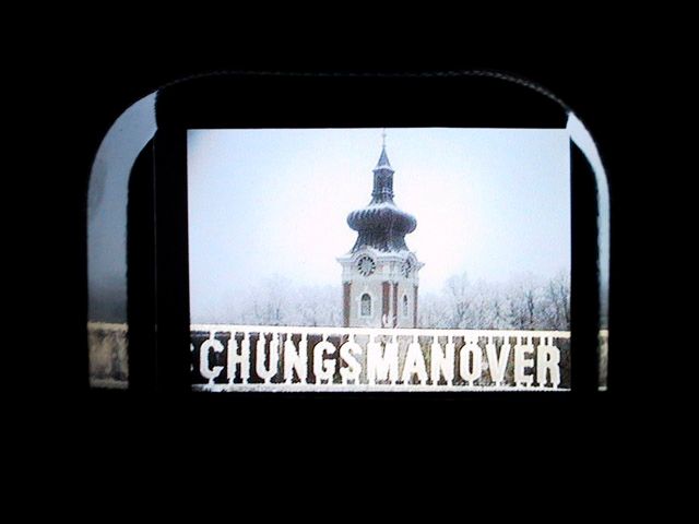 Mit dem 18 Meter hohen Periskop, das die Künstlerin "Täuschungsmanöver" nennt, kann man über Kirchturm, Schloss und Kaserne hinweg die um den Ort liegende Landschaft als Panoramabild betrachten. Am oberen Ende der Apparatur ist ein kreisförmiges Metallband mit verschiedenen Wörtern installiert, die sich in die Landschaftsbilder einfügen.