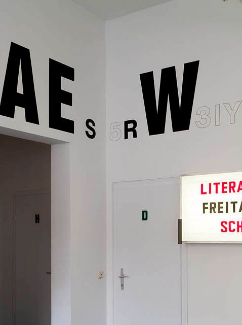 Franz Graf hat das Foyer entsprechend seines Grundsatzes "Das Sprechen ist eine Form" umgestaltet. Neben architektonischen Eingriffen und der Ausstattung mit alten Möbeln gibt es eine Wandarbeit mit einzelnen Buchstaben. Wie das modulierbare Ankündigungs-Billboard nimmt sie Bezug auf die Bauweise der Sprache – so auch der Titel der Arbeit "10718ERA1819R 6AUS9RE1117"