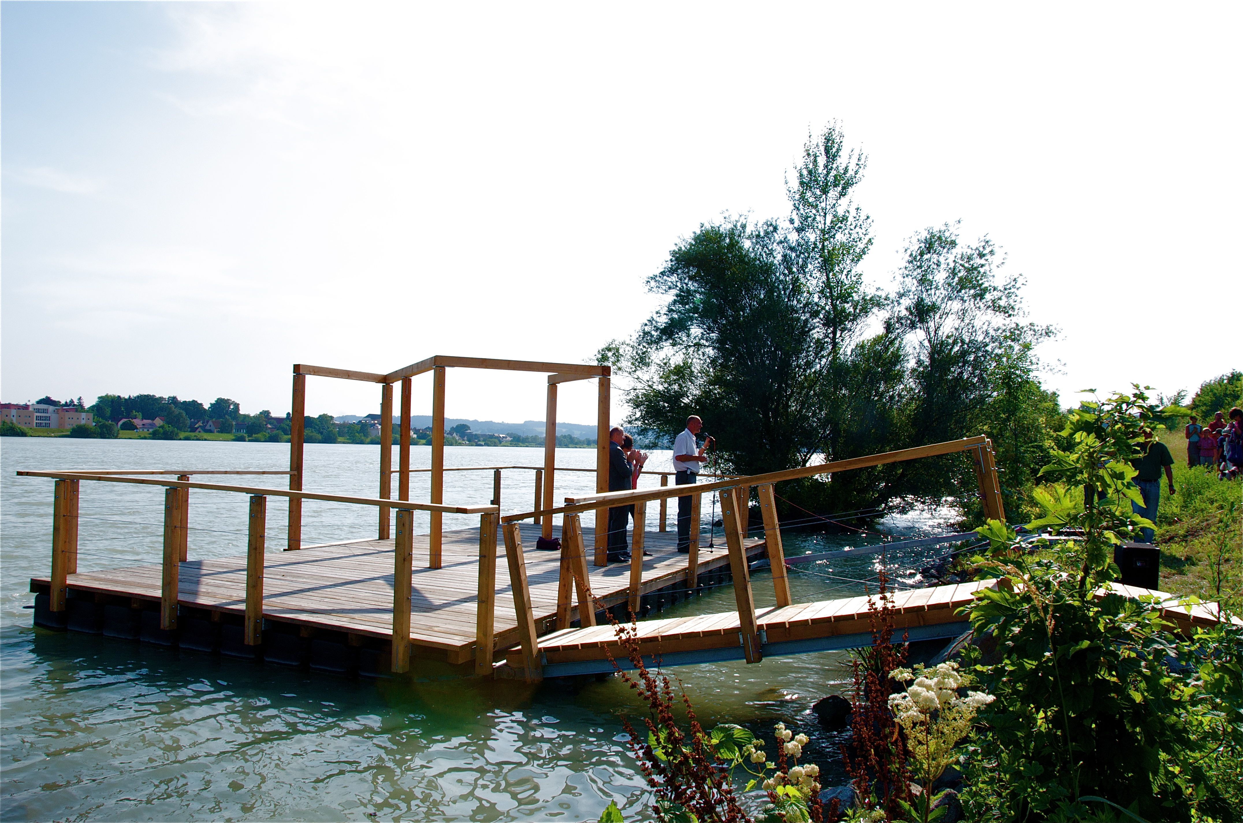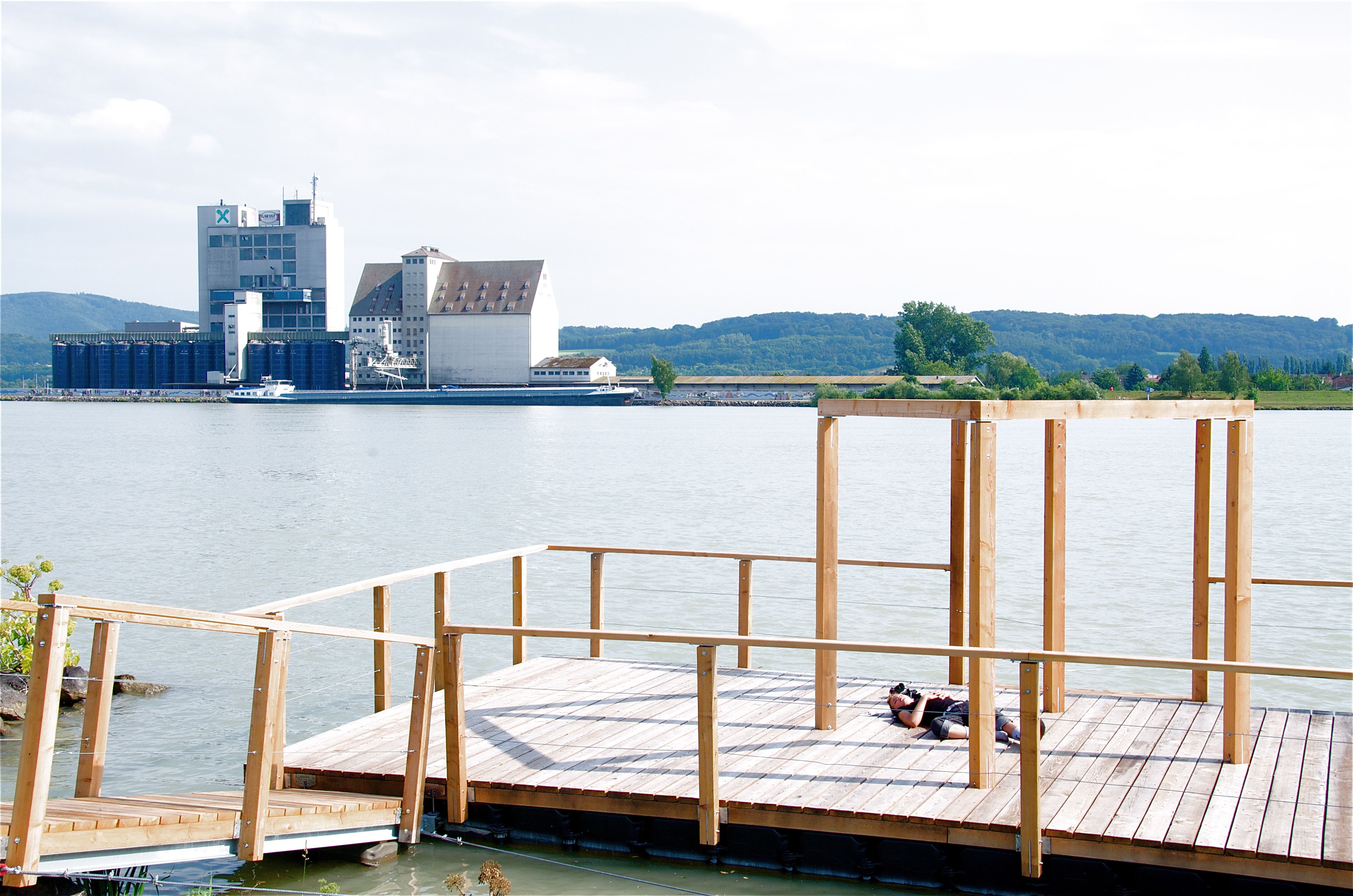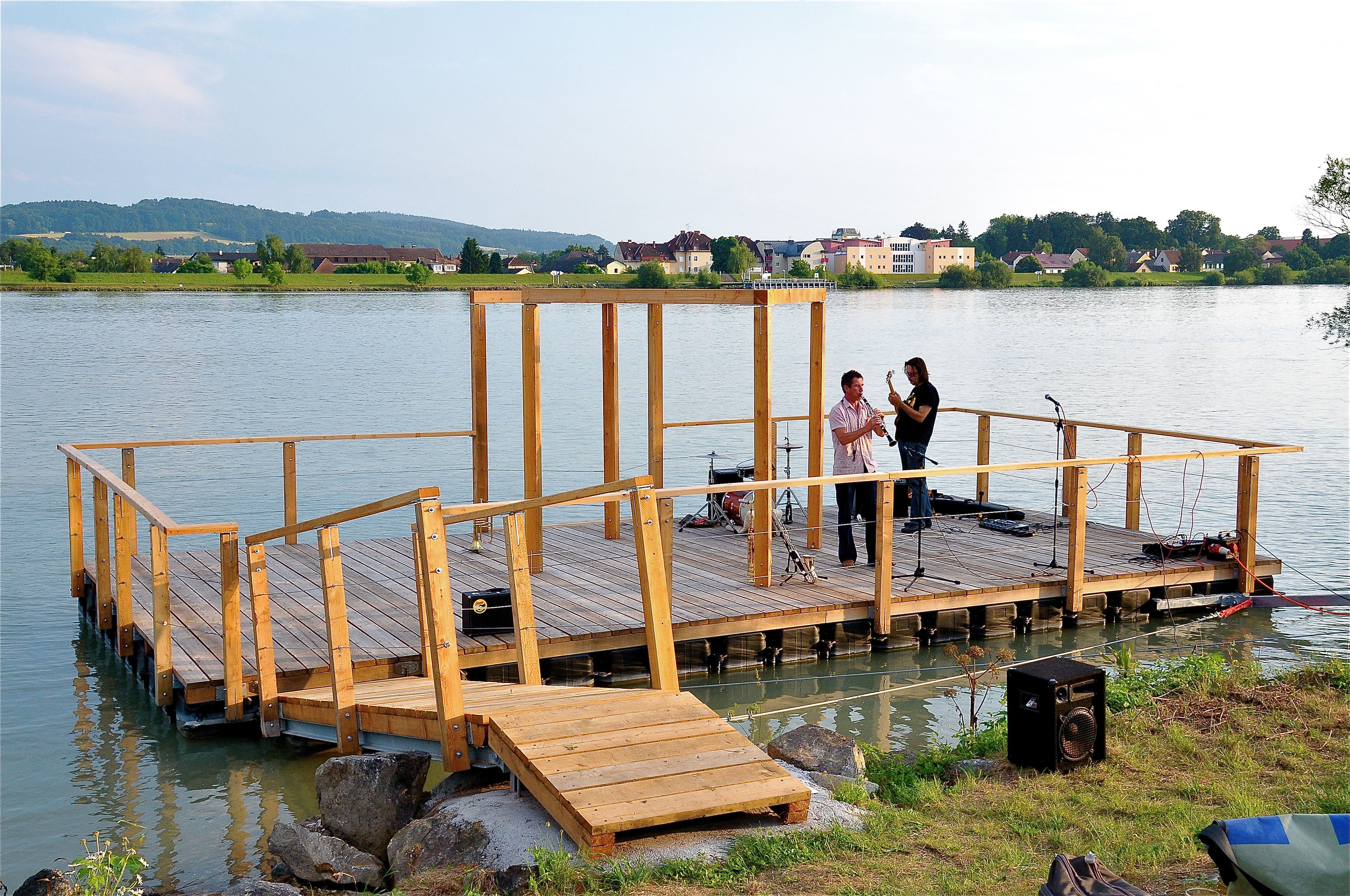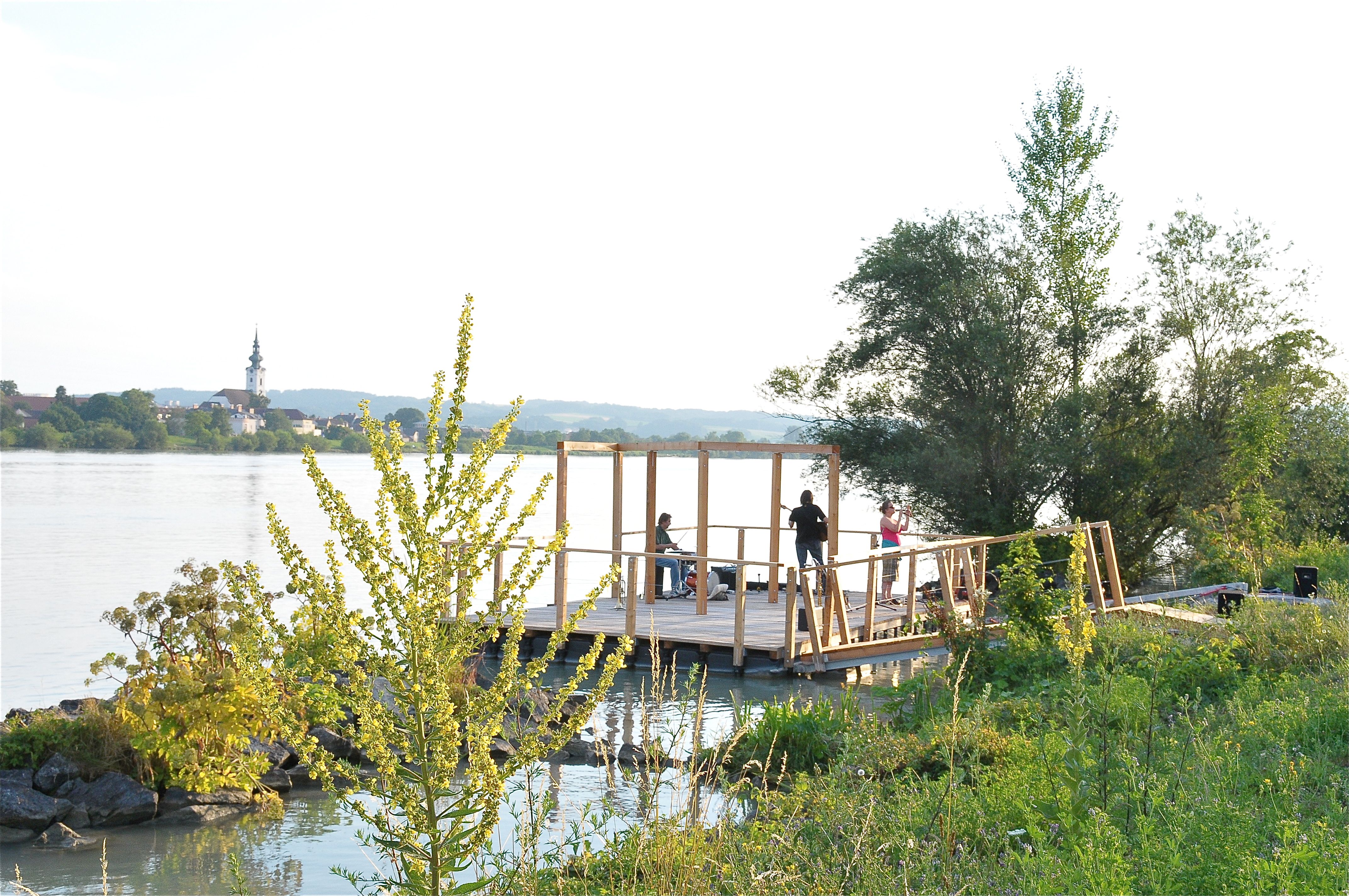 Die 5 x 10 Meter große schwimmende, hölzerne Plattform mit dem Titel „Erika“ ist durch einen Steg mit dem Ufer verbunden und soll an die ehemalige Anlegestelle der gleichnamigen und mittlerweile aufgelassenen Fähre erinnern. Sie wurde im Rahmen des Symposiums „Orte zum Verweilen“ (2001) konzipiert.