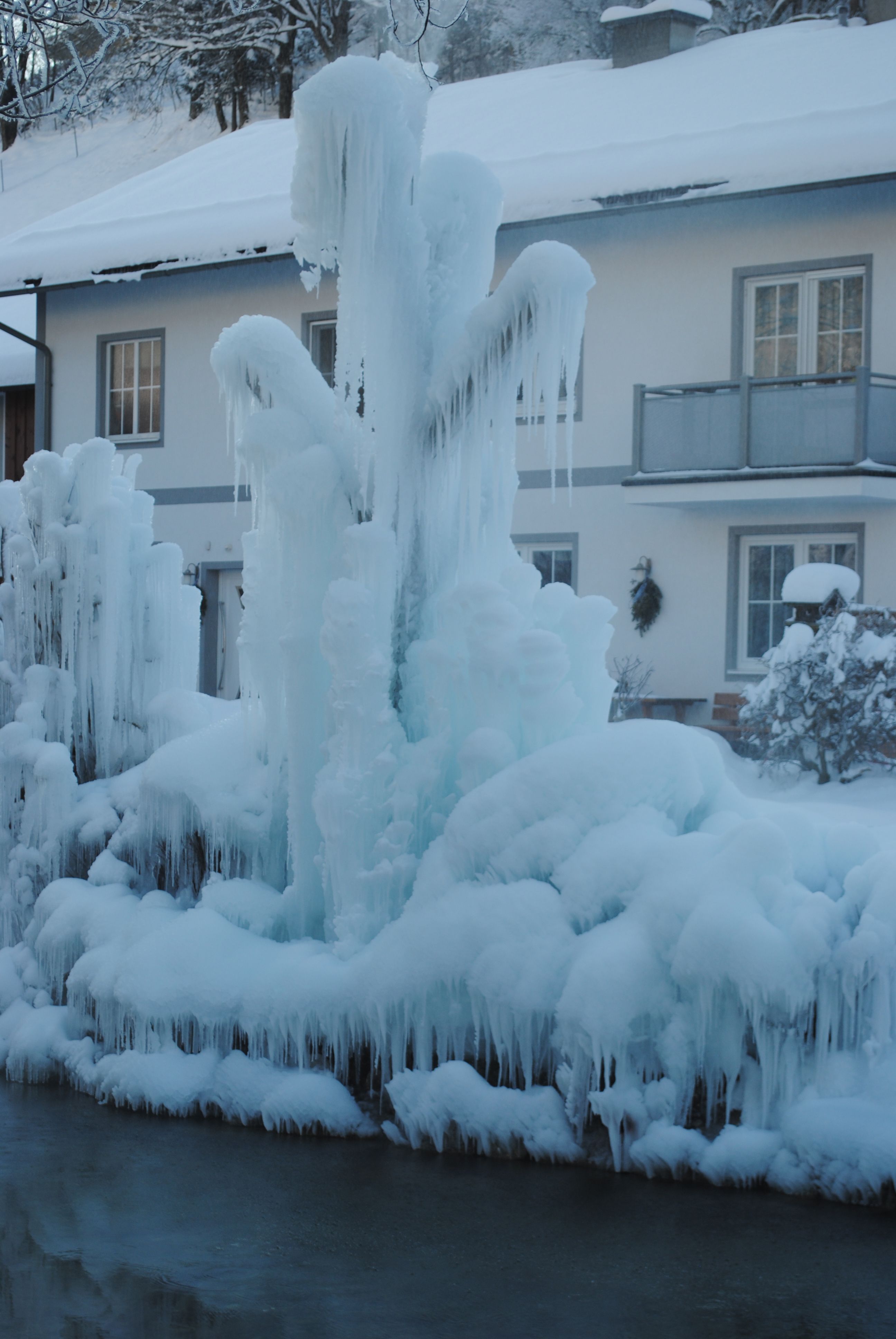 Sepp Auer hat den Baumbestand am Ufer des Prollinbachs um einen sechs Meter hohen stilisierten Baum aus Chromnickelstahl erweitert. Der auf seine wesentlichen Merkmale reduzierte Baum ist mit einer Pumpe versehen, die Wasser aus dem Bach hochpumpt und durch speziell für die Plastik entwickelte Düsen über die Äste wieder in die Natur abgibt. Anders als bei herkömmlichen Brunnenanlagen, bleibt der Baum in der kalten Jahreszeit in Betrieb und wird durch eine integrierte Sprühdüse in ein zartes Gespinst aus Eis gekleidet. Ybbsitz ist ein Ort, dessen Geschichte seit dem 15. Jahrhundert eng mit dem Schmiedehandwerk verbunden ist. Als Lehrender an der Wiener Universität für angewandte Kunst hat Sepp Auer in Ybbsitz mit Studierenden einige Symposien zum Thema Metall veranstaltet. Den künstlerischen Ergebnissen dieser Zusammenkünfte kann man immer wieder vor Ort begegnen. Als der Bildhauer 1998 einen geladenen Wettbewerb für die Gestaltung der Brunnenanlage auf dem Marktplatz von Ybbsitz gewann, konzipierte er diesen Brunnen aus Granit – in der ihm eigenen minimalistischen Formensprache. Die aktuell entstandene Brunnenplastik ist anders, auch wenn die Klarheit in der Grundhaltung des Künstlers die gleiche bleibt. Die Aufgabenstellung war, ein Objekt mit dem Element Wasser zu konzipieren. Sepp Auer ging also den Ort inspizieren und muss wohl eine Weile beim Prollinbach verweilt sein, um dort zu erkennen, dass dieser nicht nur eine wichtige Rolle für Ybbsitz und seine Schmiedekunsttradition spielt, sondern dem Ort gleichzeitig einen malerischen Reiz verleiht. Und so hat er den Baumbestand am Ufer des Bachs um einen sechs Meter hohen stilisierten Baum aus Chromnickelstahl erweitert. "Die Gedankengänge sollen greifbar sein", sagt der Künstler. Der auf seine wesentlichen Merkmale reduzierte Baum ist mit einer Pumpe versehen, die Wasser aus dem Bach hochpumpt und durch speziell für die Plastik entwickelte Düsen über die Äste wieder in die Natur abgibt. Anders als bei herkömmlichen Brunnenanlagen, die man bei Minusgraden "einwintern" muss, bleibt der Baum in der kalten Jahreszeit in Betrieb. Da läuft er zur Hochform auf und wird durch eine integrierte Sprühdüse in ein zartes Gespinst aus Eis gekleidet. Das Eisgespinst bahnt sich seine eigenen Wege. Wer hätte gedacht, dass eine sechs Meter hohe Metallskulptur so zart und fragil wirken kann? Sepp Auer ist ein Künstler mit einer besonderen Gabe, einen Ort in seiner Bedeutung und Materialität zu verstehen. Bei seinen Werken für den öffentlichen Raum hat das Umfeld immer Priorität. Nichts ist dort von der Ironie zu orten, die den minimalistischen Objekten des Bildhauers anhaftet, die wir in Ausstellungsräumen finden können. Dort fügen sie sich als nur vermeintliche Nutzgegenstände ein und werfen die Frage nach den Bedeutungen auf, mit denen Objekte für uns beladen sind. Klassisch formuliert, hat Sepp Auer in Ybbsitz eine Kunstschönheit in die Naturschönheit platziert und diese wiederum den Gesetzen der Natur unterworfen. Man muss sich also nicht für die eine oder die andere Art von Schönheit entscheiden. "Es geht um eine gewisse Haltung, um sonst gar nichts", sagt der Künstler. Mit dieser Aussage hat er zu einer dritten Art von Schönheit gefunden.