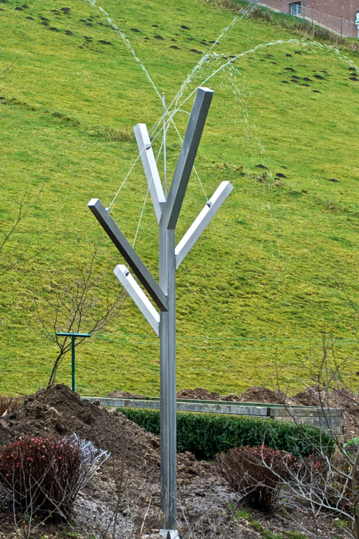Sepp Auer hat den Baumbestand am Ufer des Prollinbachs um einen sechs Meter hohen stilisierten Baum aus Chromnickelstahl erweitert. Der auf seine wesentlichen Merkmale reduzierte Baum ist mit einer Pumpe versehen, die Wasser aus dem Bach hochpumpt und durch speziell für die Plastik entwickelte Düsen über die Äste wieder in die Natur abgibt. Anders als bei herkömmlichen Brunnenanlagen, bleibt der Baum in der kalten Jahreszeit in Betrieb und wird durch eine integrierte Sprühdüse in ein zartes Gespinst aus Eis gekleidet.