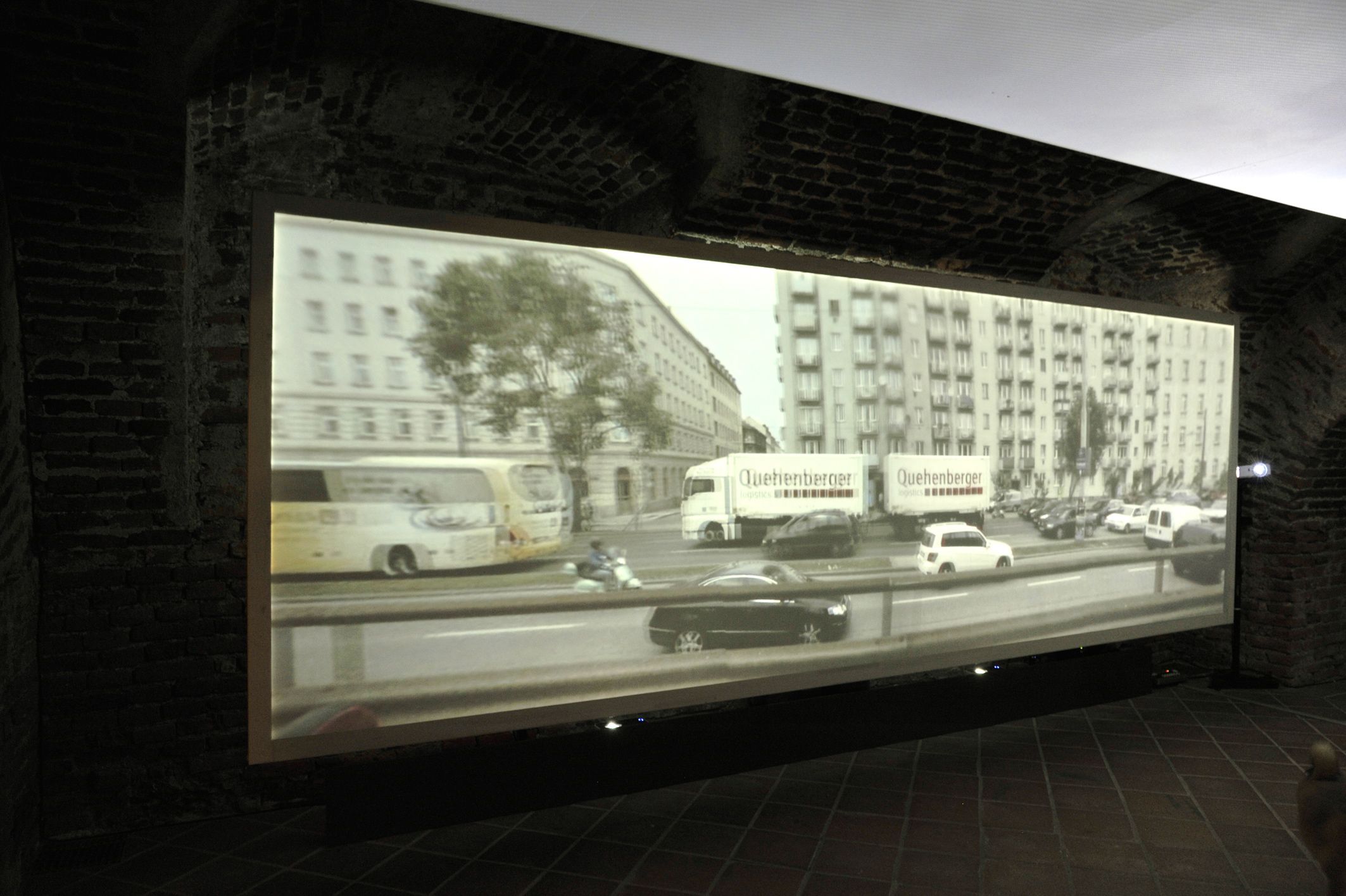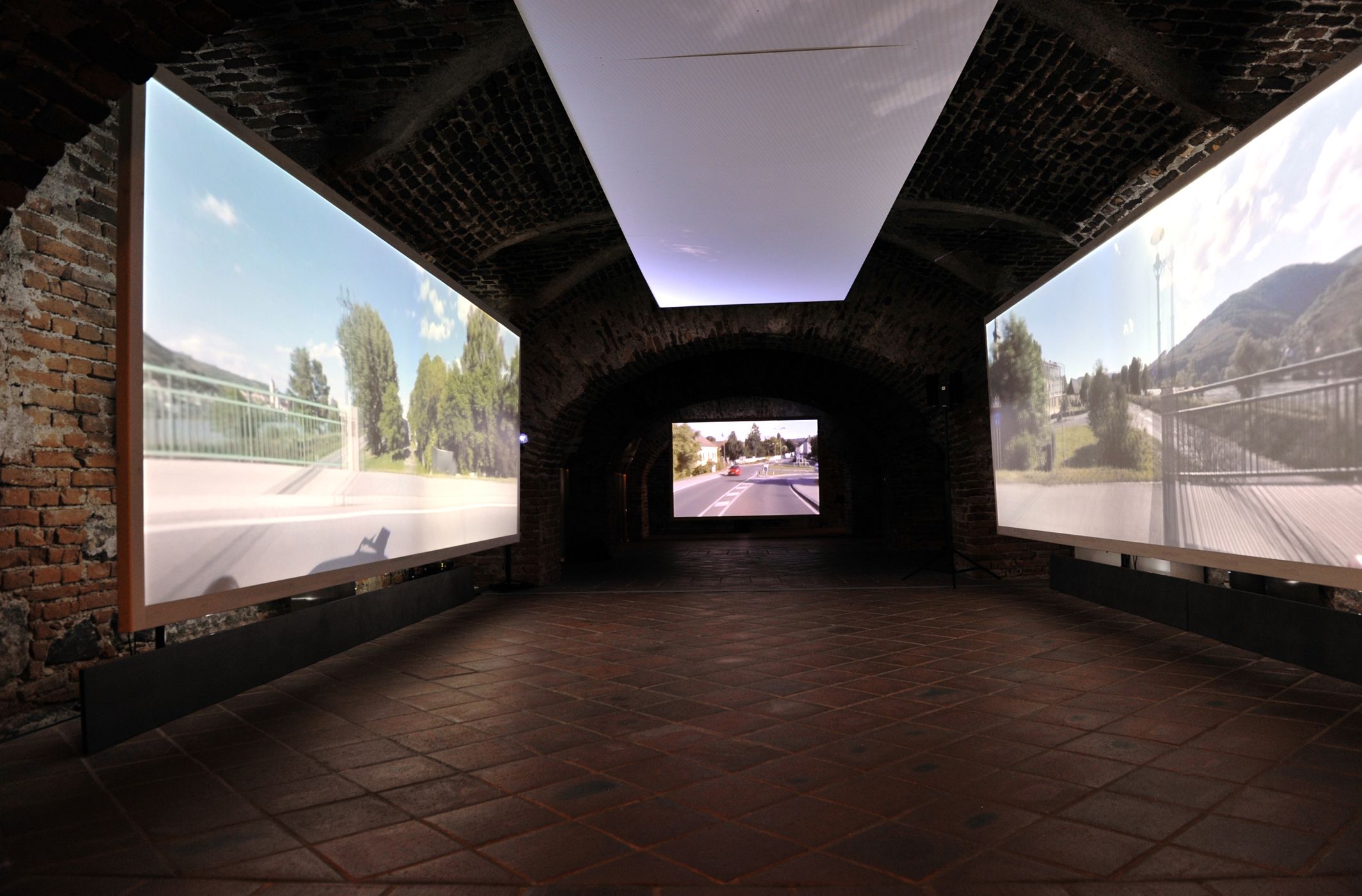 Die audiovisuelle Installation besteht aus einem 20-minütigen Film, der auf sechs Meter langen Leinwänden links, rechts und oberhalb der BesucherInnen projiziert wird. Die BesucherInnen können in ein visuelles und akustisches Abbild der Wirklichkeit eintauchen, die Volkmar Klien aus einem langsam fahrenden Auto heraus mit mehreren Kameras und Mikrofonen dokumentiert hat.