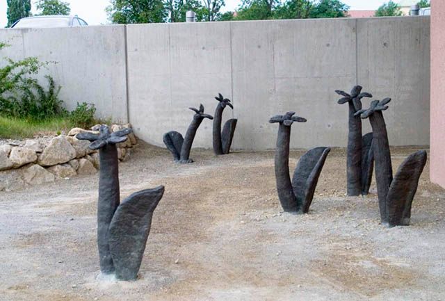 Seit den Achtzigerjahren kommen Blumen bei Thomas Stimm sowohl in kleineren Arbeiten aus Ton als auch in großen Bronzearbeiten vor. Dabei sind die Tonarbeiten mit den Blumen wie alle Arbeiten des Künstlers kleine Modellsituationen des Alltags, stille Geschichten, wo die Blume den klassischen Part von Erinnerung, klassischer Schönheit, von Wachstum und Warten behält. Zu einer seinen "Blumen" sagte der Künstler: "Die Blume ist bei mir so etwas wie eine Visualisierung von Entfaltung, ein Vorgang, der auch bei uns Menschen eine ungeheure Bedeutung hat. Wir verbringen oft ein ganzes Leben damit, dieses 'Sich-öffnen' zu lernen. Dieses unghemmte Öffnen einer so zarten Konstruktion wie der einer Blume und das darauffolgende farbige Blühen ist enorm..." (Thomas Stimm). Bei den Bronzearbeiten verliert sich die kleine Narration zugunsten großer Dimension und dem weit weniger flexiblen Material. Als fremde große Formen standen diese Blumen, die aus dem Wettbewerb gemeinsam mit anderen sechs Projekten ausgewählt wurden, im Skulpturengarten des NÖ Landesmuseums und wurden in Zuge von der Umgestaltung des Museumsgarten Ende 2016 in die Kunstsammlung übernommen.