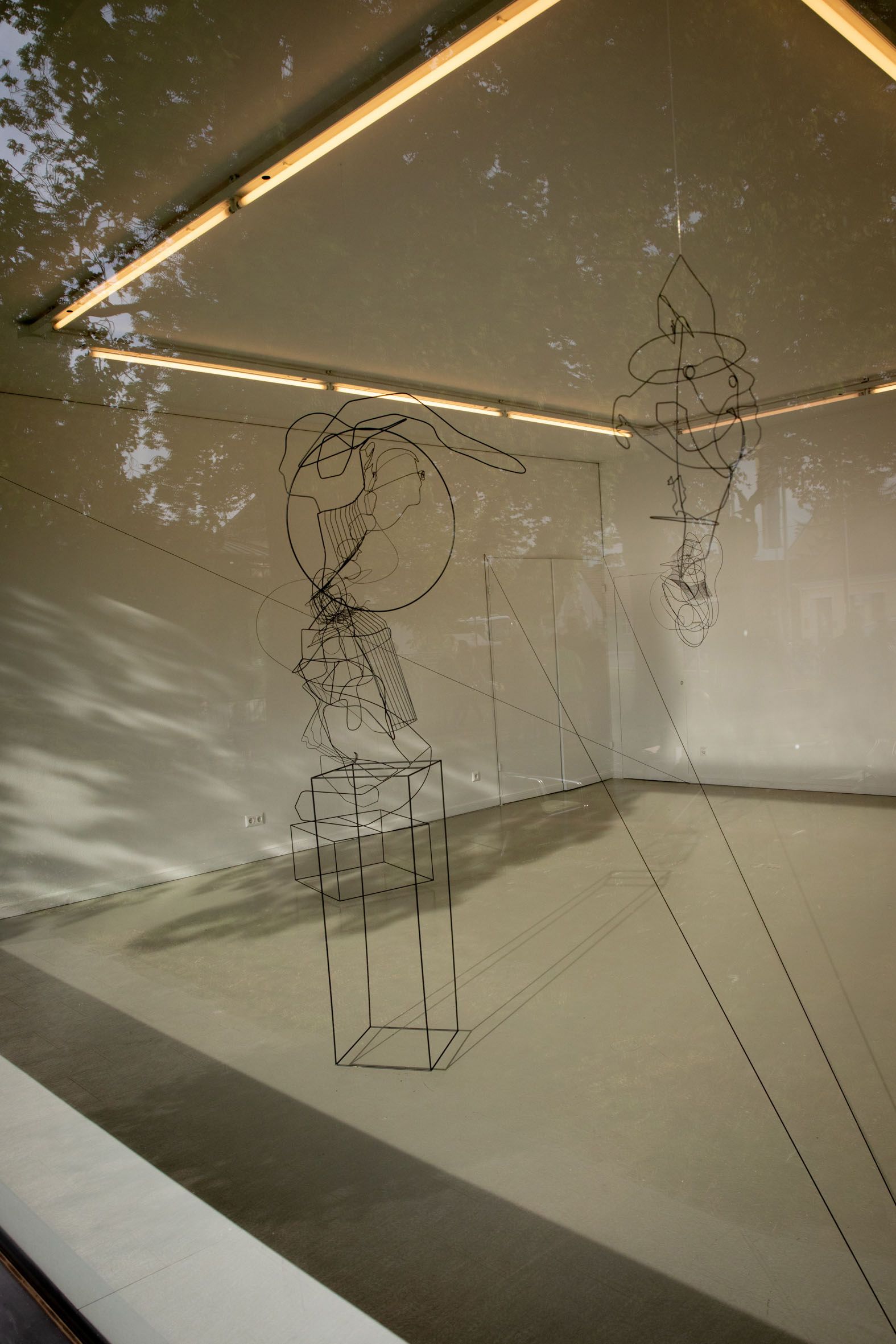 Der Kunstraum Weikendorf – der einsehbar, aber in der Regel nicht begehbar ist – ist für Constantin Lusers künstlerische Arbeitsweise Herausforderung und Möglichkeitsraum zugleich. Ausgehend von der Zeichnung hat der Künstler einen Weg gefunden, seinem scheinbar mühelosen Changieren zwischen maschineller und organischer, abstrakter