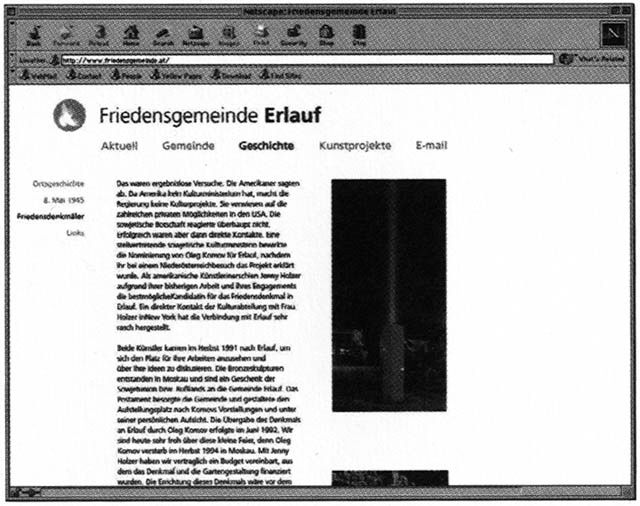 Das grafische Konzept für die Marktgemeinde Erlauf gibt ihr eine neue gestalterische Identität und trägt der historischen Bedeutung des Ortes als "Friedensgemeinde" mit hohem Wiedererkennungswert und gleichzeitiger hoher Zurückhaltung Rechnung. In diesem Sinn entwickelte Dieter Auracher kein neues Logo, sondern griff bewusst auf eine bereits etablierte Form, die Taube, zurück und entwickelte sie zu einem modularen Logo weiter. Grundform und Thema werden beibehalten, im Detail wird die Taube jedoch immer wieder verändert. Durch die formale Distanz zu den klassischen Darstellungen der Friedenstaube werden eine eigenständige Identität und ein Gegenwartsbezug hergestellt. Neben dem Logo entwarf der Grafiker Orientierungstafeln aus bedrucktem Acrylglas, eine Homepage und sämtliche Drucksorten. In der gekonnt konsequenten Anwendung von Typografie, die sich an einer sachlich-funktionalen Ästhetik der Moderne orientiert, zeigt sich die Verbindung von ästhetischer Wirkung mit einem Höchstmaß an Klarheit.