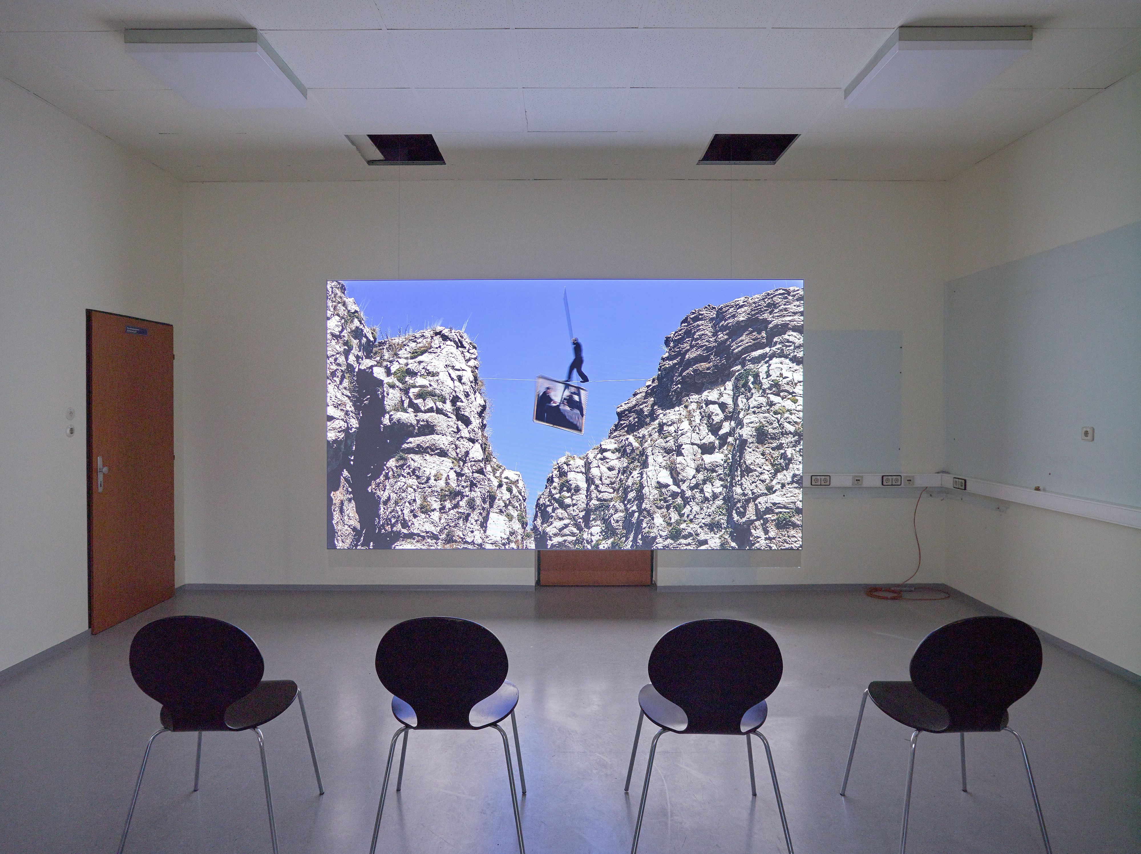 Zwischen zwei Felsspitzen bewegt sich ein Seiltänzer langsam voran, nach vorne, über die Schlucht. Aus der Ferne sieht es aus, als würde er schweben. Anstelle eines Spazierstocks oder einem Geländer werden Kunstwerke benutzt, um die Balance zu halten. Im Hochland des Kaukasus werden die Arbeiten von einer Seite zur anderen transportiert. Sie sind gerahmt, hintereinander gestapelt, wie in einem Lagerhaus ohne Wände. Die Videoarbeit Tightrope von Taus Makhacheva thematisiert durch Bezugnahme auf die alte dagestanische Tradition des Seiltanzens, den kulturellen Umbruch der Republik Dagestan sowie den der Kunstinstitutionen und Sammlungen vor Ort. Auch am Semmering finden sich ähnliche Felsformationen. Vorsprünge aus Stein. Die Kulisse tritt auf diese Weise in einen inhaltlichen Dialog mit dem Seiltänzer, der sich in Gedanken zwischen den Steinvorsprüngen weiterbewegt, den Rahmen des Videos verlässt. Was könnte er hier balancieren?