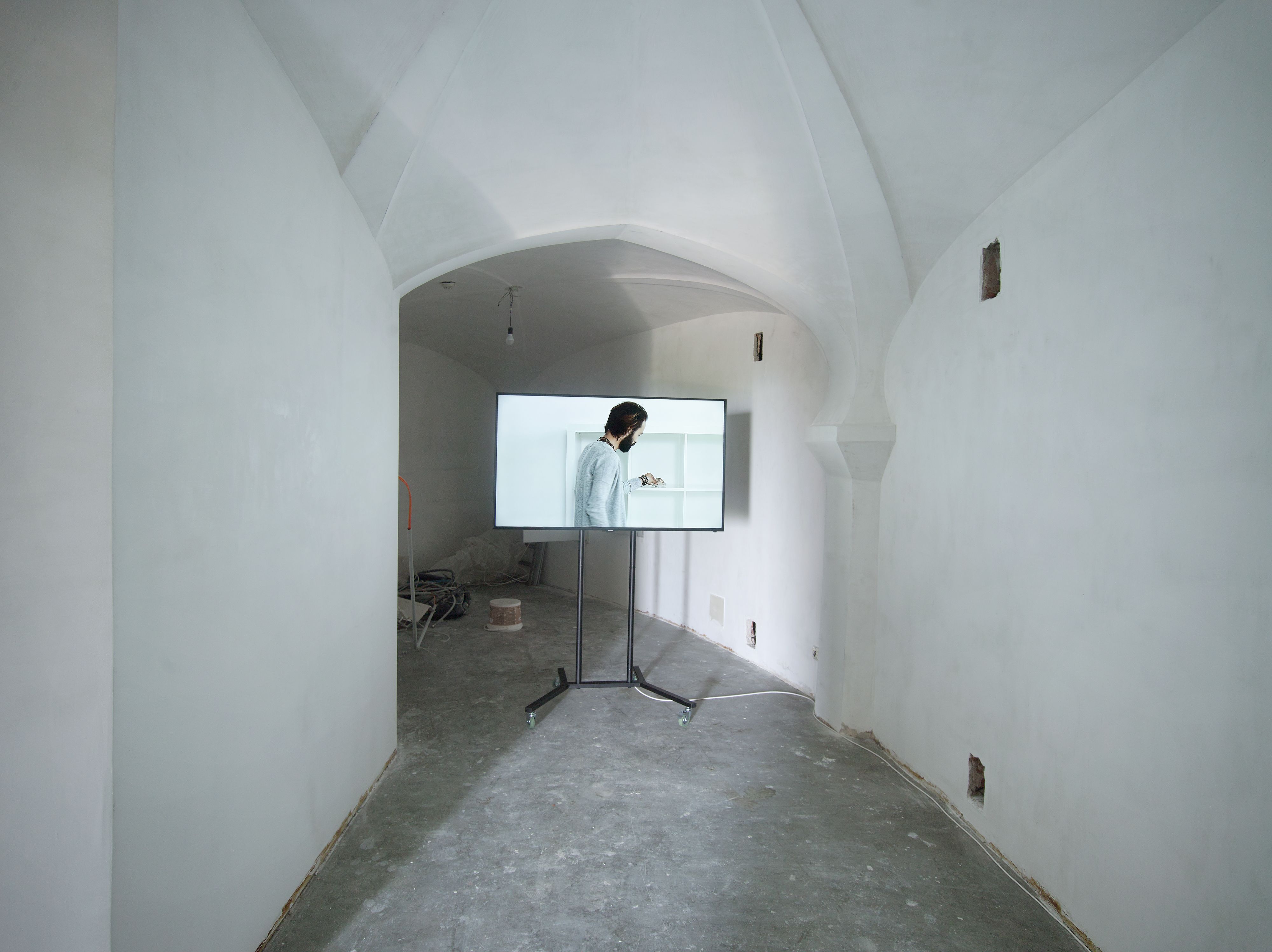 Irgendwann einmal waren die Räume noch belebt, die Gänge gefüllt, von Etikette bestimmt. In Form eines Video-Essays erkundet Anna Daučíková das inzwischen einsam gewordene Südbahnhotel. Sie spinnt diese vergangenen Geschichten als gegenwärtige Fantasien einer »queeren Invasion« weiter. Diese beleben die verstummten Räume wieder. Die Körper sind fluide geworden, genauso wie die Zimmer, durch die sie sich bewegen. Die Konstanten von binären Geschlechtern beginnen zu kippen, schaffen eine durchlässige Struktur, die mit dem herrschenden Schweigen bricht, eine andere Sprache zulässt. Altbekannte Raumwahrnehmungen, Verhaltensweisen und Normen werden zurückgelassen. Die neuen Gäste thematisieren das progressive Denken vergangener Bilder und Tage durch den eigenen Körper: Motive des Sports, des polynesischen Männertanzes und Ikonen der Kunstgeschichte, heidnische Mythen oder Ashtanga Yoga werden vermengt und performt. Die alten Bilder formen sich neu und werden durchlässig.