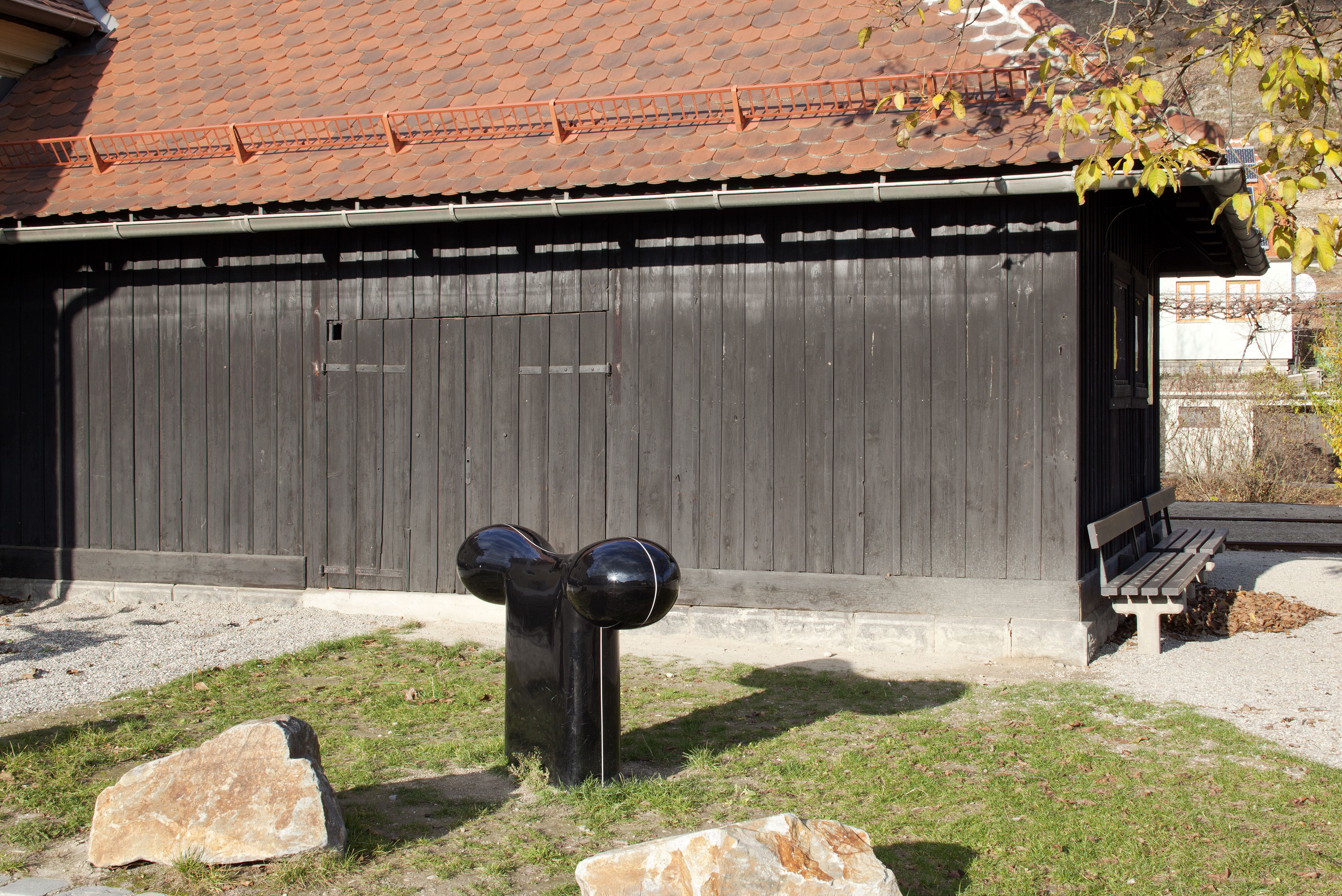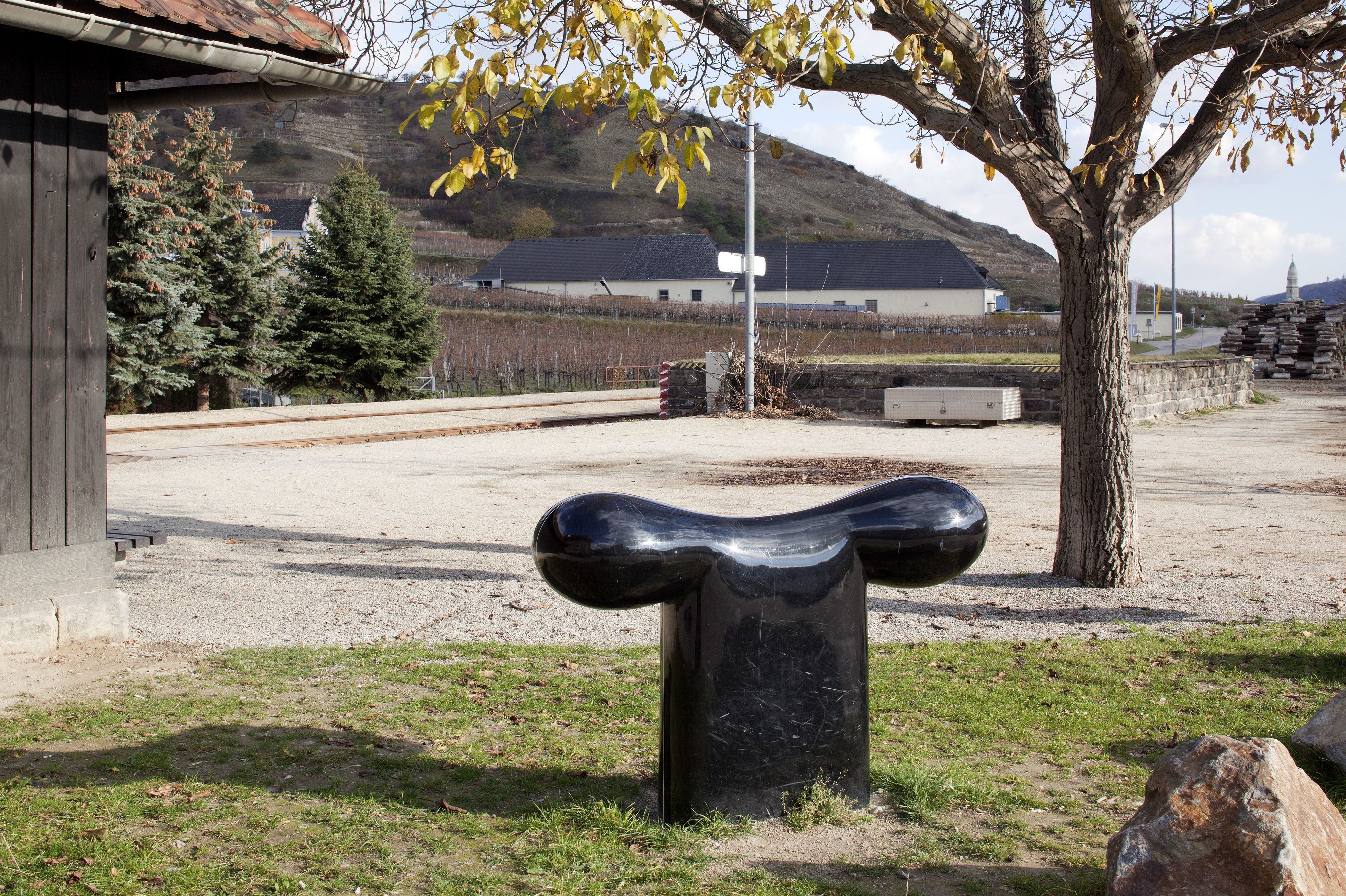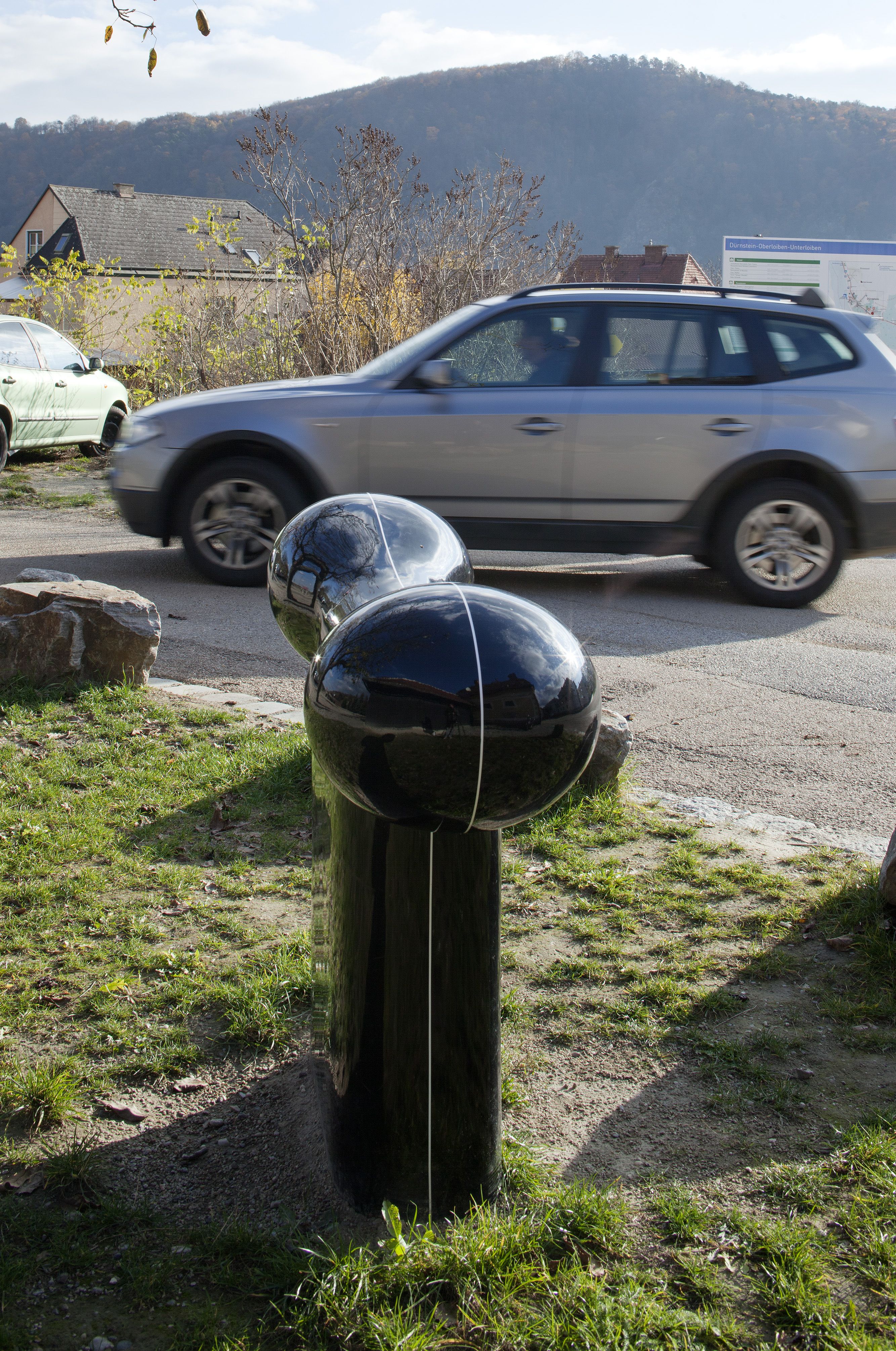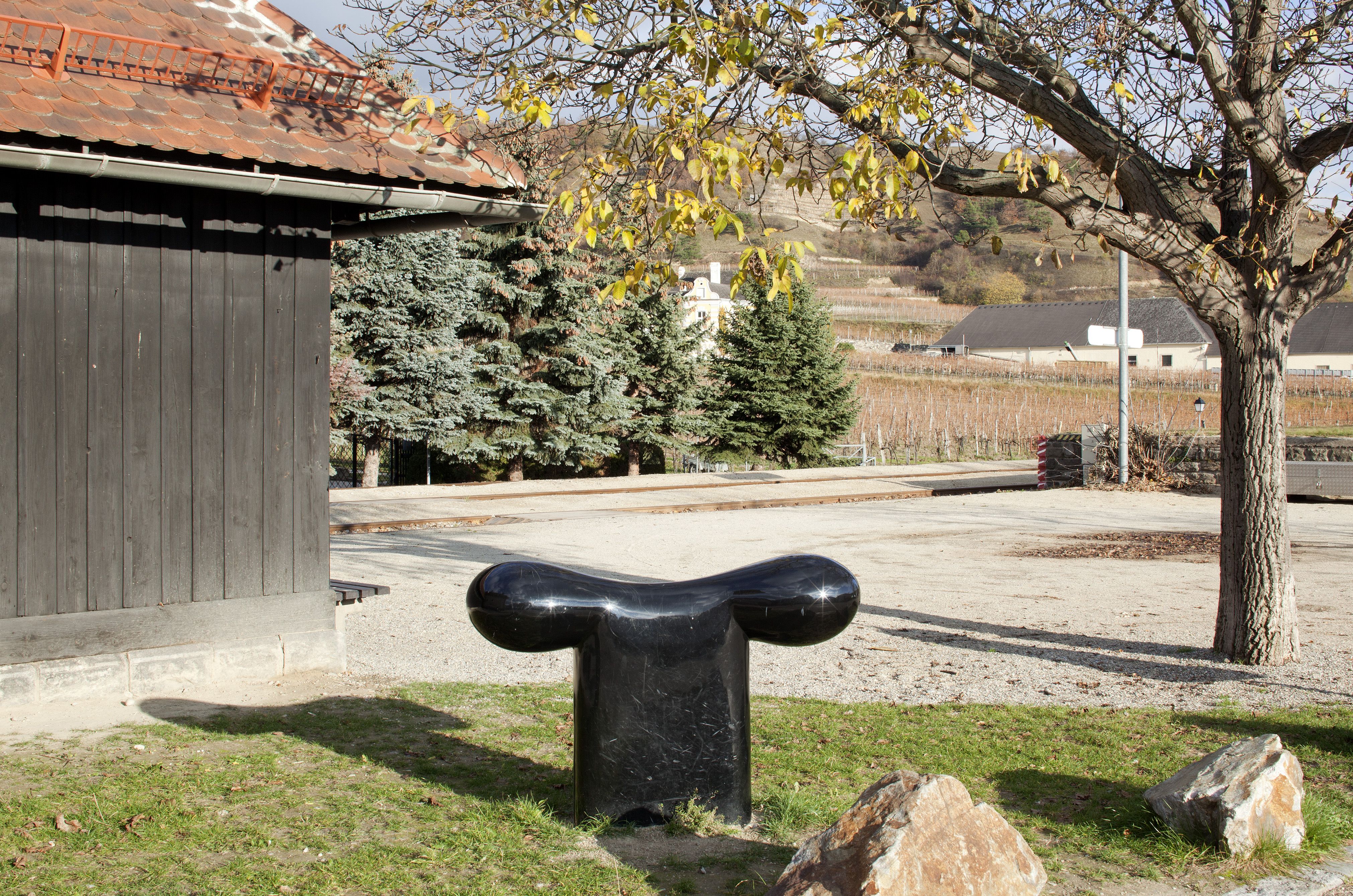 Der Bahnhof des geschichtsträchtigen Ortes Dürnstein hat ein neues Wahrzeichen, eine Skulptur der kroatischen Künstlerin ANA Elizabet. Das hüfthohe Objekt aus schwarz lackiertem Metall präsentiert sich zunächst als ein Rätsel, wie eine Gestalt aus fremden Welten, deren polymorphe Form weder der Natur noch dem Gegenständlichen zuzuordnen ist. Trotzdem ist da eine Anmutung, als ob es eine Bedeutung, ja beinahe eine Art Wesen hätte, das wir kennen, aber nicht benennen können.