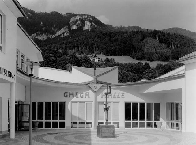 Franz Katzgarber für den Vorplatz der Schule eine abstrakte Skulptur geschaffen, deren Form von den menschlichen Proportionen abgeleitet ist. Das Emporstreben symbolisiert die Lebenskraft des Menschen, die Schnittflächen seine Verletzbarkeit.