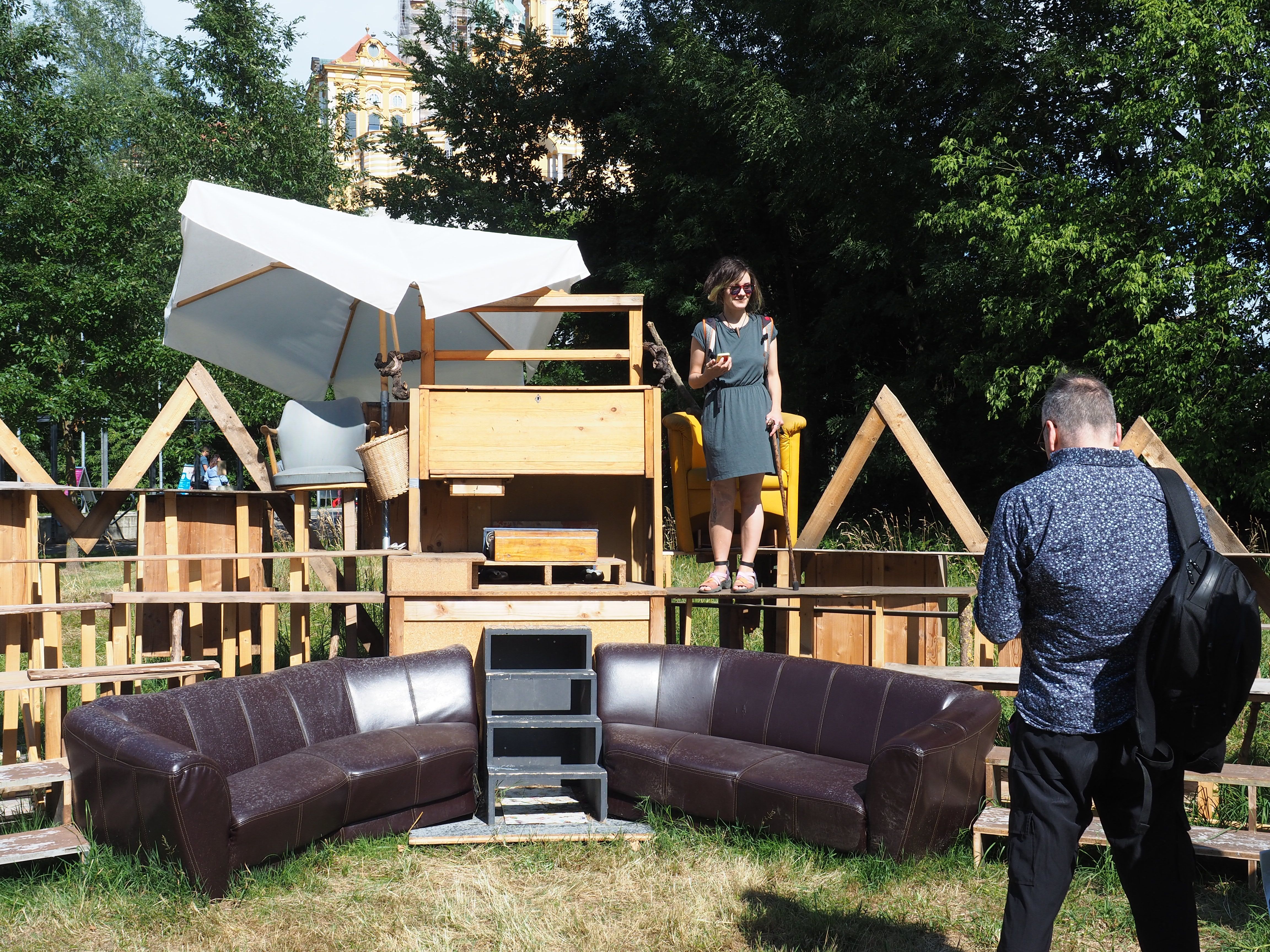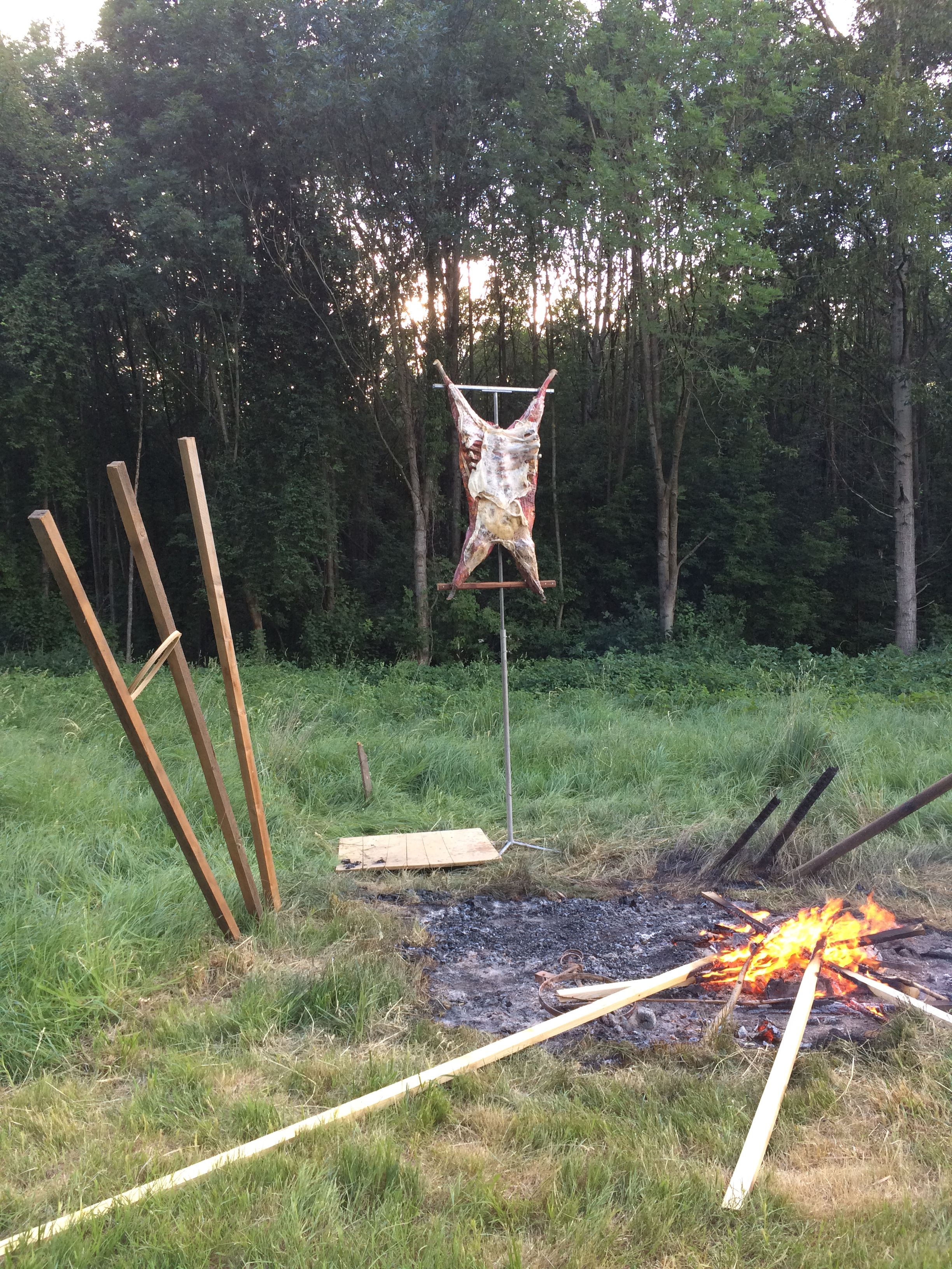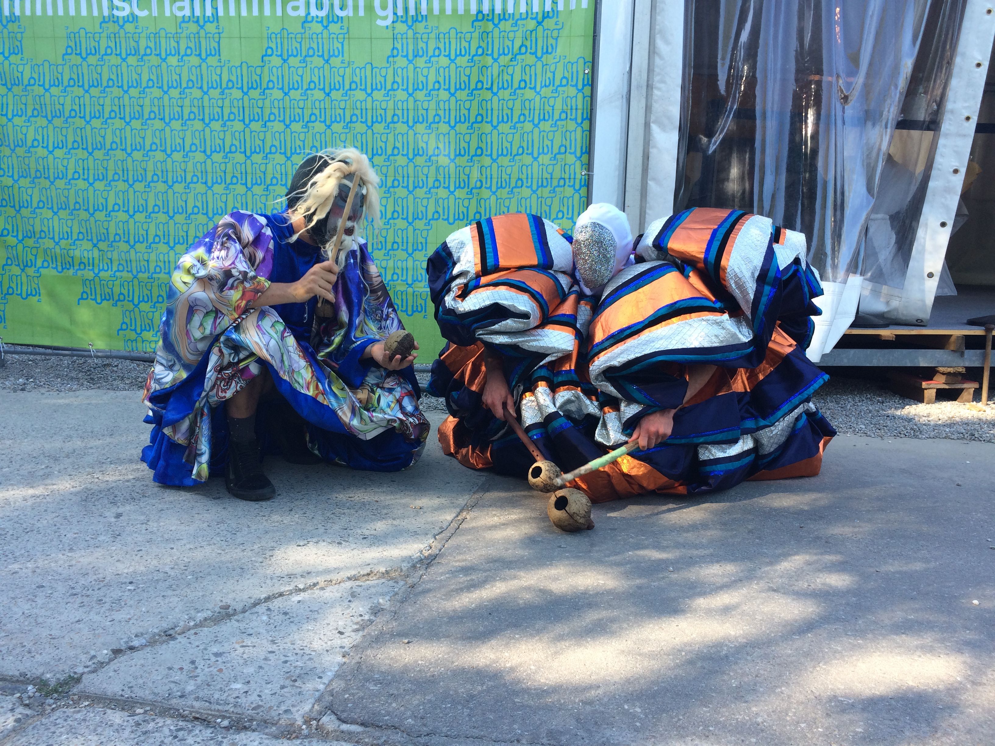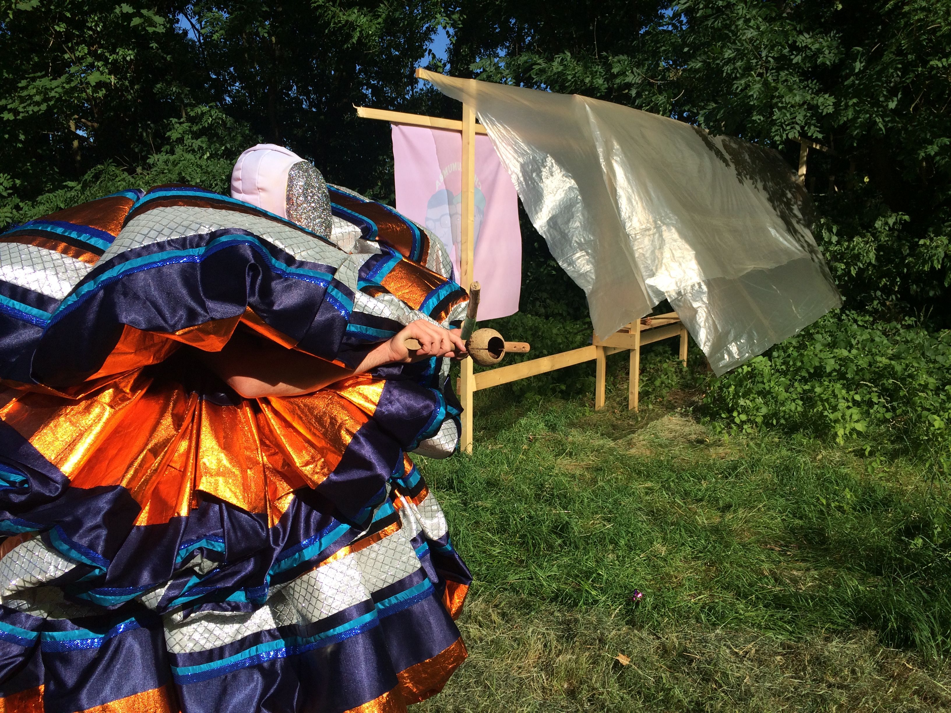 Vor der offiziellen Eröffnung wurden vom 10. bis zum 15. Juni zwei verschieden gestaltete Flyer an die Bevölkerung von Melk verteilt. In einer futuristischen science-fiction-artigen Sprache verfasst kündigt der erste das 100-jährige Jubiläum der Ausrottung der Hunde und Katzen aus den großen Städten an. Der zweite lud die Gemeinschaft von Melk zu einem Eröffnungsfest und der performativen Einweihung eines öffentlichen Grillplatzes ein, der von den Künstlerinnen in Form einer skulpturalen Installation errichtet wurde. Die Künstlerin Kadija de Paula verbindet in ihrer Arbeit Text, Performance und Essen, um gängige Vorstellungen von Selbst-Organisation und ökonomischen Praktiken sowie die Inhumanität unserer Lebensmittelindustrie zu hinterfragen. Chico Togni baut aus gefundenen Materialien Strukturen und Gegenstände, die "Events" erzeugen und sozialen Austausch erfahrbar machen sollen. Zusammen schaffen sie Situationen und Happenings, die den Wert von Ressourcen udn tradierten sozialen Praktiken hinterfragen.
