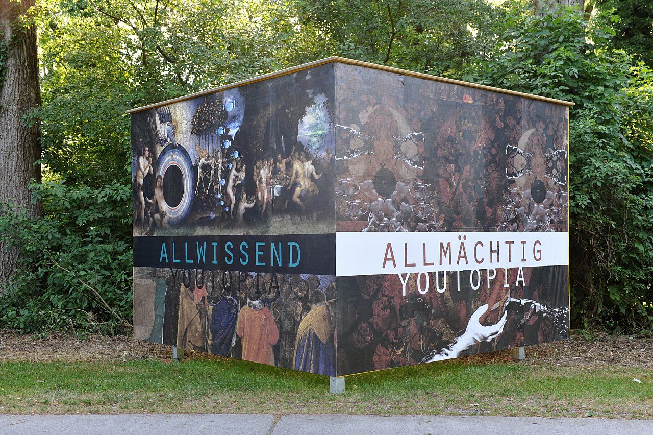 Youtopia stellt das Konzept der Utopie in Zeiten von Hochtechnologie und im Bewusstsein der Grenzen des menschlichen Körpers in Frage. Eine omnipräsente Cyber-Kultur ersetzt den Glauben an einen Gott, an ein Leben nach dem Tod. Von Apple bis Oracle wird uns in Analogie von Technik und Religion Allwissenheit, Allmacht und Omnipräsenz vorgegaukelt. Dieser neue Gott, entwickelt vom Menschen, wirft seine Augen mittels vielzähliger Überwachungsmechanismen auf uns, ohne dass wir es bemerken. Es gibt keine Rassen, kein Geschlecht, keine Vorurteile mehr, den der neue Gott sieht jeden als kleinen Teil einer Maschine, einer ungeheuren Ansammlung aus Daten. Die Seele wird Messwert und der Neue Gott wartet auf den nächsten Click.