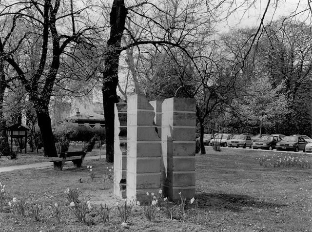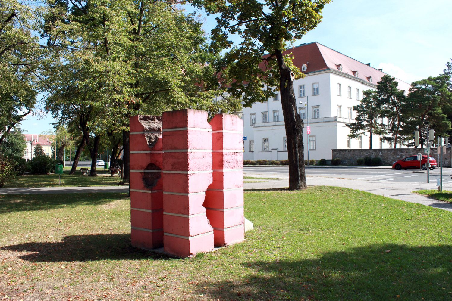 Die vier Säulen sind Zeichen für Zerstörung und Unperfektion, vor allem aber sind sie Mahnmale, die auf den zeitgleichen Krieg in Jugoslawien verweisen. Die Skulpturengruppe ergänzt die vier Säulen von Ebenfurth.
