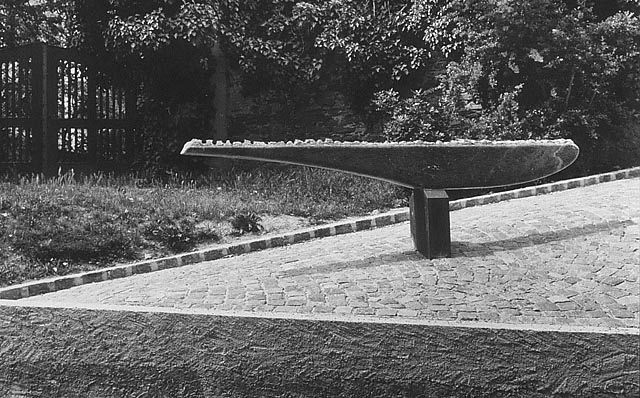 Alfred Hagers Steinskulptur beim Piartstenpark besteht aus bearbeitetem Serpentin, der mit einer Länge von 270 cm in 35 cm Höhe teilweise über dem Boden zu schweben scheint. So erzeugt der Künstler eine Dialektik von Schwere und Geschlossenheit des Steines und dessen Entmaterialisierung zugleich.