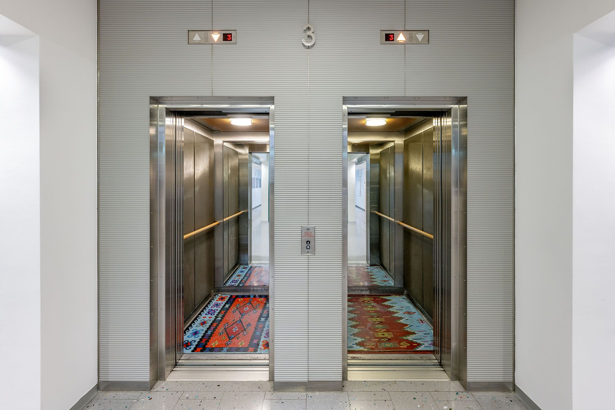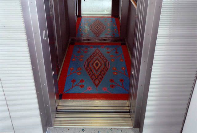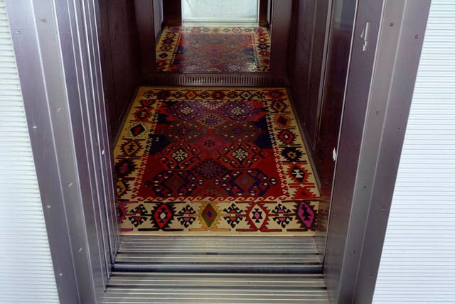 Hilde Fuchs hat auf den Böden der Lifte der beiden Häuser, die im Regierungsviertel St. Pölten die Abteilung Kultur und Wissenschaft beherbergen, vier Bildteppiche aus Plastik als "begehbare Originale der Malerei" (Fuchs) installiert. Die Bildornamente sind arabischen Teppichmustern nachempfunden.