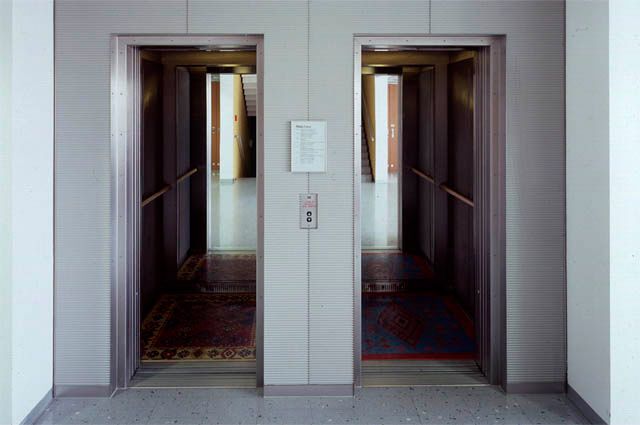 Die Arbeit ist als Reaktion auf die spezielle räumliche Situation von Liften konzipiert. Vier Bildteppiche wurden in den Liften der Abteilung Kultur und Wissenschaft (Haus 1 und 2) im Regierungsviertel installiert. Das Wort „ELEMENTS“ im Titel definiert den Lift als bauliches Grundelement – eine agile Zelle im sonst starren Baukörper. Das Erlebnis von Raum und Zeit findet hier im Rahmen äußerster Reduktion statt, was zur Konzentration auf die eigene Person (einziges signifikantes Einrichtungsobjekt ist daher oft ein Spiegel) oder, bei gleichzeitiger Benutzung durch mehrere Personen, zum unmittelbaren Erlebnis von bedrängter persönlicher Aura führt. Um die verschiedenen Komponenten dieser Form von „Selbsterfahrung“ ins Blickfeld zu rücken und sie als spezifische Qualität zu nützen, findet eine Objektintervention mittels sogenannter „PLASTICS“ statt. Raum- und Materialsprache formulieren dabei eine Verschiebung von Sehgewohnheiten und Wertvorstellungen: Plastikteppiche werden begehbare Originale der Malerei, während man im „sagenhaften Schwebezustand“ zwischen kulturellen Ordnungssystemen verschiedene Höhen und Tiefen eigener Seinszustände erfährt. Unterschiedliche Motive messen den Grad der Identifizierung.