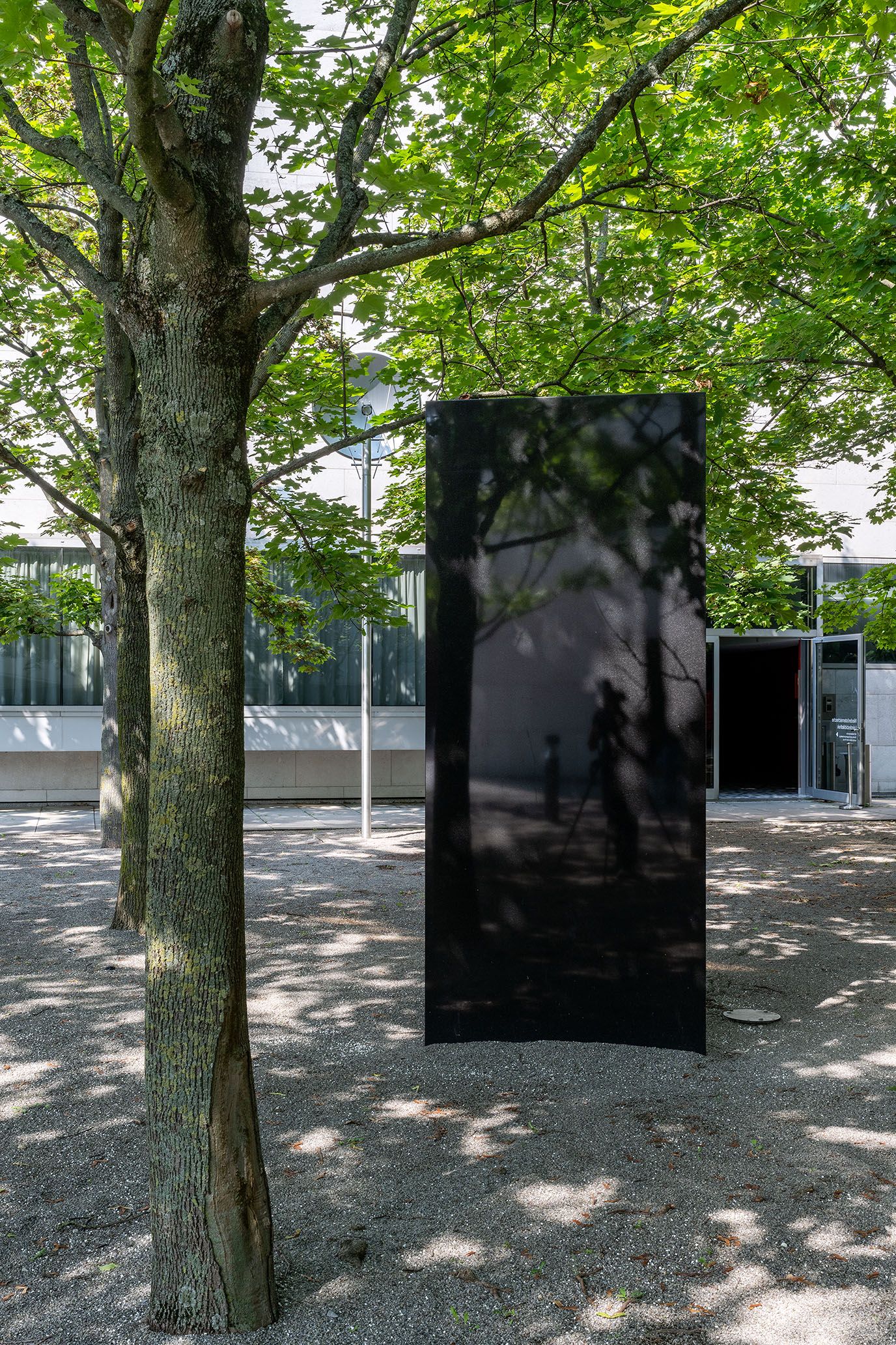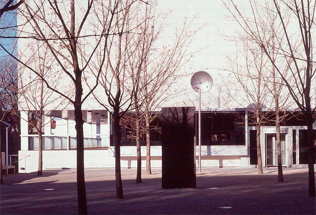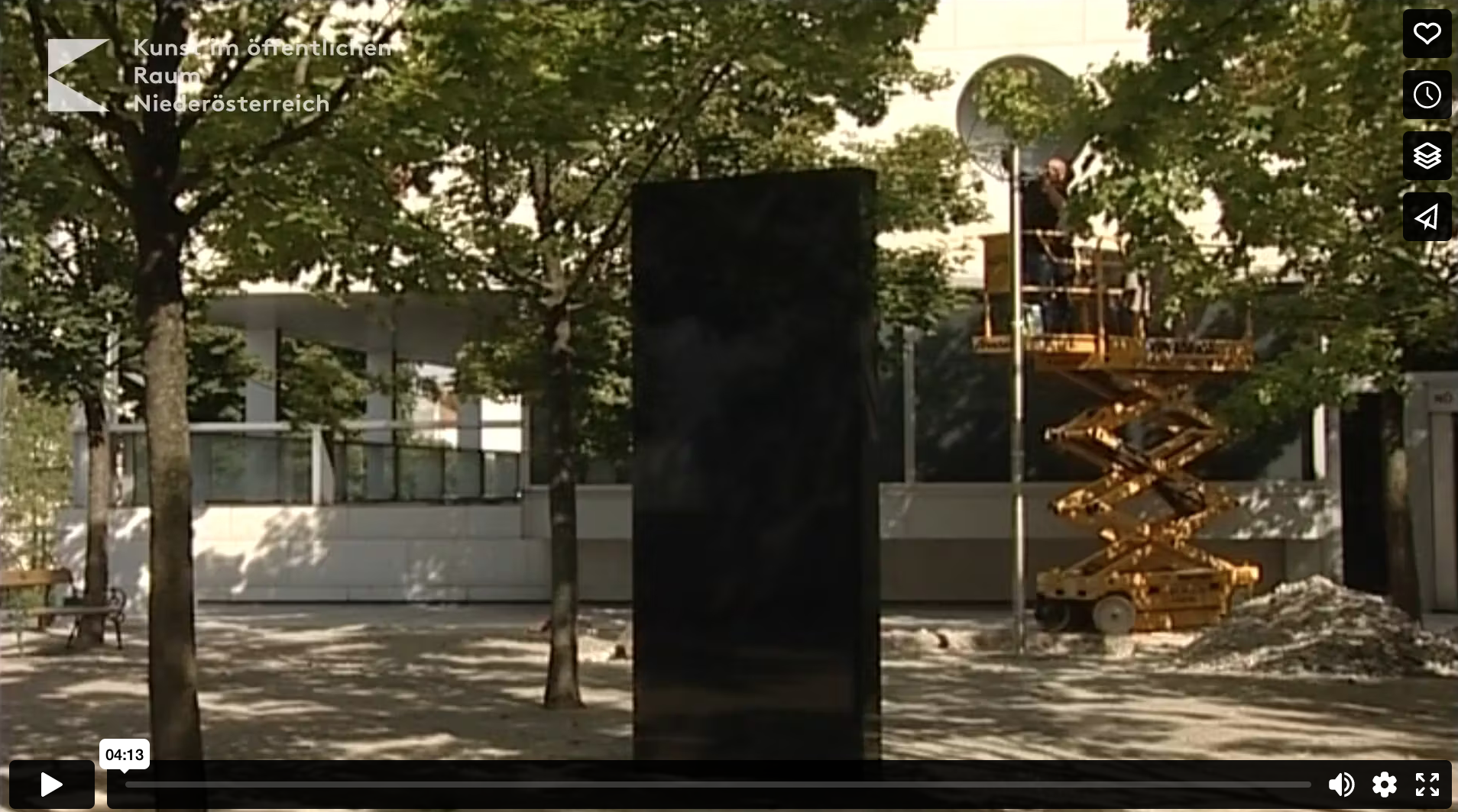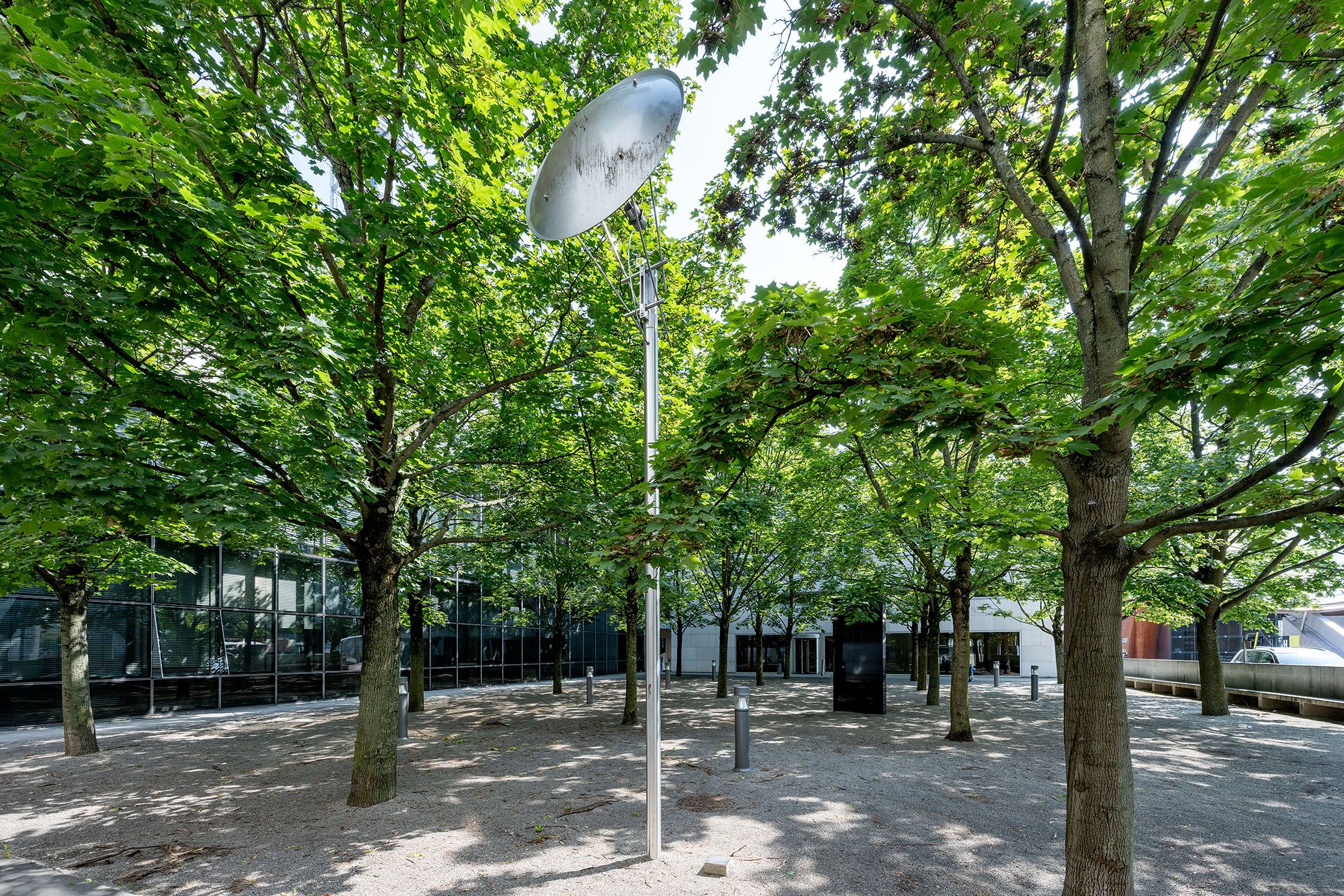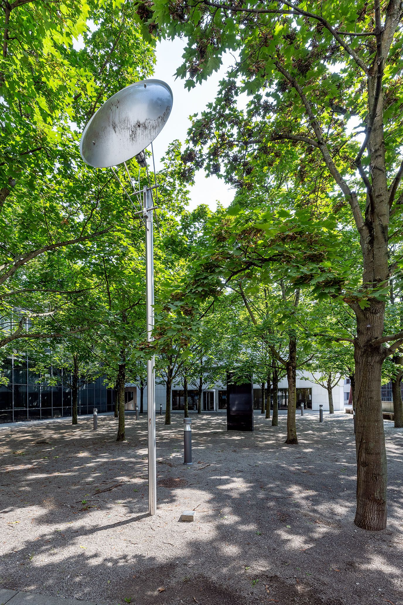 "Klangstein" heißt die Installation, in der im Kulturbezirk St. Pölten zwischen Landesbibliothek und –archiv ein Klangstrahl über eine Parabolschale auf einen schwarzen Granitstein projiziert wird. Bewegt man sich in den Bereich des reflektierten Tonstrahles, wird ein Wasserrauschen vernehmbar.