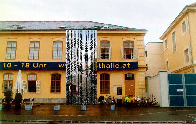 Am Donauufer stand die abstrakte Metallskulptur der Künstlerin ANA. Die zunächst amorph wirkende Form war an die Gestalt eines Thrones, als ein Ursymbol für Macht, aber auch für Verantwortung, angelehnt. Mit ihrer glatt lackierten Oberfläche spielte die Skulptur auf aktuelle Entsprechungen von Machtsymbolen an, denen der Begriff von Verantwortung nicht mehr eingeschrieben ist. Wie ein Fetisch erzählte sie mit ihren runden Backen mit der glänzenden schwarzen Oberfläche und dem feinen weißen Streifen von der Macht, die schöne Körper und die Vorstellung von Sexualität oder auch schnelle Autos auf die Menschen ausüben.