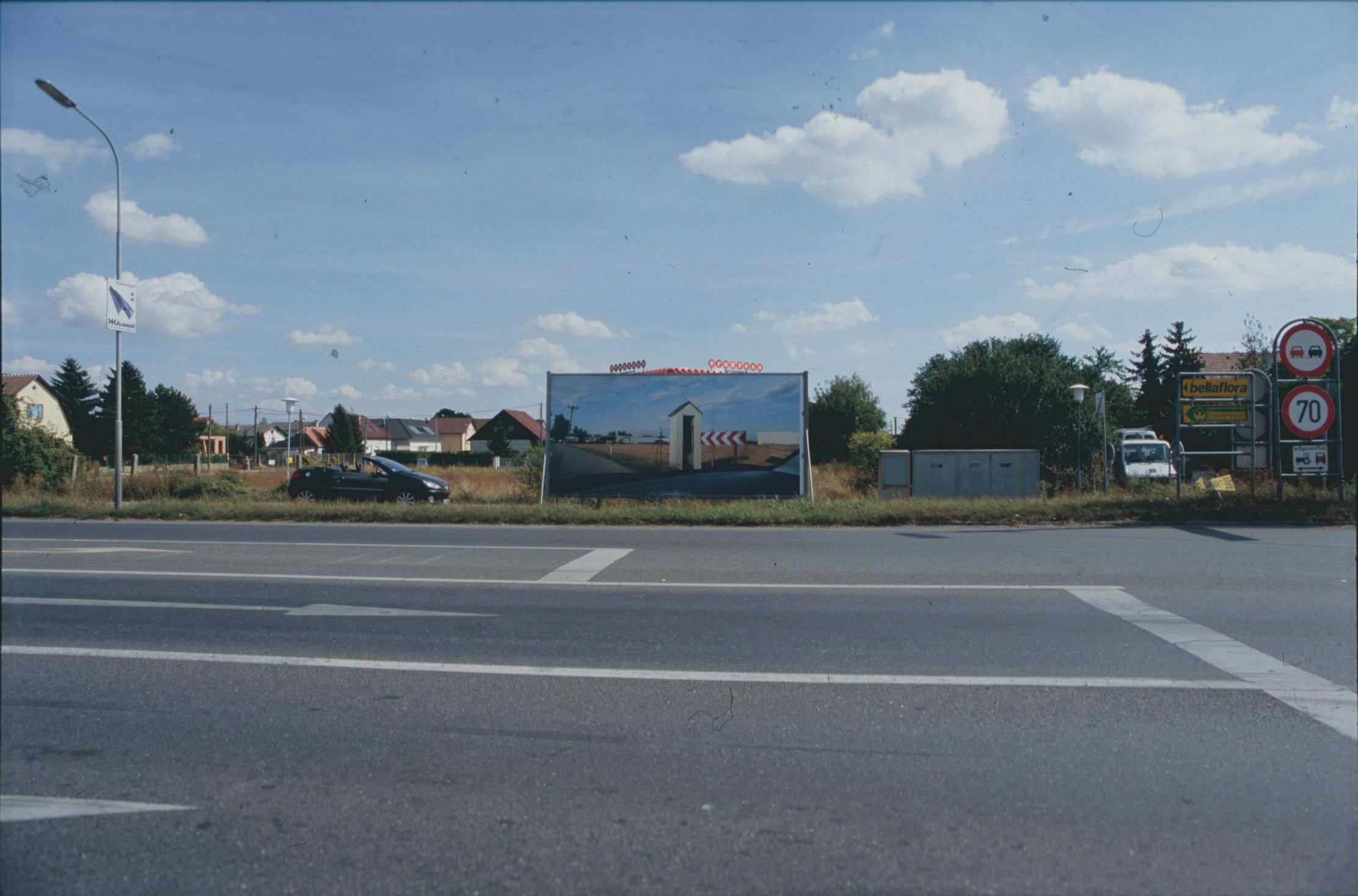 S. N.: Die Gemeinde Gerasdorf hat sich ja sehr kurzfristig im Juni 2004 dazu entschlossen, anlässlich ihres 50-jährigen Bestehens im Oktober 2004 in die geplanten Festveranstaltungen auch künstlerische Beiträge mit einzubeziehen. Mein erster Vorschlag, einen Fotowettbewerb zu veranstalten bzw. sich auf Fotografie zu konzentrieren, stieß dann insofern auf Interesse, als seitens der Gemeinde bereits an einen Fotowettbewerb gedacht worden war. Angesichts der ausufernden Vorstellungen und Projekte, die neben einer Ausstellung zu Kultur, Geschichte und Raumplanung diverse Festvorträge und Feiern sowie ein Literatursymposium beinhalteten und teilweise nichts oder wenig mit dem Ort zu tun hatten, waren deine fotografischen Interventionen (und auch der Fotowettbewerb) sehr konzentriert auf den Ort bezogen. Du selbst hast dich ja auch sehr kurzfristig bereit erklärt mitzumachen und von allem Anfang an den Balanceakt zwischen der Gemeinde, ihren Vertretern und uns miterlebt. Wie hast du die spezielle Situation in Gerasdorf wahrgenommen?