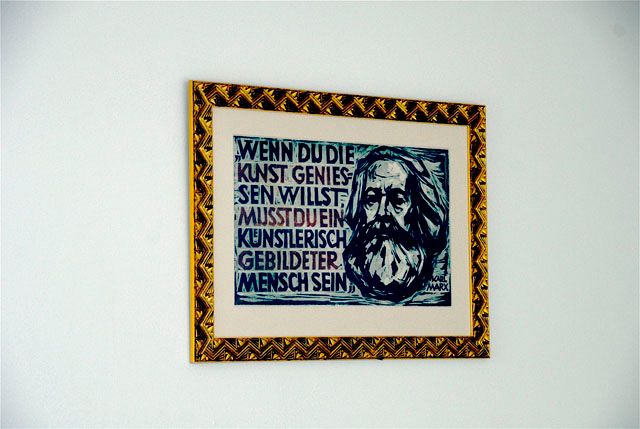 Zum Zweiten spricht das Zitat von Marx, und damit die Arbeit Hahns, das Problem der häufig fehlenden Akzeptanz für Kunst, besonders im öffentlichen Raum, an. Marx spricht nicht etwa von Verständnis, sondern von Genuss, der dem nicht künstlerisch Gebildeten vorenthalten bliebe. Das erklärt wohl treffend die Enttäuschung, oftmals nicht teilzuhaben an diesem "Genuss", an der Kunst. Die vorhandene Sehnsucht danach wird damit aber ebenso deutlich bewiesen, was Mona Hahn mit ihrer Arbeit unterstreicht.
