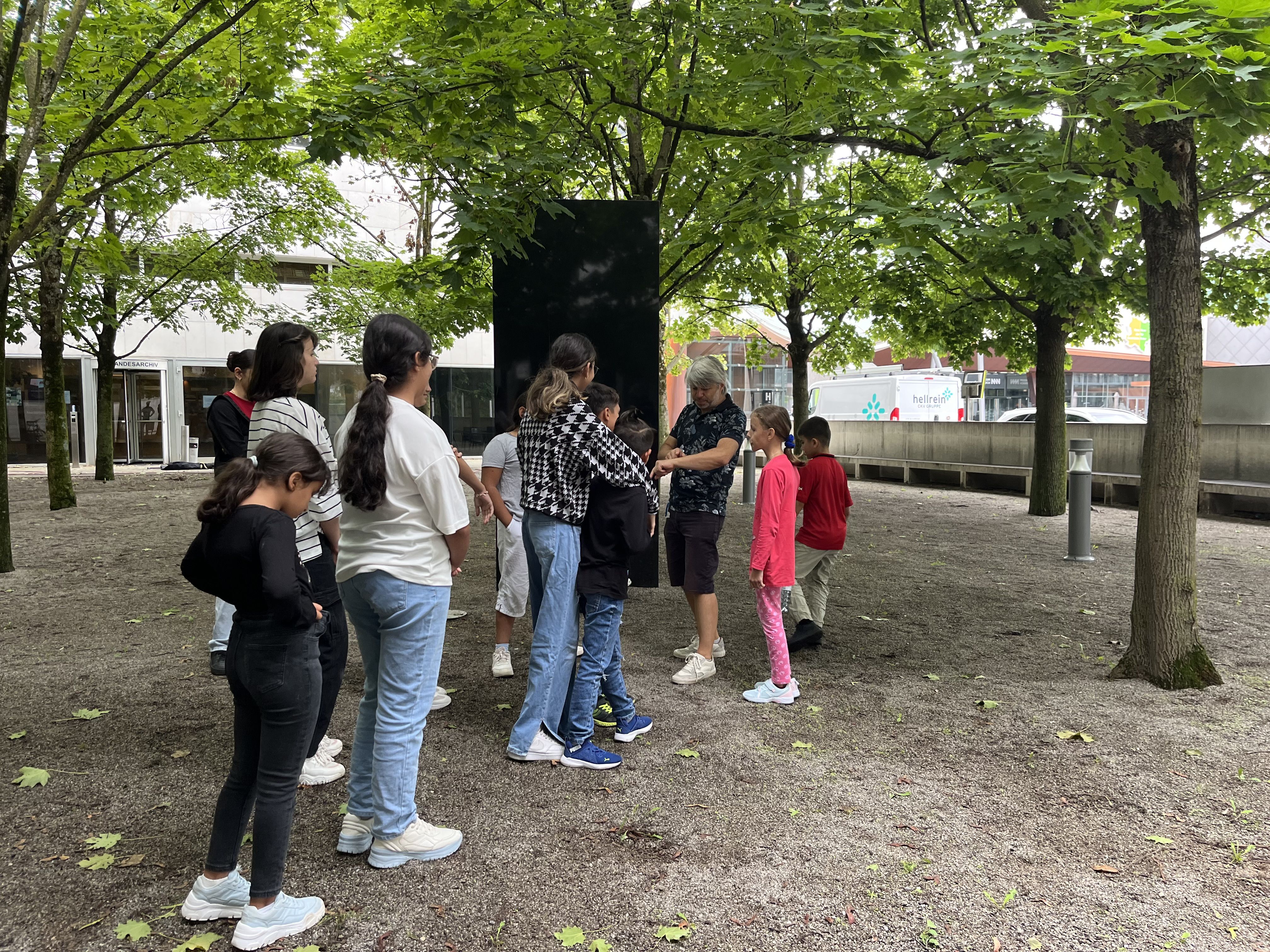 Workshop zur Installation Klangstein von Bernhard Leitner mit Kindern des Caritas Lerncafé St. Pölten