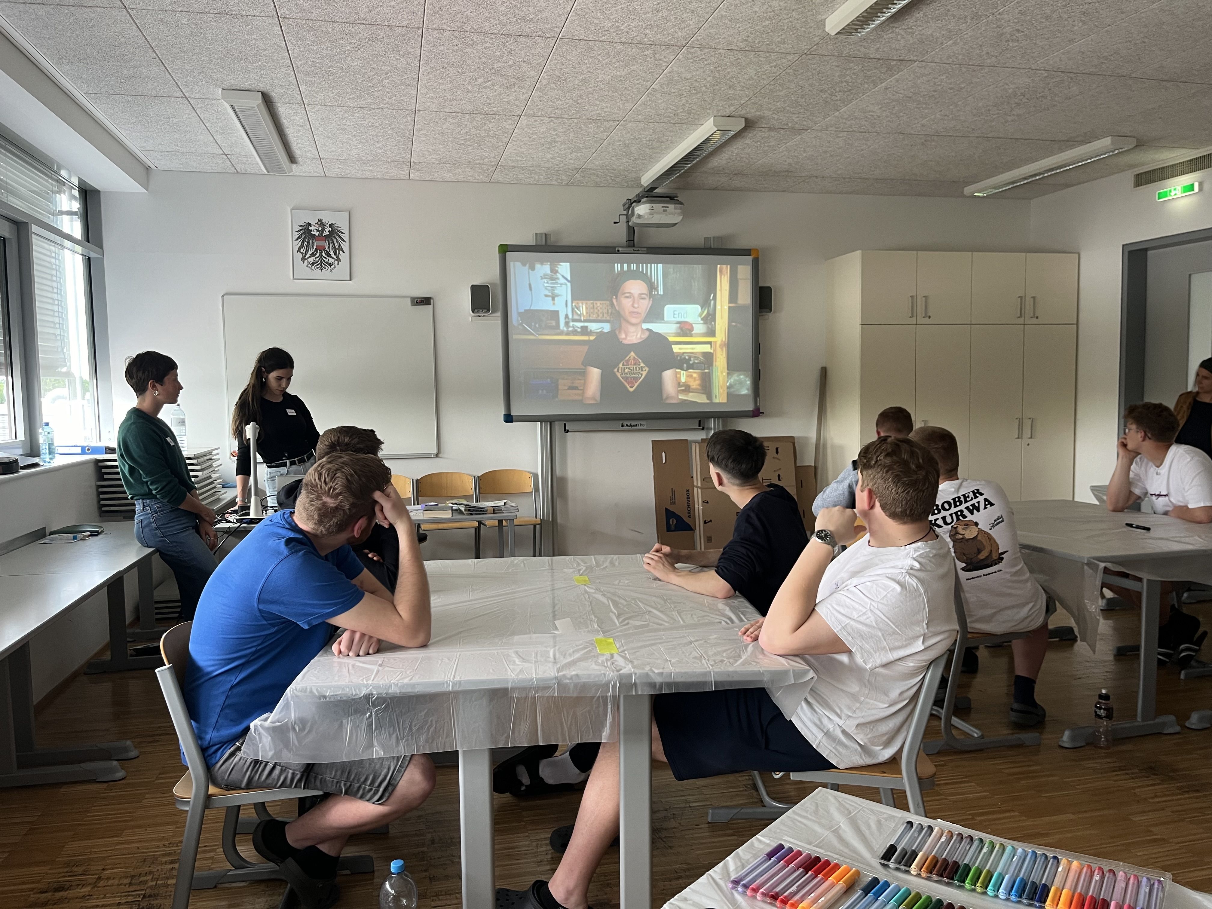 Bezugnehmend auf Anna Vasofs Kunstwerk „Treffpunkt Werkzeugkasten“ fand am 21. Mai auch ein Workshop mit einer Schülergruppe der Landesberufsschule Mistelbach statt. Vasofs Idee aufgreifend, dass der Werkzeugkasten erst durch aktive Beteiligung und die Ideen der Nutzer*innen lebendig wird, war die Aufgabenstellung an die Schüler gesellschaftsrelevante Probleme zu identifizieren und Lösungsideen dafür zu entwickeln.