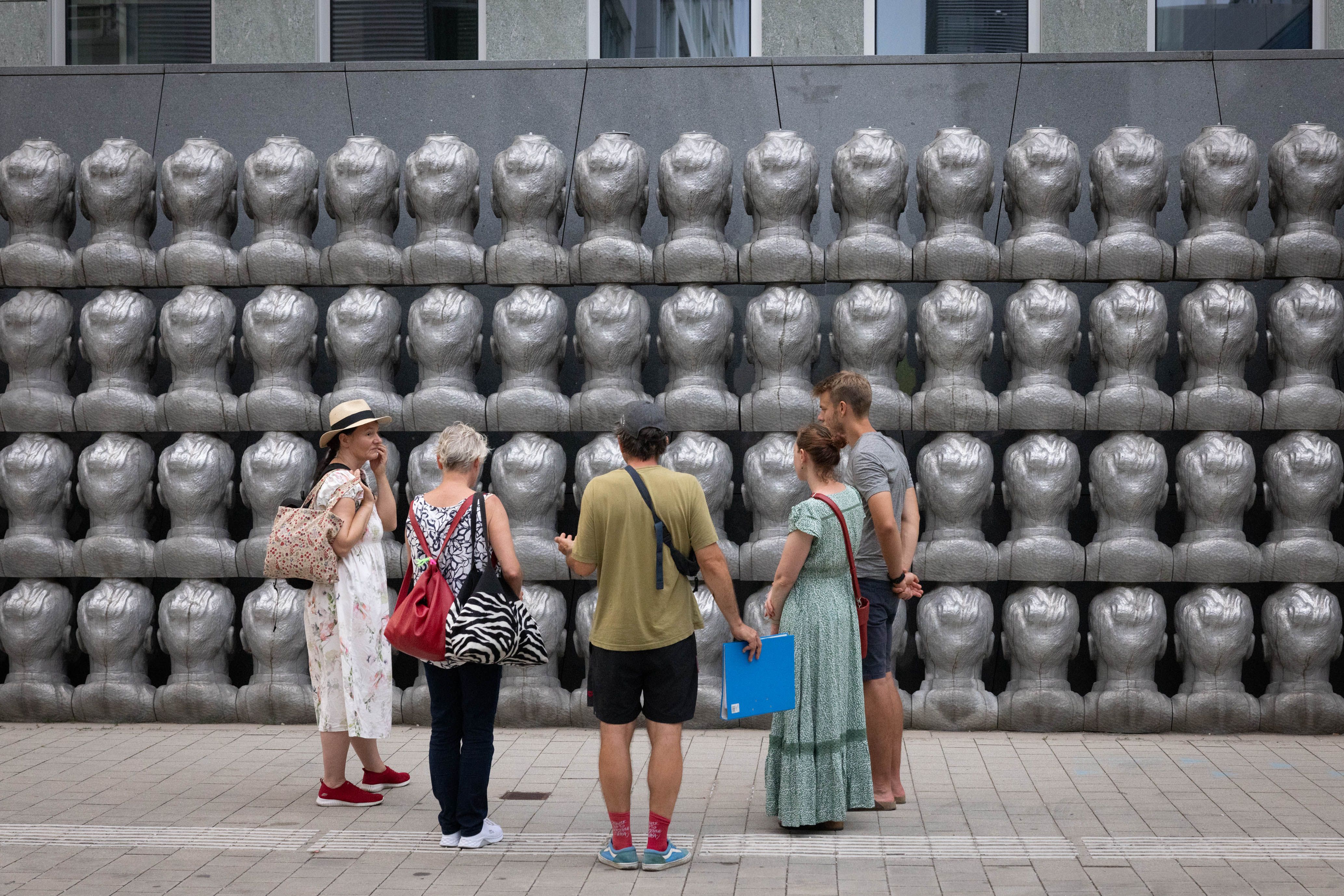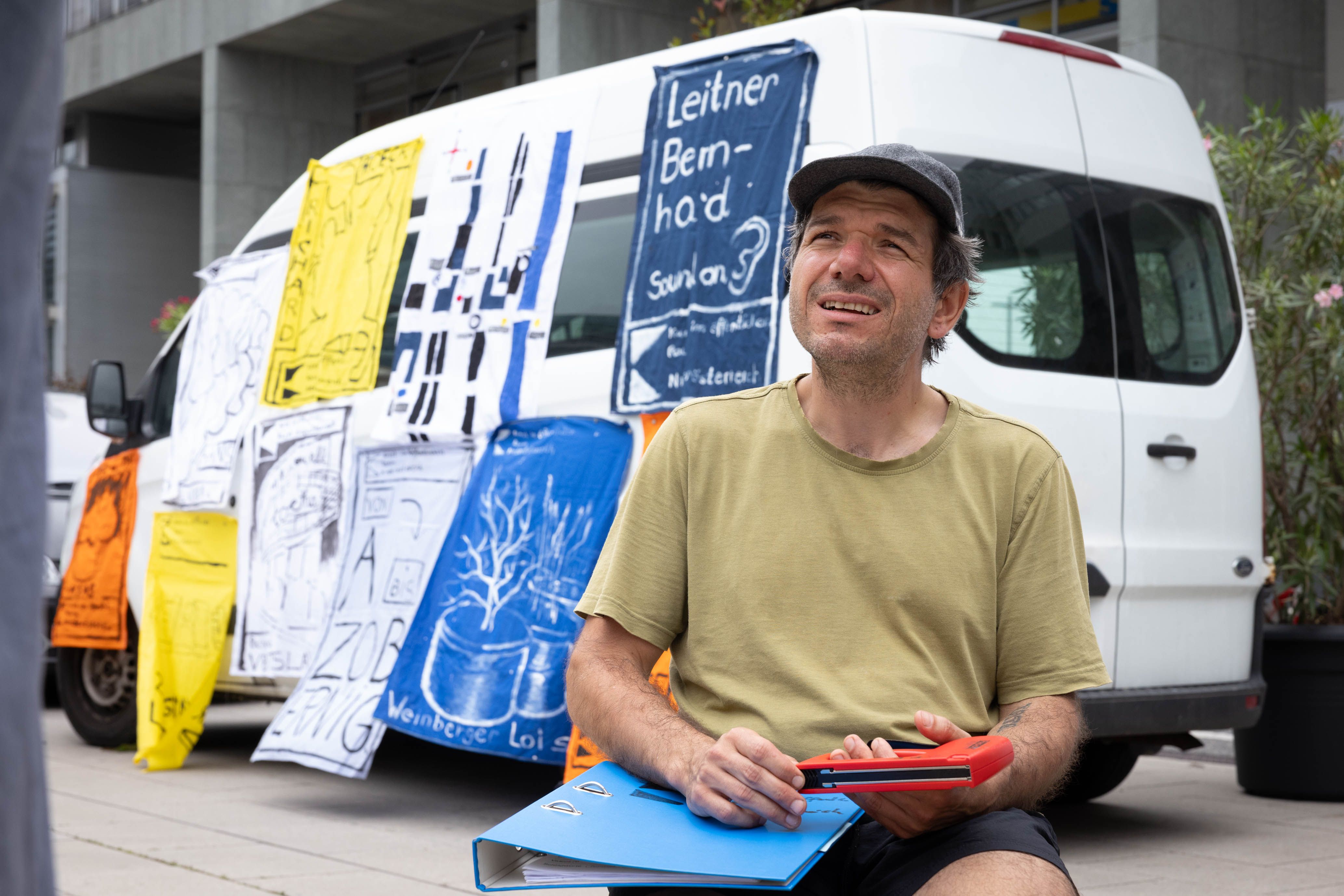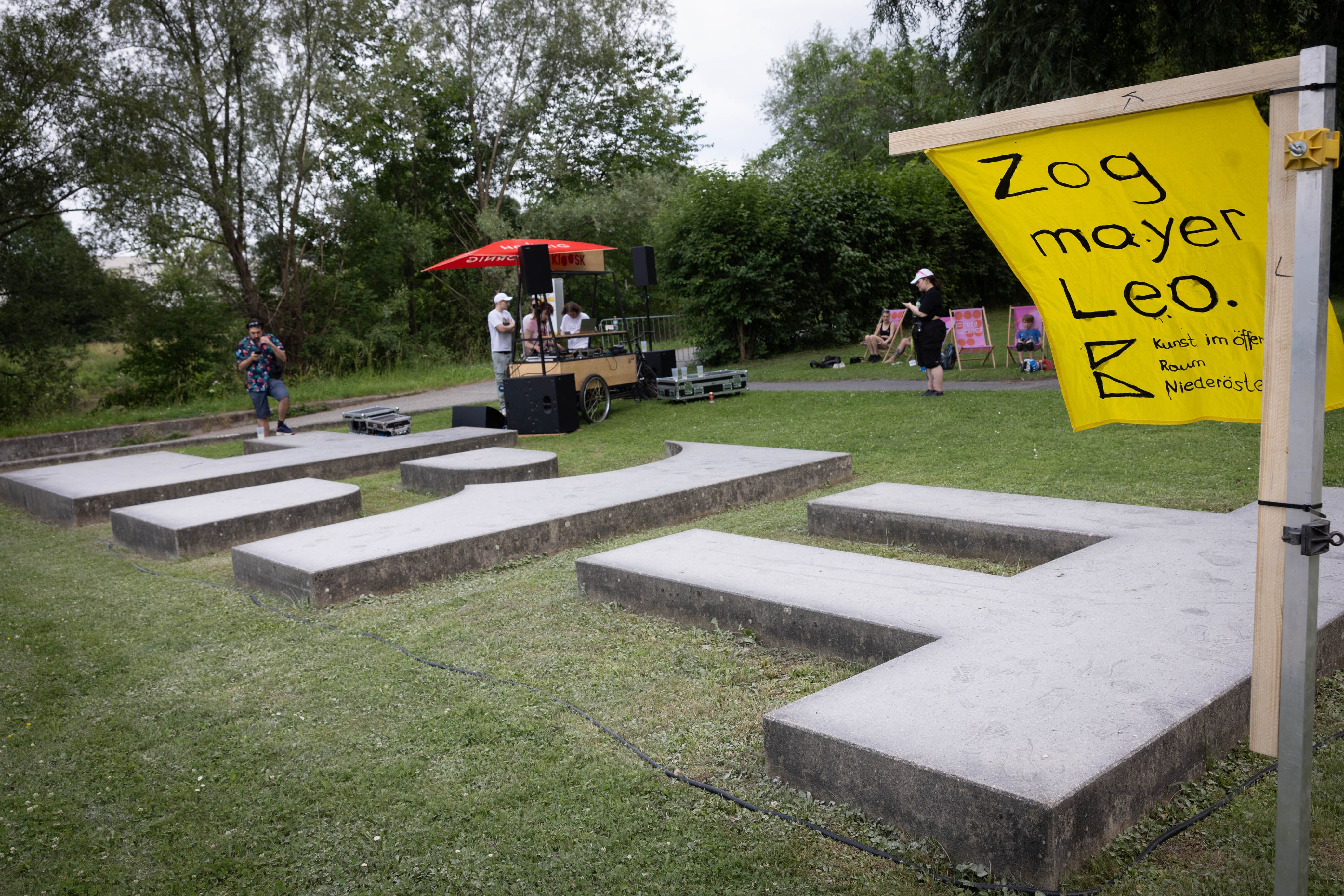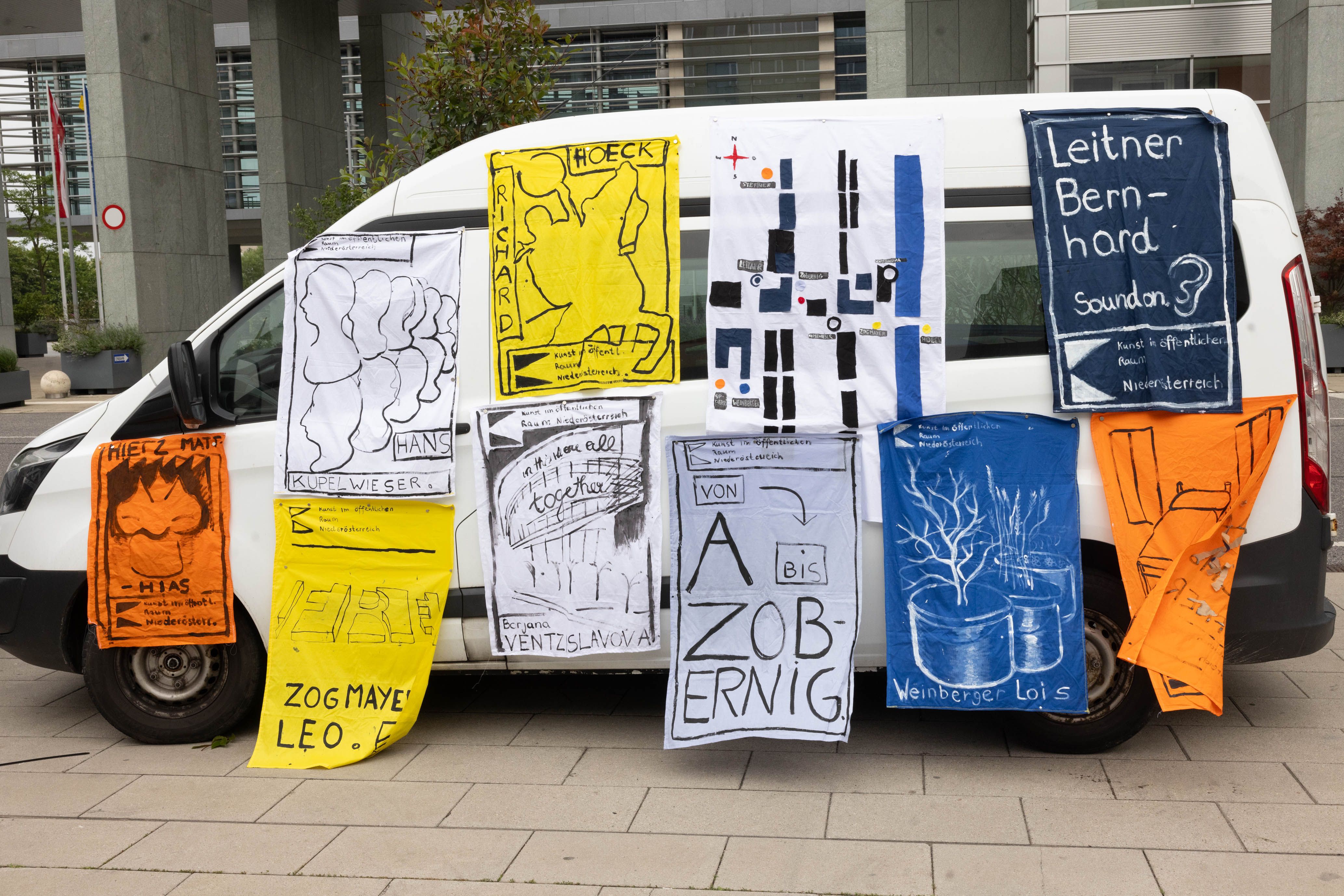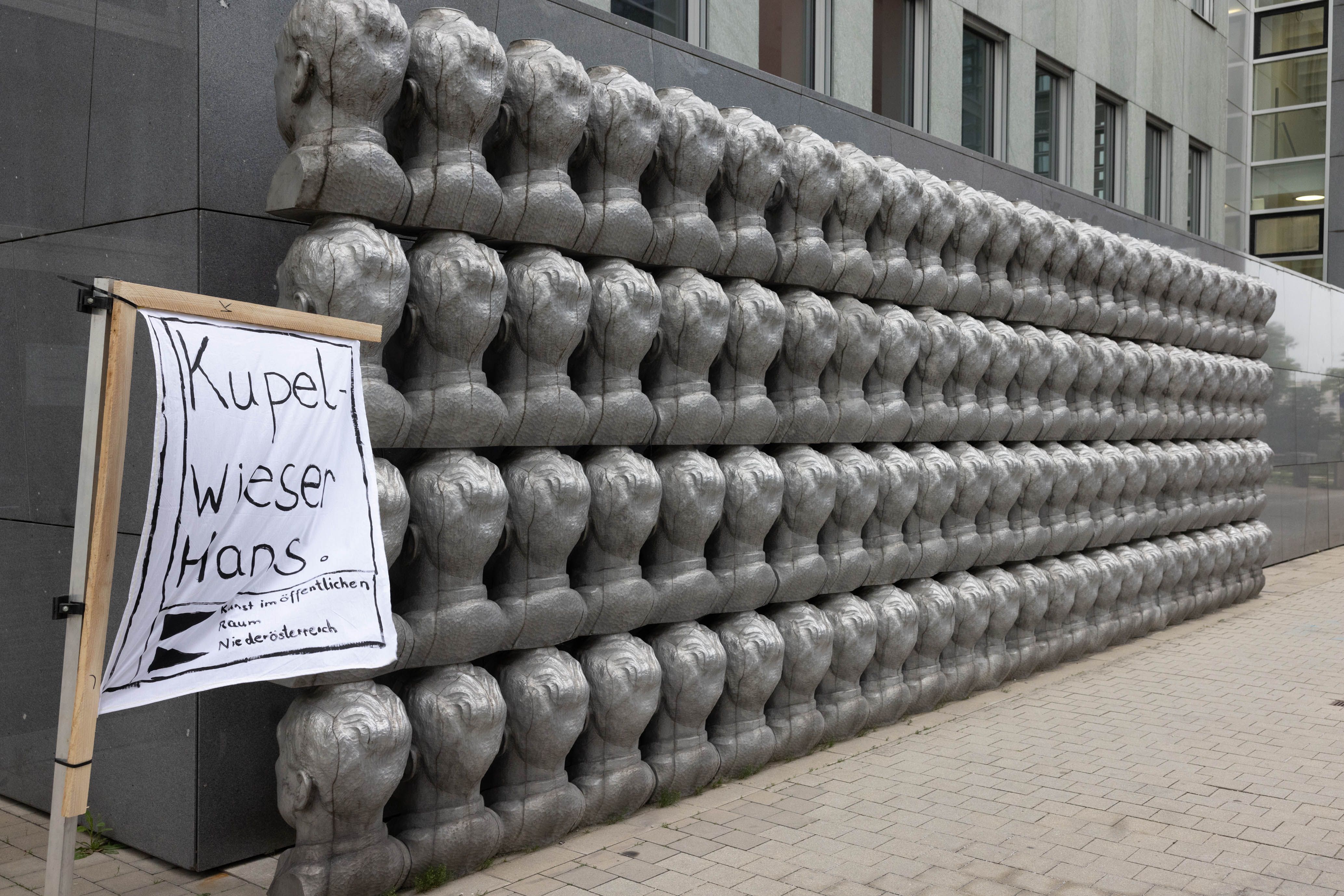 Am Freitag 21. und Samstag 22. Juni führte der Künstler Peter Fritzenwallner Interessierte im Rahmen des Festivals StadtLandFluss2024 zu mehreren Kunstprojekten im öffentlichen Raum, die im Zuge eines ausgeschriebene, zweistufige Wettbewerbs im Zeitraum der Erbauung des Regierungsviertels und danach auf dem Areal installiert wurden.