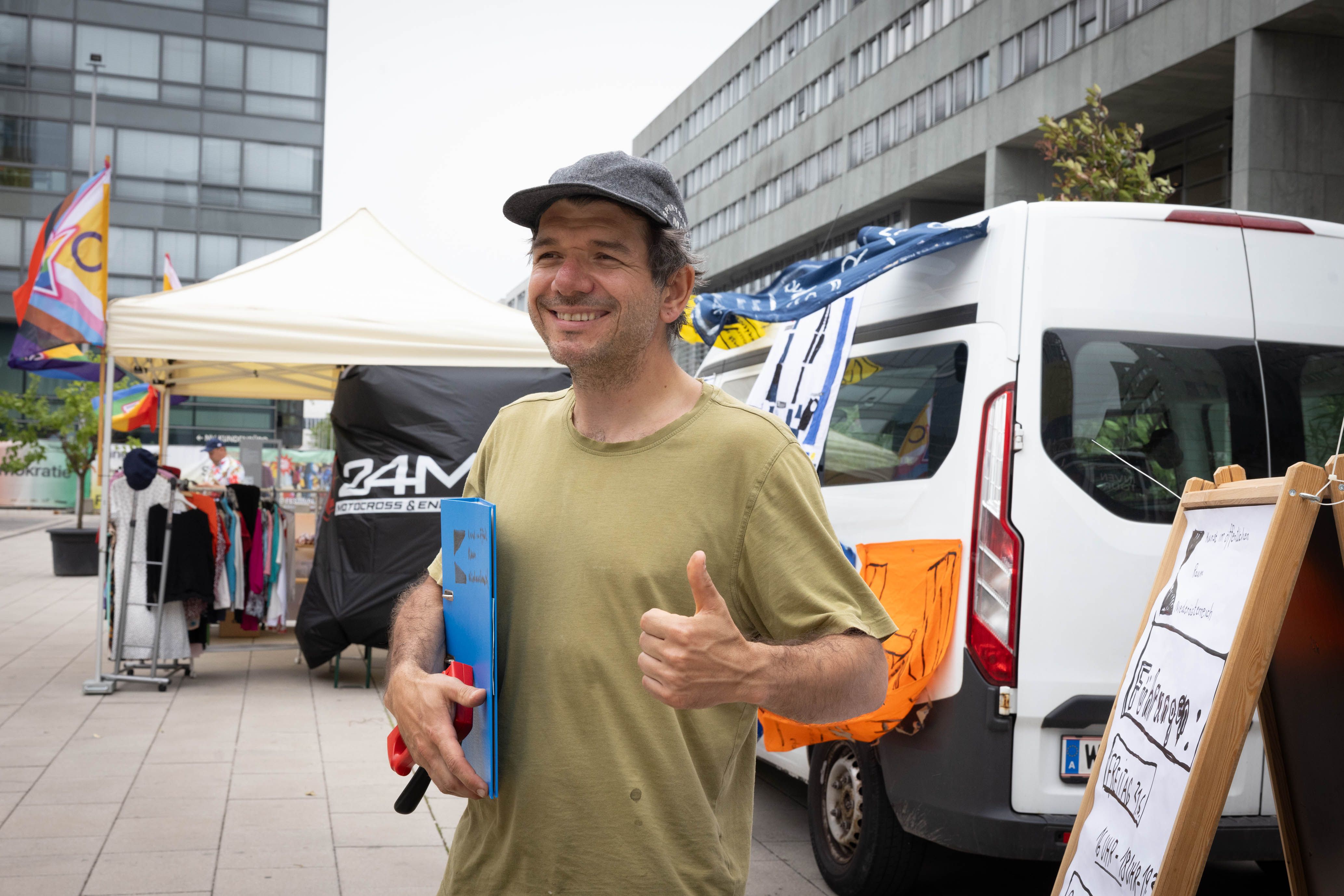 Zur besseren Orientierung schuf er ein buntes Leitsystem aus Fahnen.
