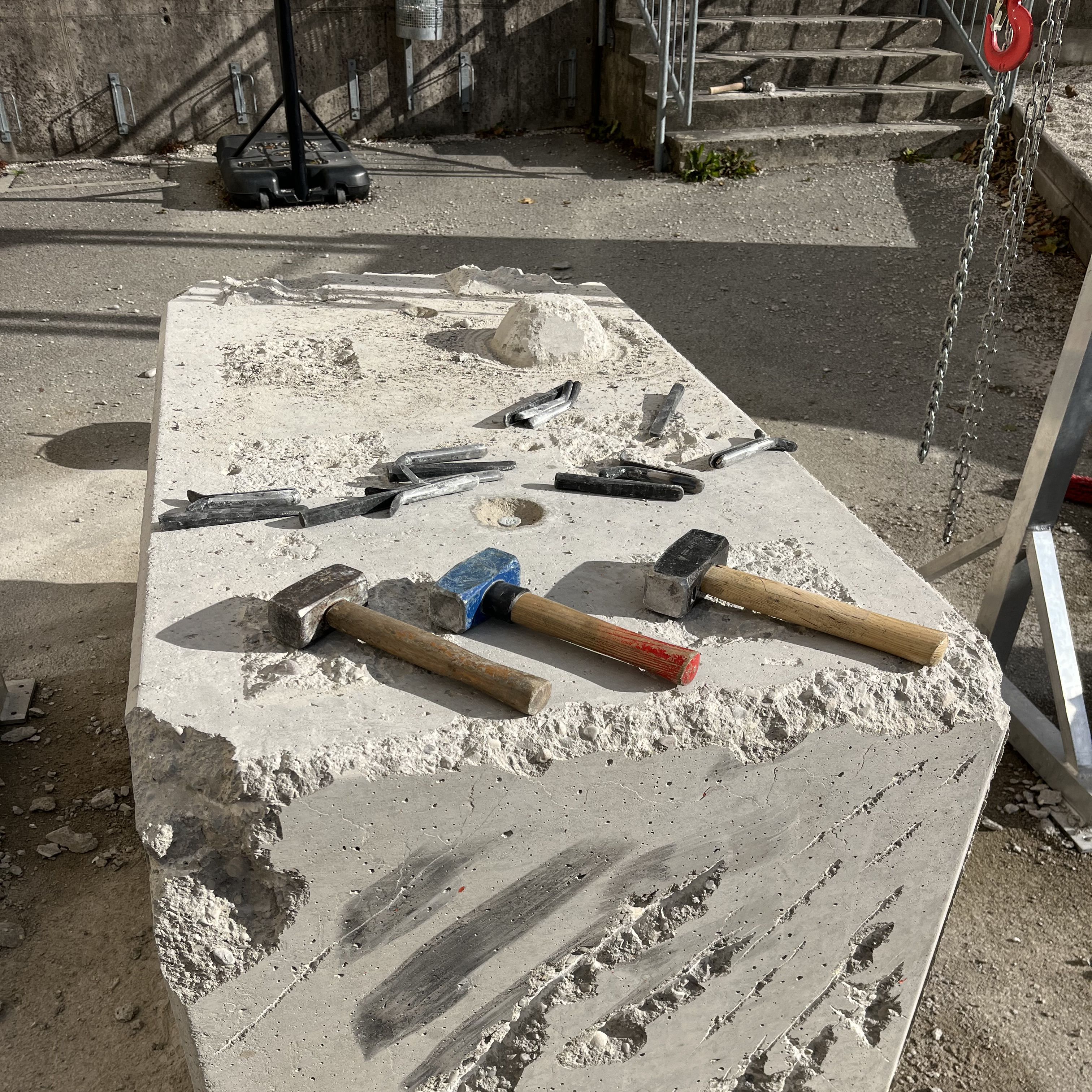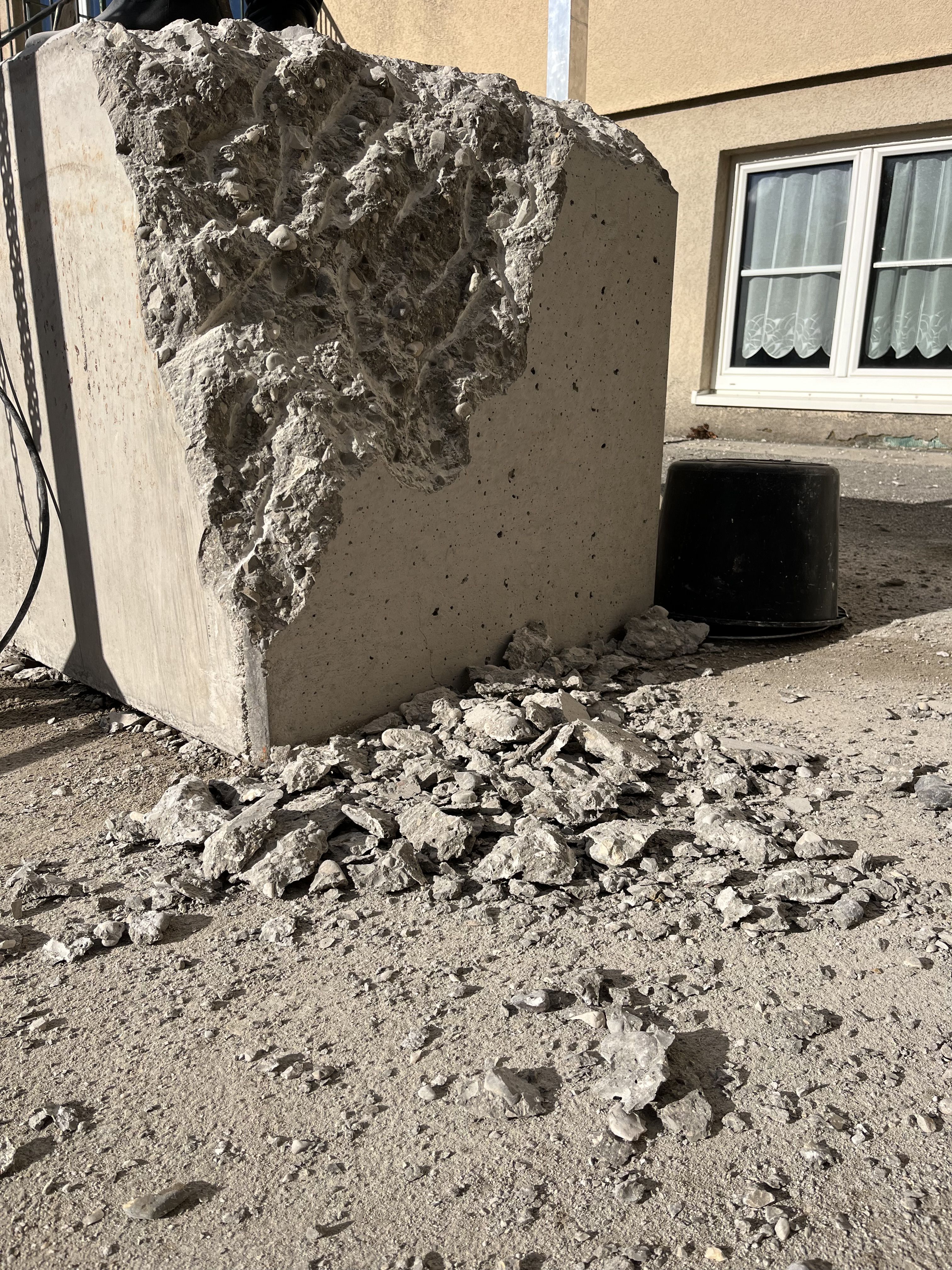 Im Jugendzentrum JA Don Bosco bearbeiteten Jugendliche während eines Workshops mit Christoph Weber einen Betonblock – inspiriert von der Arbeit De-Demolition von Arturo Hernández Alcázar an der Landesberufsschule Amstetten.