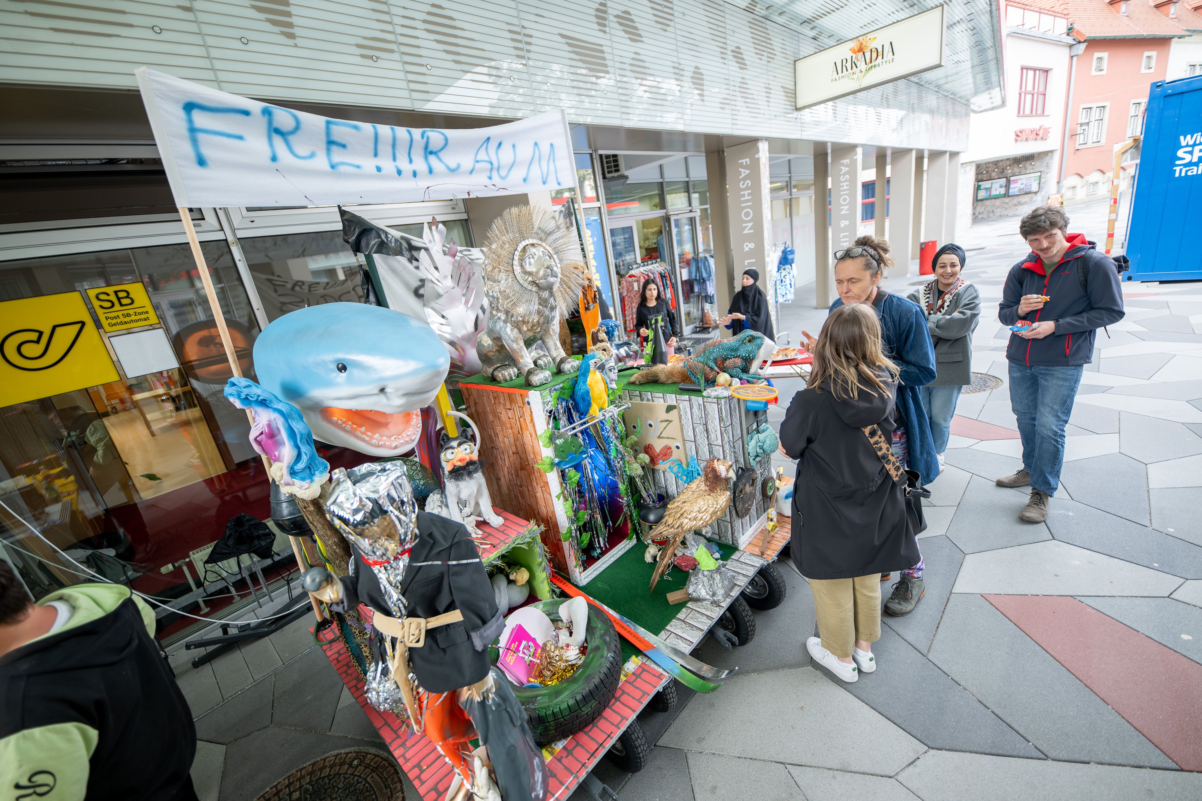 Edith Payer, Alle bauen eine Welt aus Müll/ Stadt-Raum-Welt-What?, Traiskirchen, 2024