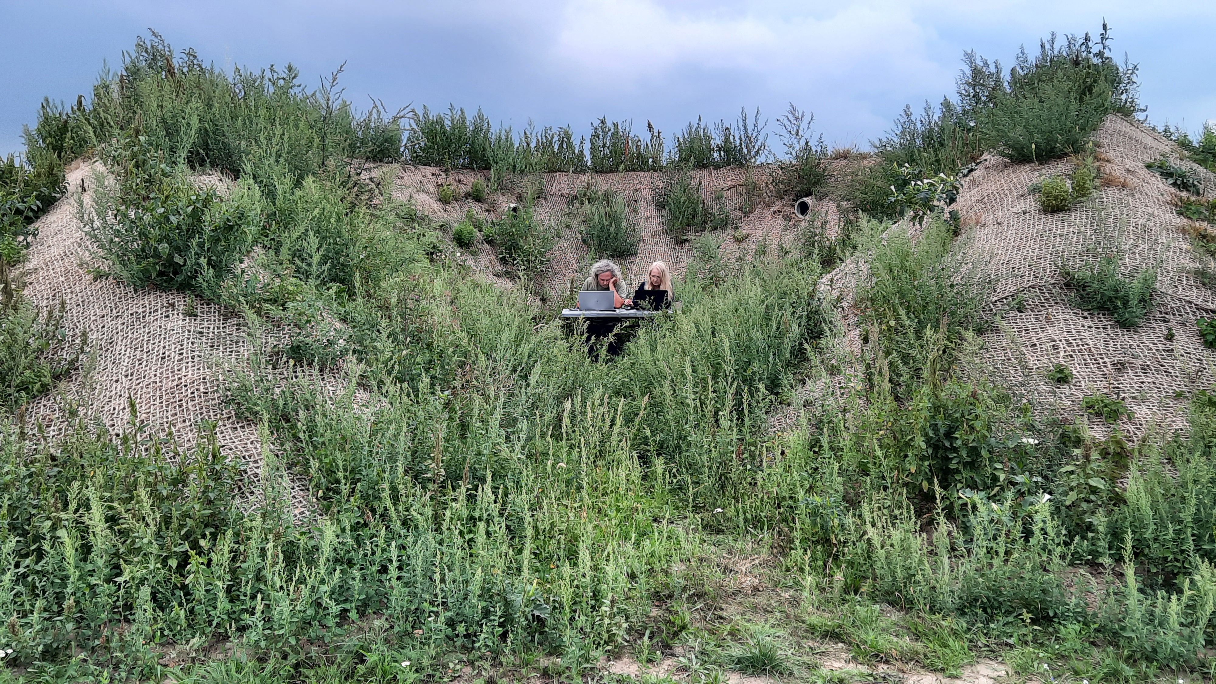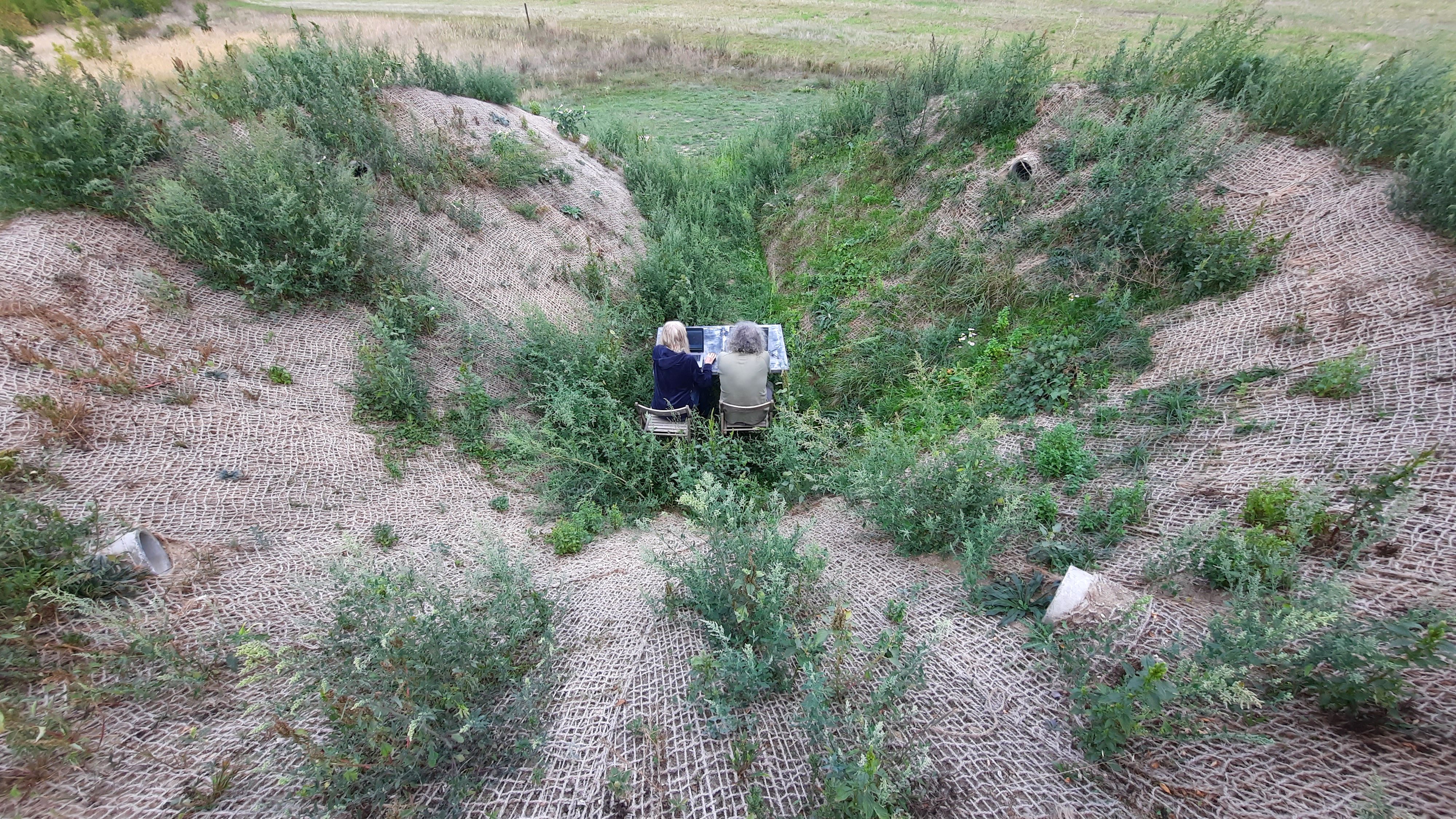 Seit Herbst 2022 ist das Erdreich des Atolls fertig aufgeschüttet. Und auch wenn das Grün erst langsam wieder wächst, sind die Klänge seither wieder im Inneren zu hören und laden zu einer Hör-Reise ein! Wer Interesse hat, mehr über das Projekt, über Klänge aus vergangenen Zeiten und das genaue Hinhören auf unsere gegenwärtige Umwelt zu erfahren, kann sich schon jetzt den Mai 2023 vormerken. Dann lädt das Vermittlungsprogramm von KOERNOE, die INVENTOUR, gemeinsam mit den beiden Künstler*innen ein, eine gemeinschaftliche Klanginstallation zu erzeugen und einen Einblick in das sogenannte field-recording – dem Aufnehmen von um uns herum befindlichen Klanglandschaften – zu erhalten.
