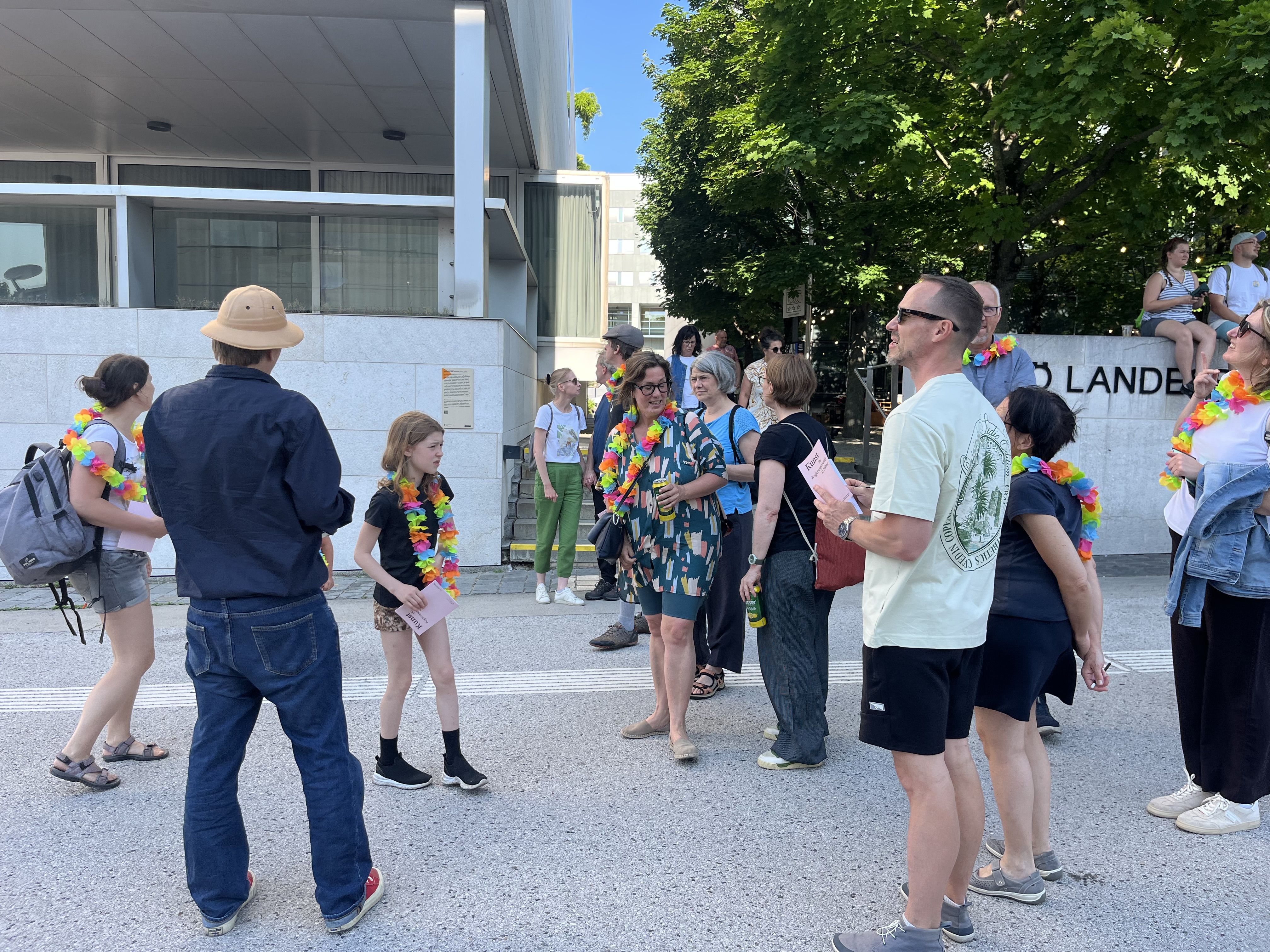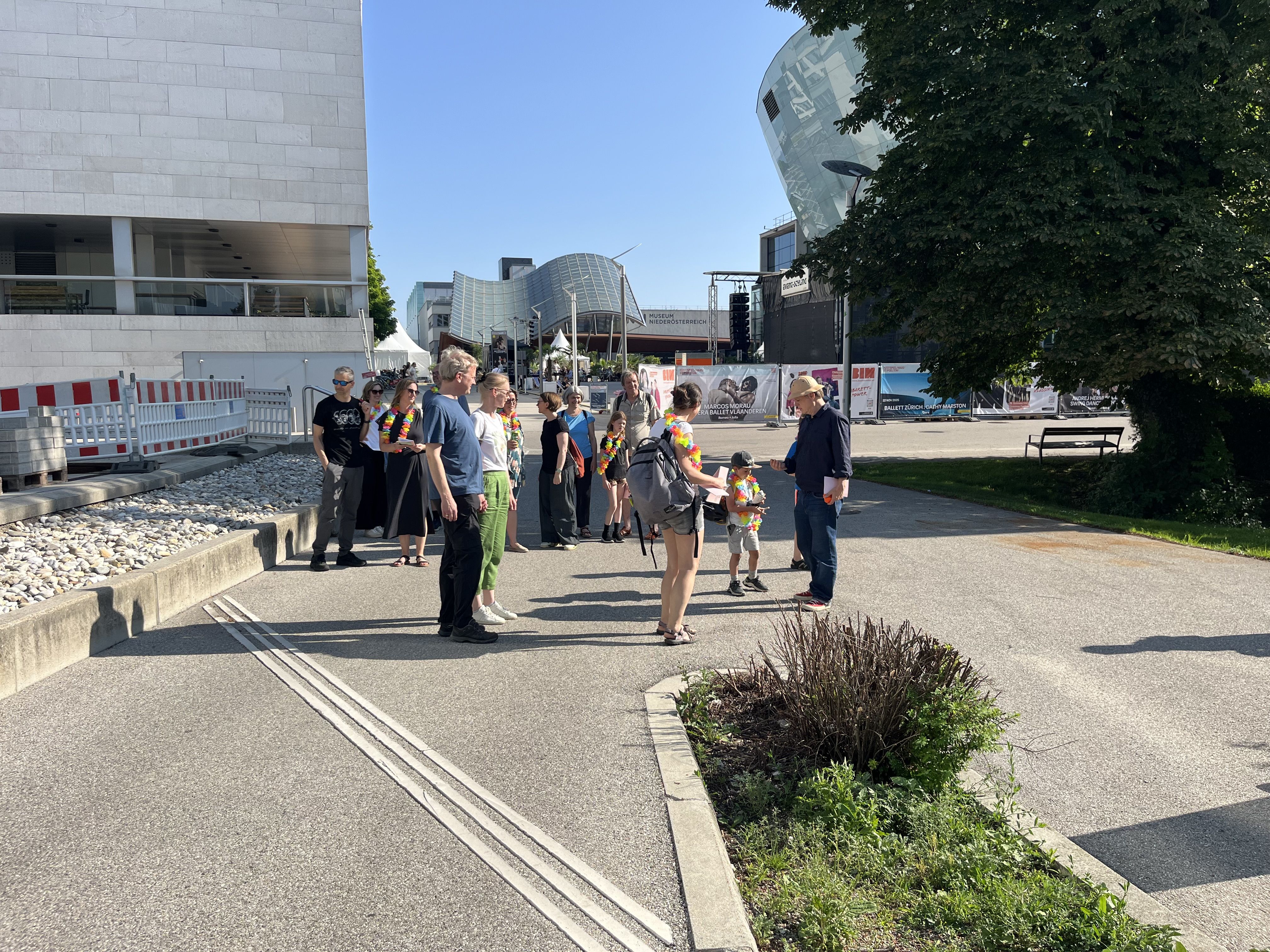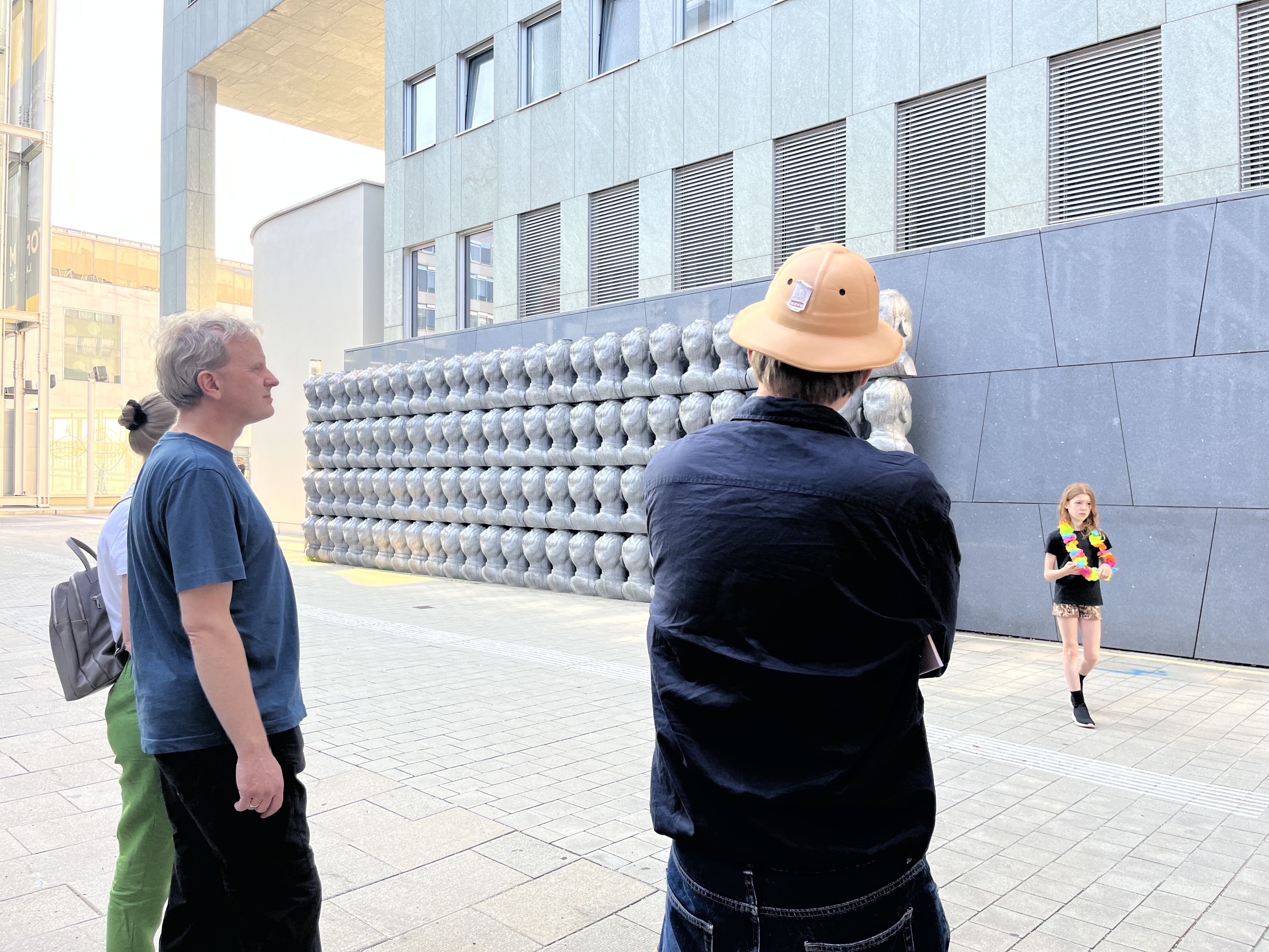 Zu einer Tour mit dem Künstler und Kurator Gerald Straub lud die INVENTOUR am 14. Juni ins St. Pöltener Regierungsviertel ein. Zeitgleich mit dem Bau der Gebäude wurden in den 1990er-Jahren zahlreiche Kunst-am-Bau-Projekte realisiert. Mittlerweile teilweise überwachsen, renoviert oder neu positioniert, lassen sich immer noch viele dieser Kunstwerke (wieder) entdecken und den damals vollständig neu errichteten Stadtteil und seine vielen Facetten reflektieren.