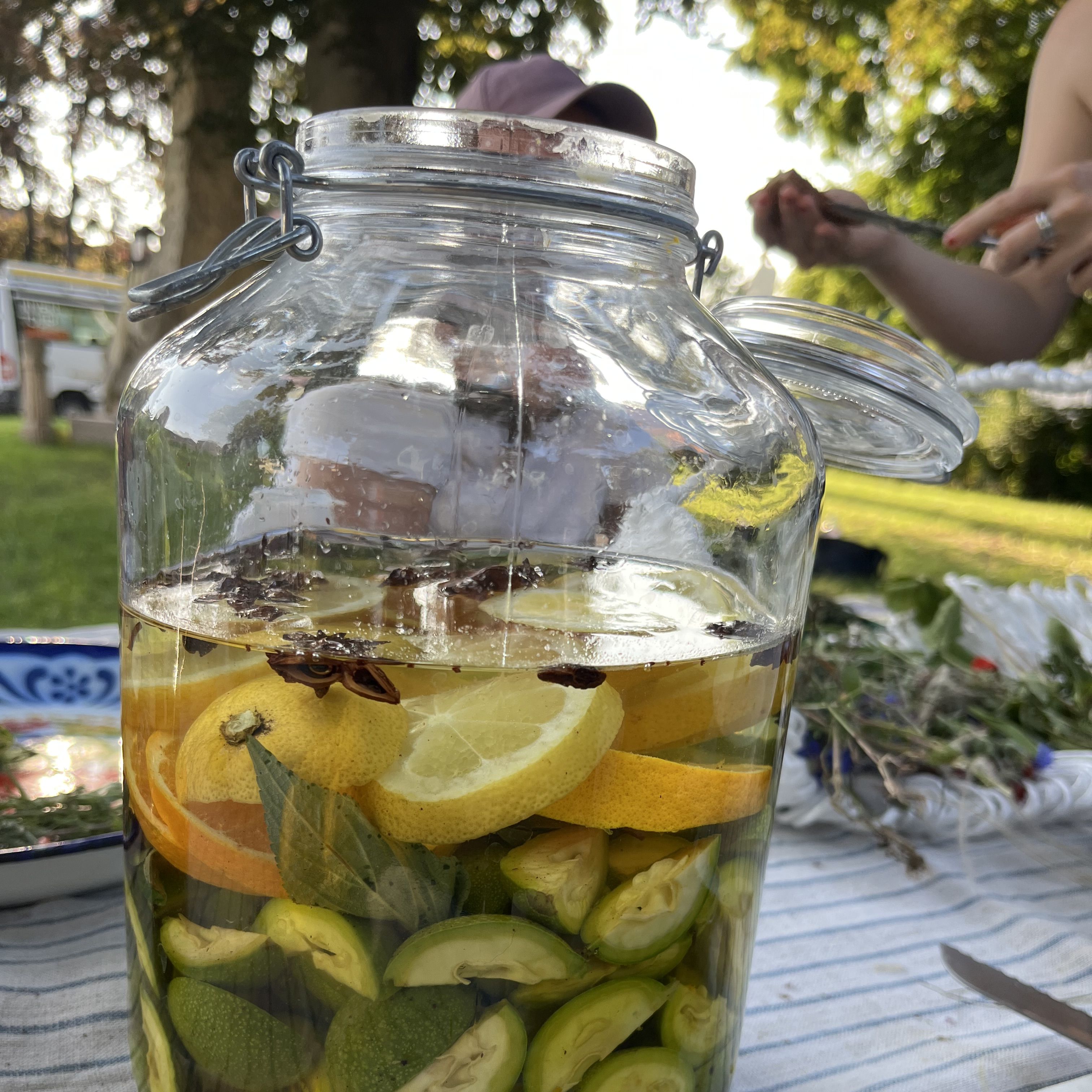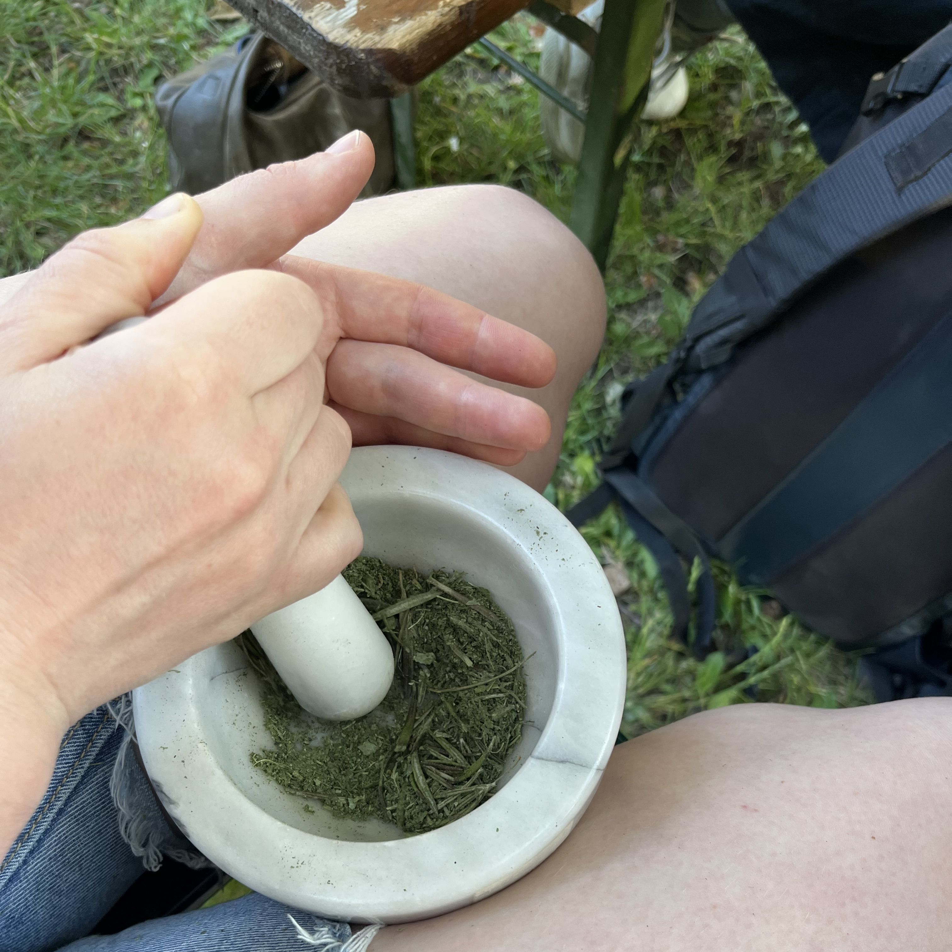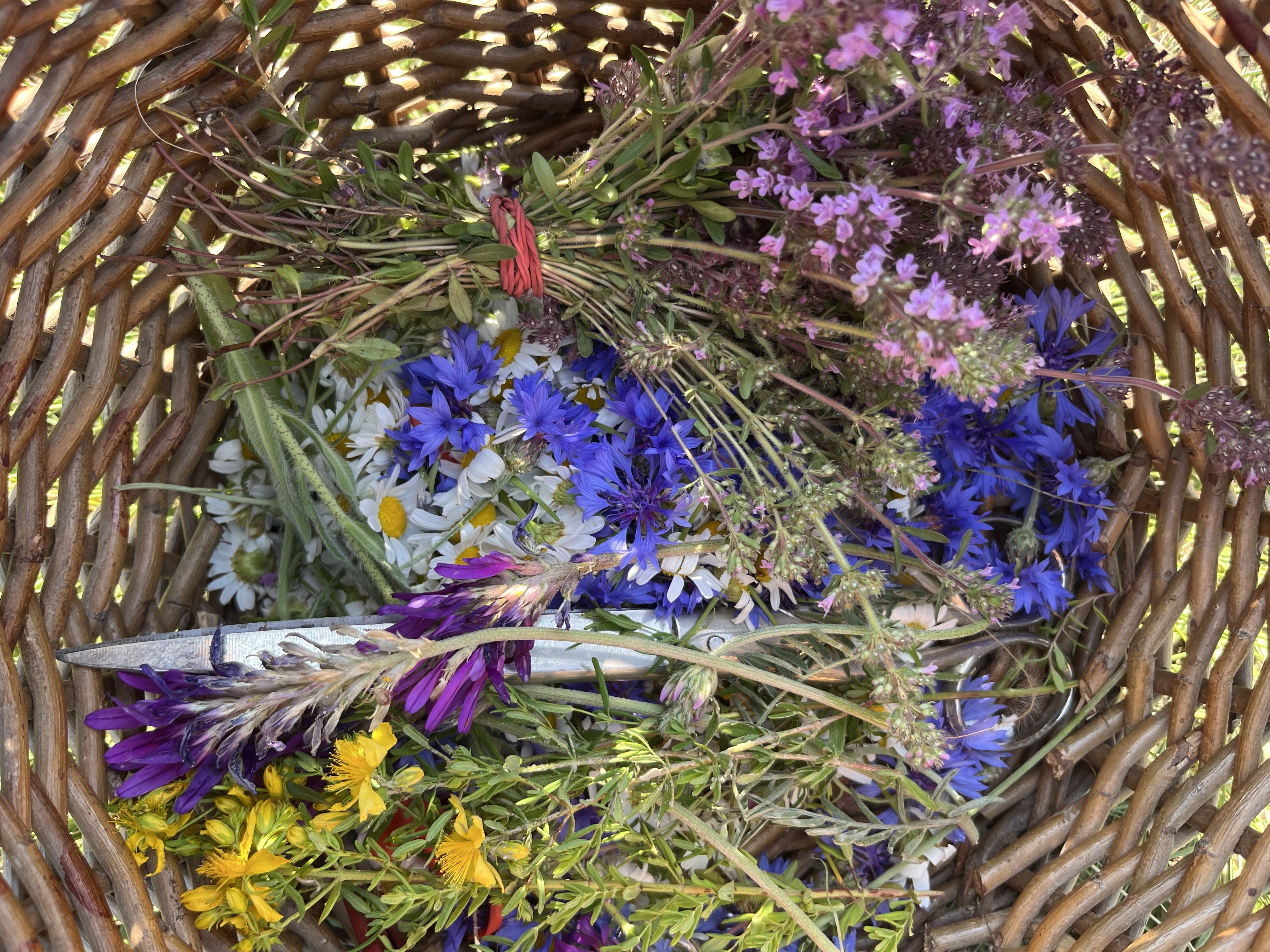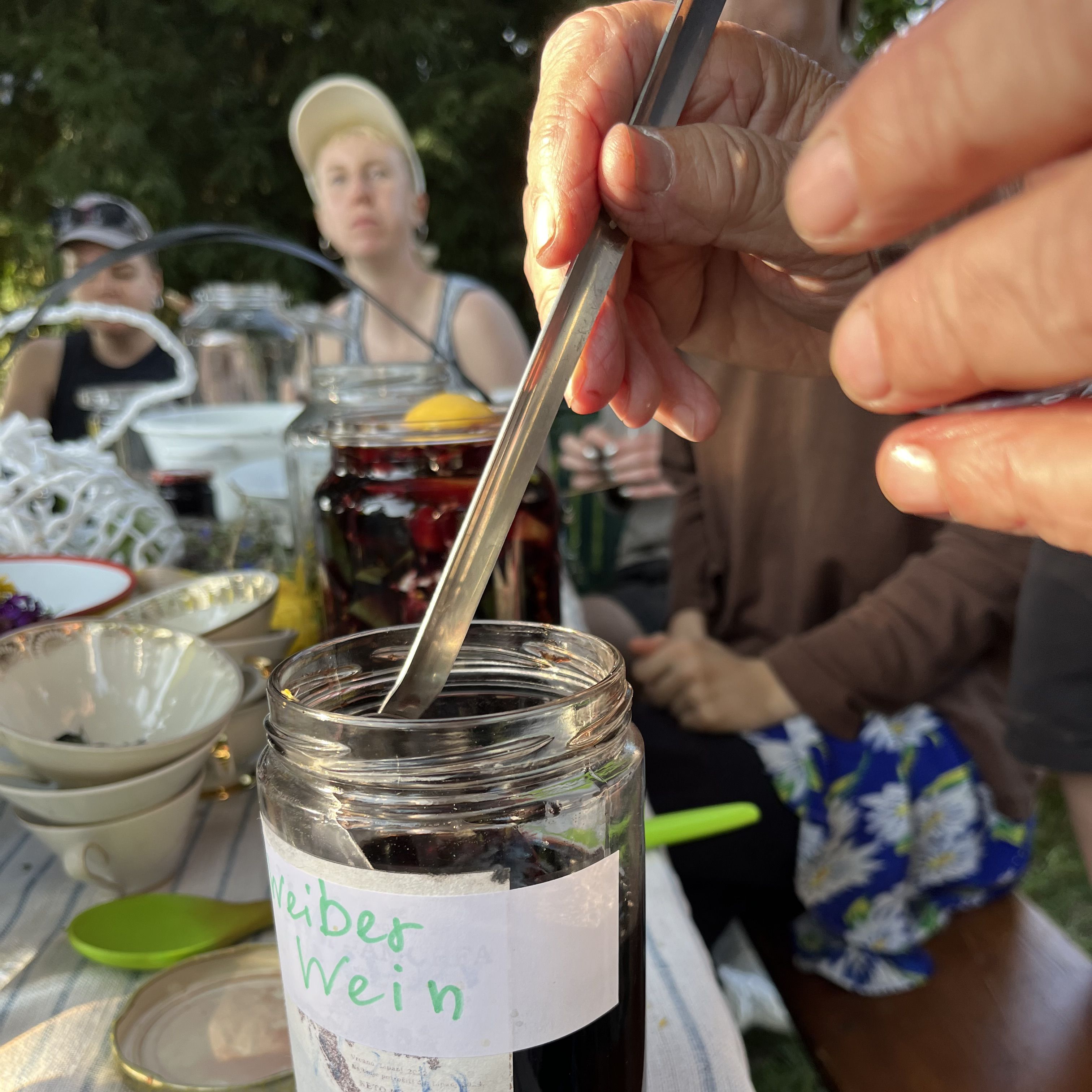 Was neben dem speziellen Schutzgebiet unter der Anleitung von Beatrix Wieringer gefunden und gepflückt wurde, wurde anschließend zurück beim Kunstraum als Schnaps oder Kräuterwein angesetzt, sowie für Kräutersalz und Tee zum Trocknen aufgehängt.